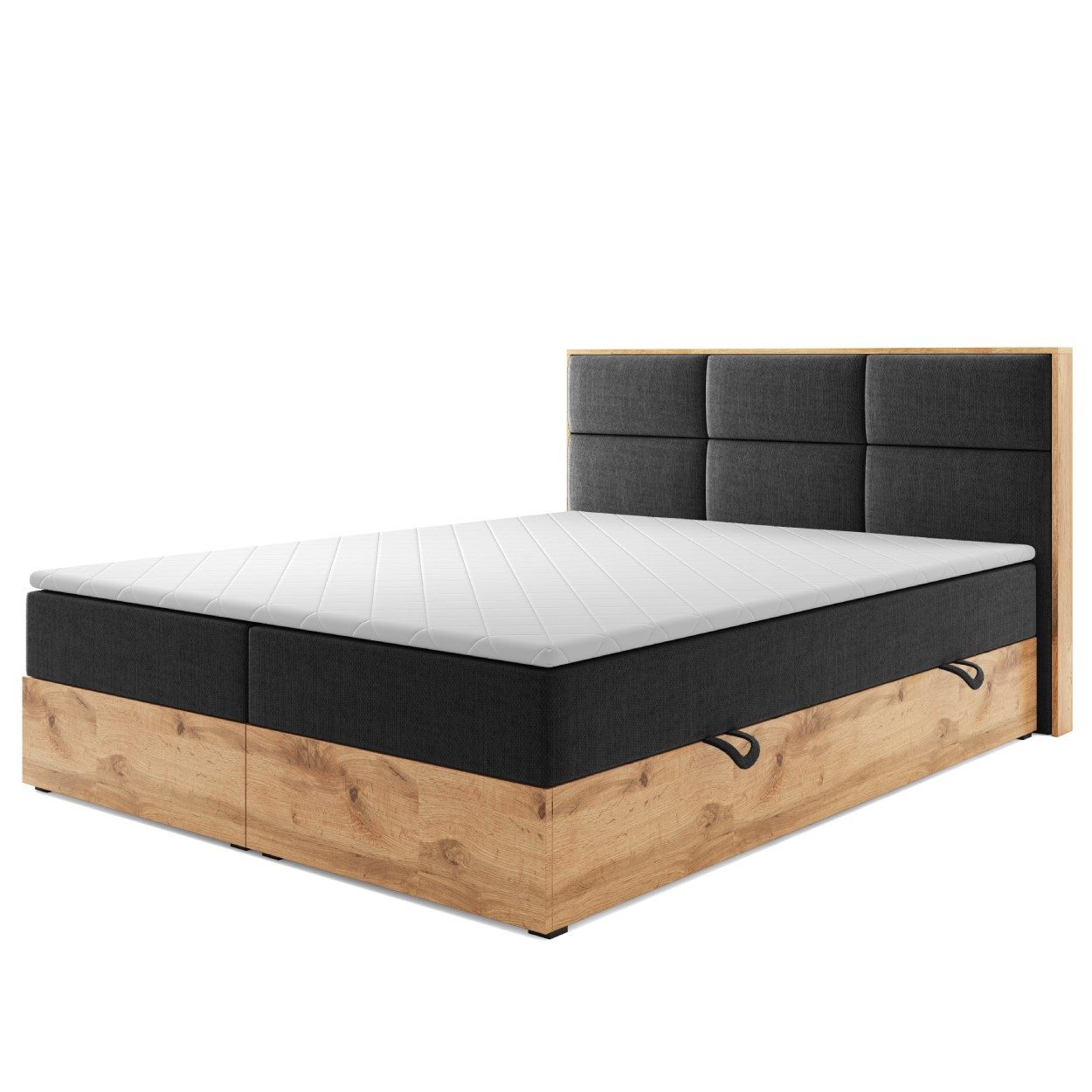 Modellbezeichnung | Boxspringbett NEAPEL Eiche Holz mit Bettkasten 180 x 200 cm Webstoff Grau Schwarz Bett Bettkasten |