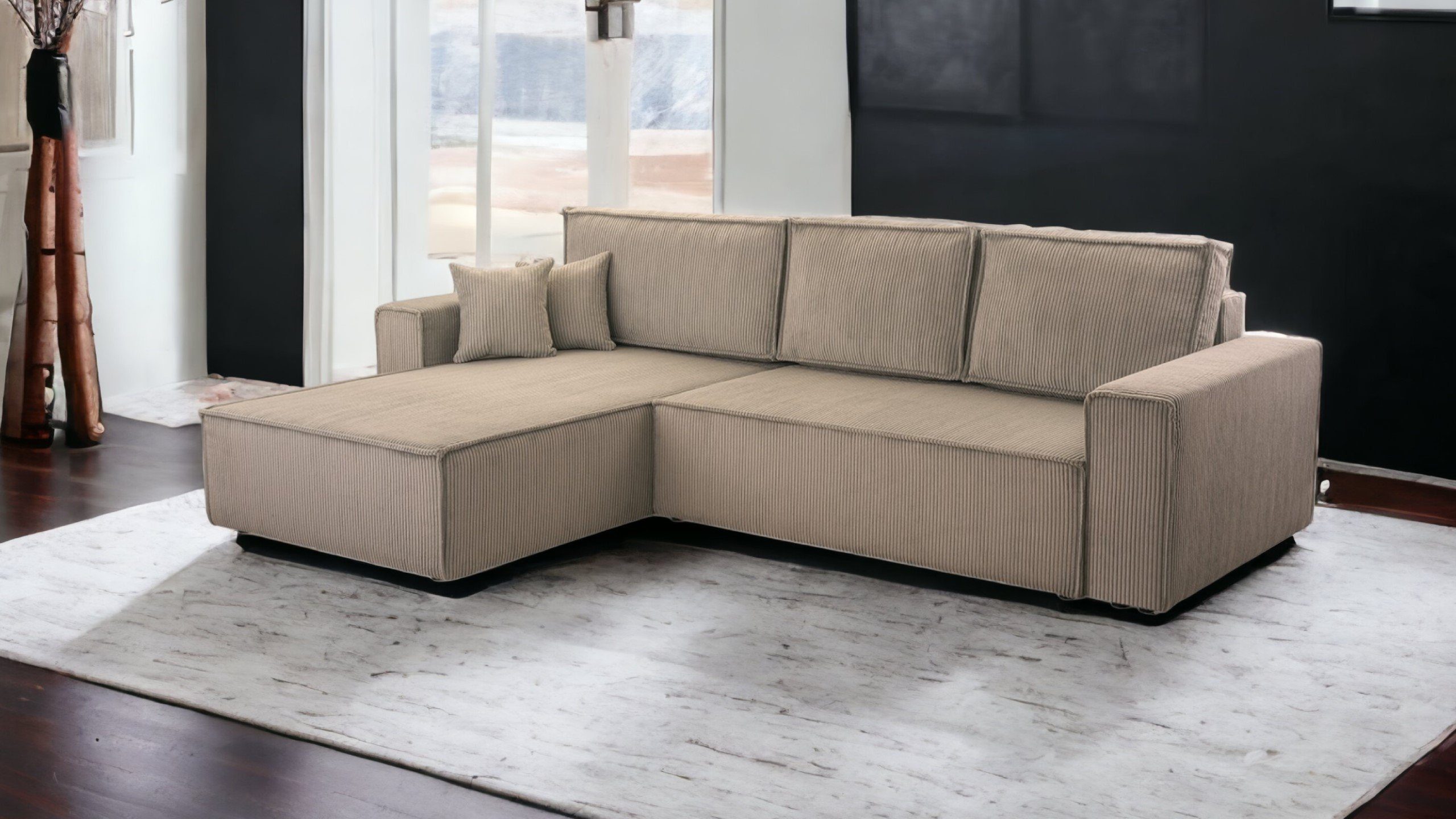 Wohnlandschaft Ecksofa Gera Cord XL mit Bett Kopfteilverstellung Bett Sofa Schlafsofa Ottomane rechts links universell