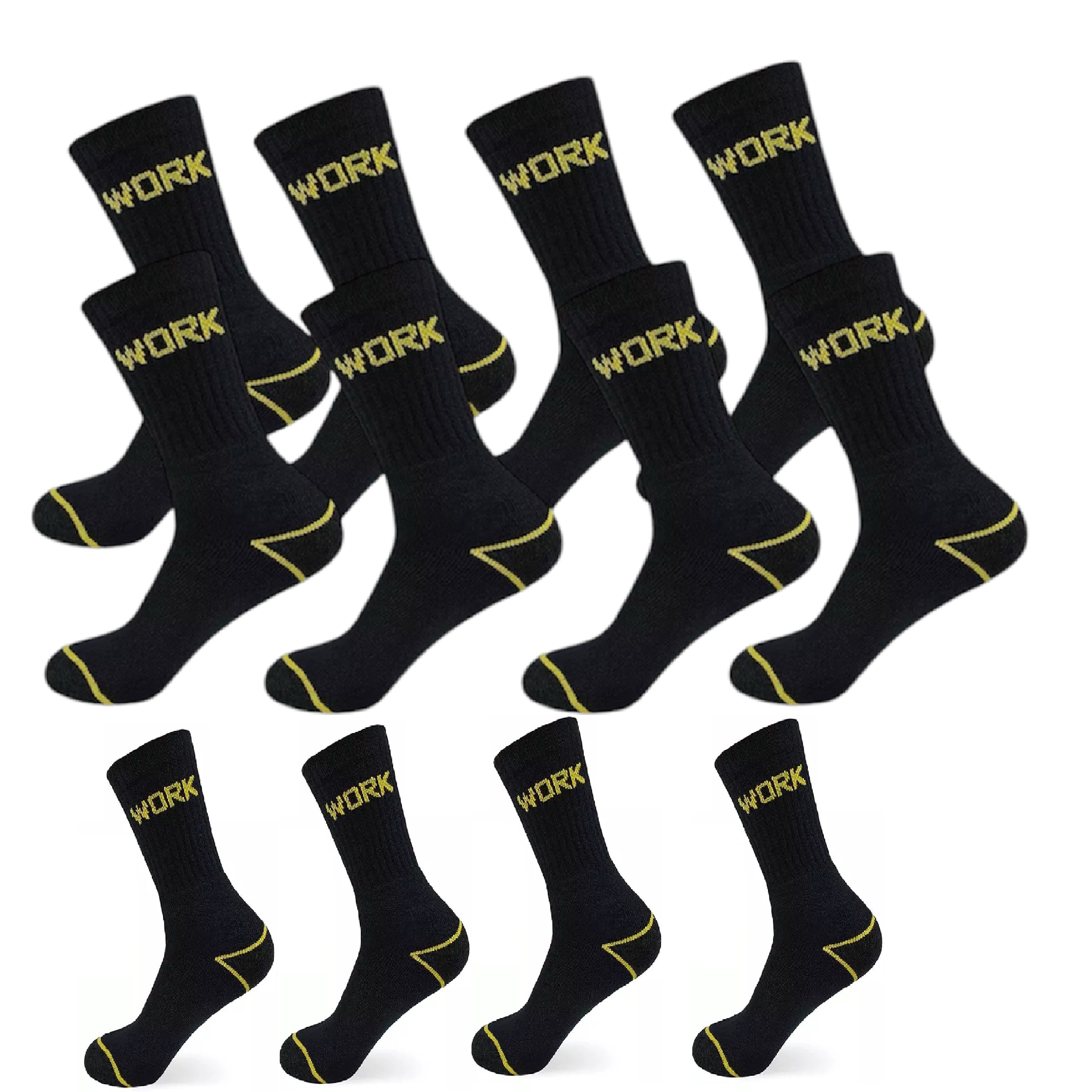 Unsere Arbeitssocken für Damen und Herren sind die perfekte Wahl für alle, die täglich Höchstleistungen erbringen. Egal ob auf der Baustelle, in der Industriehalle oder bei Outdoor-Abenteuern – diese Socken überzeugen durch maximalen Komfort, Langlebigkeit und Funktionalität. Das hochwertige Baumwoll-Polyester-Mischgewebe sorgt für eine optimale Atmungsaktivität, während die verstärkte Verarbeitung auch bei starker Belastung eine lange Haltbarkeit garantiert. Mit ihrer bequemen Passform bleiben die Socken auch nach langem Tragen angenehm am Fuß, ohne zu verrutschen oder einzuschneiden.