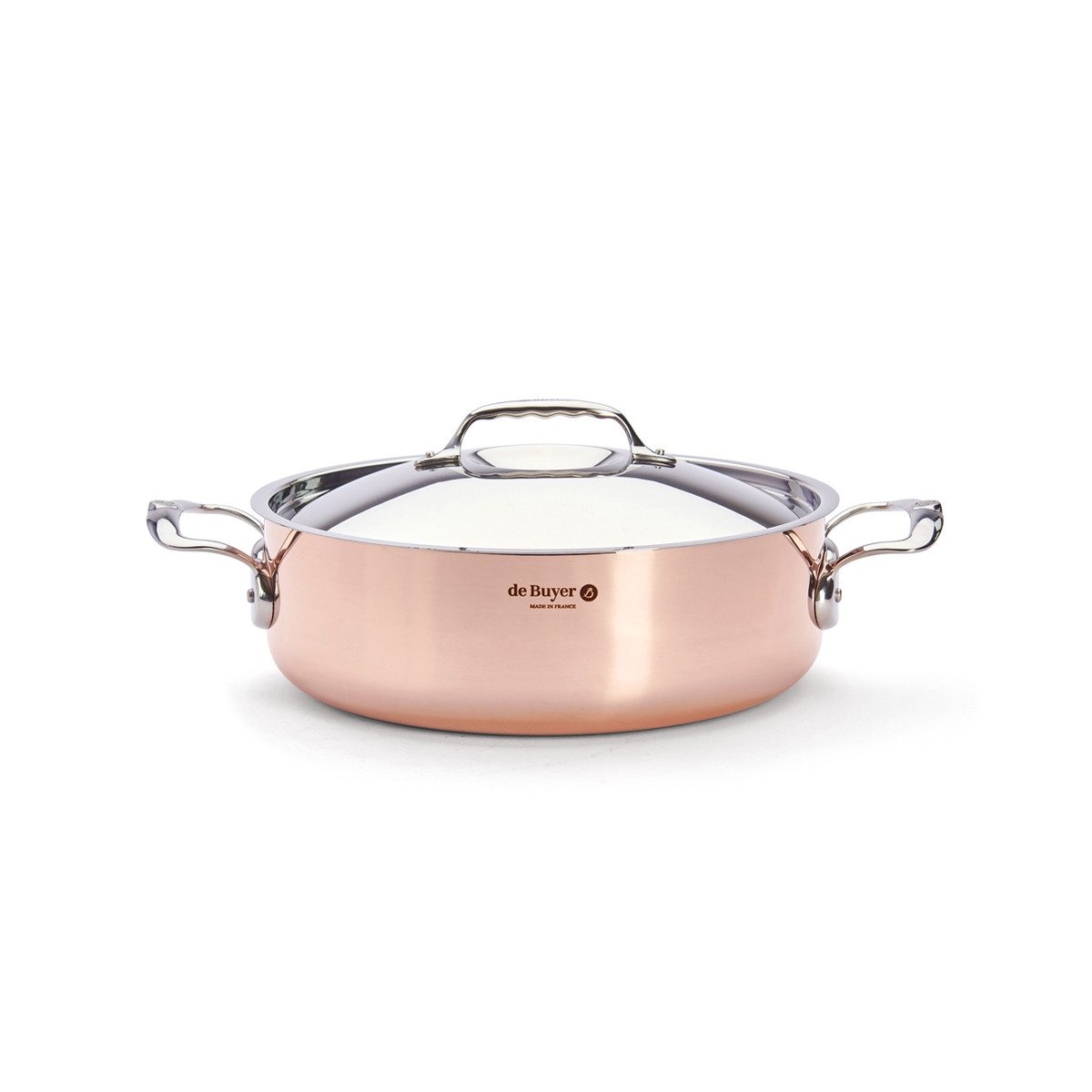 Der mittelgroße Braten- und Kochtopf, auch als Bräter bekannt, hat eine gerade Form und eine niedrigere Höhe. Er fasst 3,1 Liter, hat einen Durchmesser von 24 cm am oberen Rand und eine Auflagefläche von 20,5 cm bei einer Höhe von 6,8 cm. Die reduzierte Höhe verhindert das Verdunsten von Kondenswasser und leitet es schneller zurück auf das Gargut. Die Prima Matera Serie von de Buyer 1830 ist für Induktionsherde geeignet und zeichnet sich durch ihre 2 mm dicken Wände aus 90% reinem Kupfer aus. Dieses Material ist extrem wärmeleitfähig und verformt sich nicht bei hohen Temperaturen. Die Innenwand des Topfes ist mit rostfreiem Edelstahl ausgekleidet, um eine Reaktion mit Lebensmitteln zu verhindern. Diese Schicht dient der Hygiene und erleichtert die Reinigung, ohne die Wärmeleitfähigkeit zu beeinträchtigen. Beachten Sie bitte, dass Kupfertöpfe und Pfannen von Hand gereinigt werden sollten und nicht für die Spülmaschine geeignet sind. Ein weiteres Highlight ist der Boden aus magnetischem Stahl, der die Energie von Induktionsfeldern optimal aufnimmt und die Hitze direkt auf den Korpus überträgt. Dies führt zu einer extrem schnellen Erwärmung. Zwei großzügige Edelstahlgussgriffe sind fest mit dem Korpus verbunden. Sie erwärmen sich nur leicht und bieten durch ihren Sicherheitsabstand zum Korpus Schutz vor Verbrennungen. Ein Deckel aus Edelstahl mit zentraler Wölbung ist ebenfalls enthalten. Die Prima Matera Serie von de Buyer ist die schnellste, effizienteste und beeindruckendste Kochgeschirrserie für Induktionsherde. Einfach super!