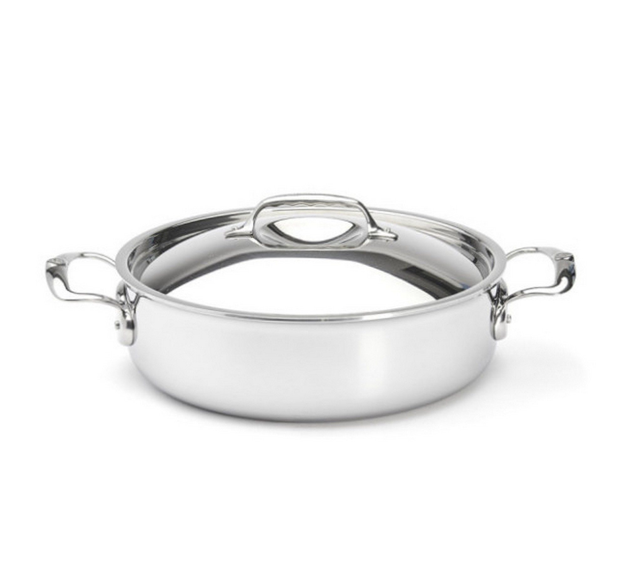 Der große Bräter in gerader Form mit niedriger Höhe ist ein praktisches Kochgeschirr für die Küche. Mit einem Fassungsvermögen von 4,6 Litern, einem Durchmesser von 28 cm am oberen Rand und einer Auflagefläche von 24 cm bietet er ausreichend Platz für leckere Gerichte. Die geringere Höhe des Bräters verhindert das Verdunsten des Kondenswassers und sorgt dafür, dass es schnell auf das Gargut zurückfließt. Das Besondere an der Affinity Serie ist die hochwertige Materialzusammensetzung. Das Kochgeschirr besteht aus 2 verschiedenen Materialien mit 5 Lagen. Zwei Edelstahlschichten umschließen einen Kern aus Aluminium. Dieser Kern sorgt für eine schnelle Erhitzung auf allen Herdarten und eine gleichmäßige Wärmeverteilung. Dadurch wird das Gargut von allen Seiten optimal erhitzt und kann perfekt gegart werden. Besonders auf Induktionsherden kommt die hohe Qualität des Kochgeschirrs zum Tragen. Der Bräter verfügt außerdem über einen praktischen Schüttrand, der ein tropfenfreies Ausgießen ermöglicht. Die beiden Henkelgriffe aus Edelstahlguss sind großzügig bemessen und vernietet. Sie erwärmen sich nur leicht, da ein Sicherheitsabstand zum Korpus gewährleistet ist. Der Deckel aus Edelstahl mit mittig angeordneter Wölbung ist ebenfalls im Lieferumfang enthalten. Für ausführliche Informationen und die komplette Kollektion besuche die de Buyer Affinity Seite. Dort findest du auch besondere Nutzungshinweise zu diesem hochwertigen Kochgeschirr