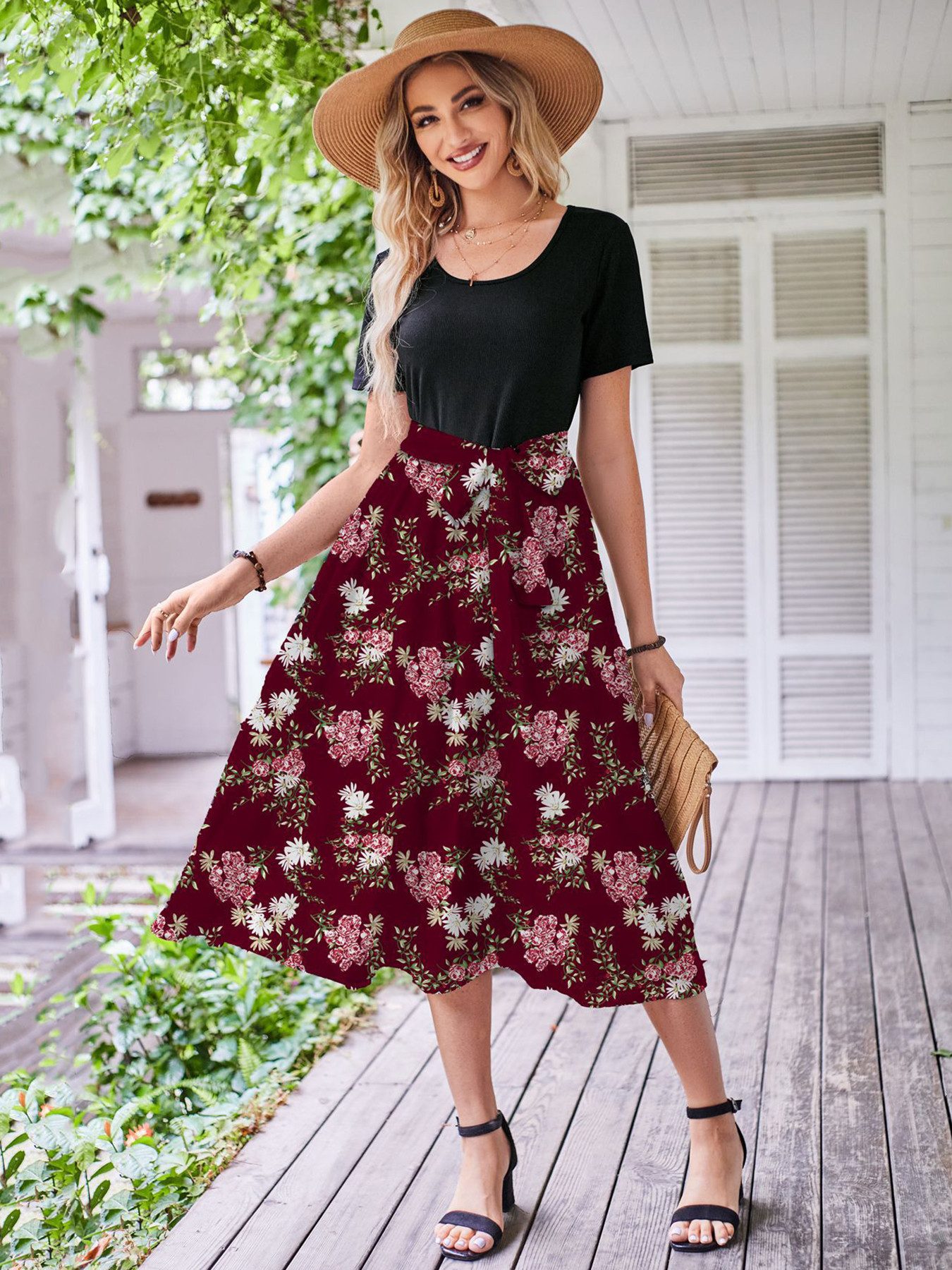Eigenschaften: Eleganter Rock mit elastischer Taille für Damen im Sommer, trendiger, fließender Rock mit Rüschen und Blumendruck vorne, langer Rock. Sie können es Ihren Verwandten/Freunden schenken. Stil: Boho, lässig. Farbe: Blumenfarbe. Hoher elastischer Bund, fließender Swing-Stil. Die Taille des Rocks ist elastisch. Geeignet für Freizeit, Arbeit, Urlaub oder Hauskleidung. Größe: Büste: 35.45in/90cm. Длина: 46.46in/118cm. Farbe: Wie auf den Bildern gezeigt. Hinweis: Es kann 1-2cm (0.39-0.79inch) ungenaue Fehler aufgrund der manuellen Messung haben. Es kann eine leichte Farbabweichung aufgrund der Aufnahmeszene und verschiedener Displays geben. Paket enthalten: 1 * Rock