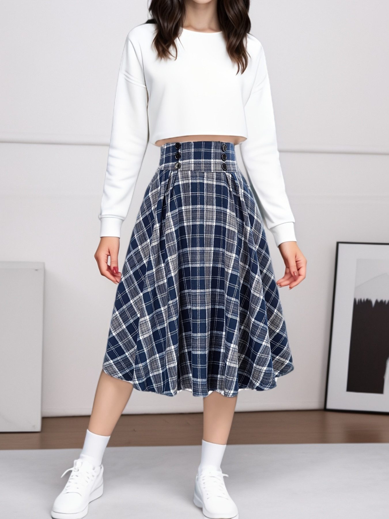 Dieser A-Linien-Midirock kann als Arbeitsrock getragen werden, Sie können ihn auch zu einem Picknick, auf Reisen oder sogar als Skaterrock tragen.