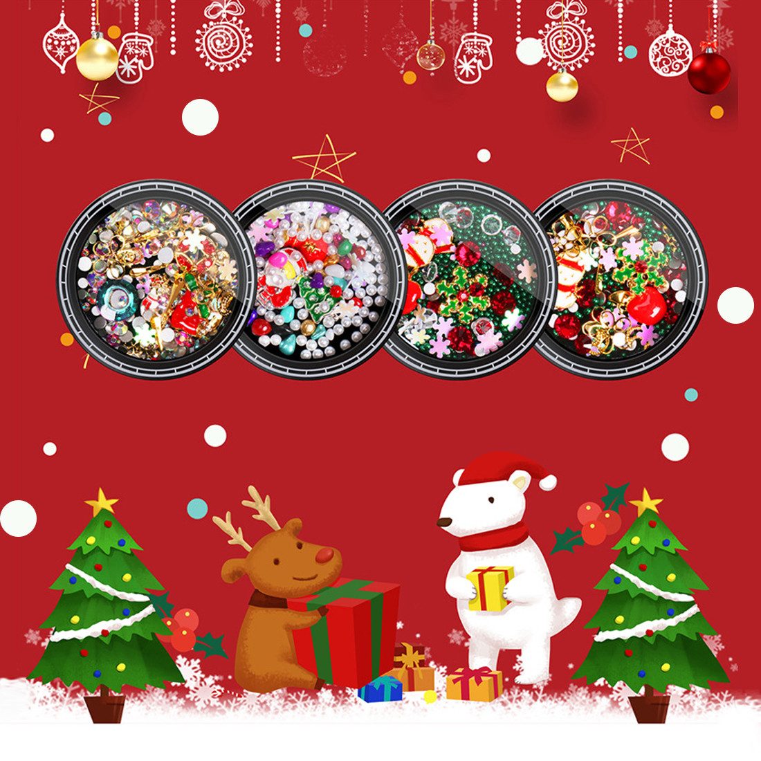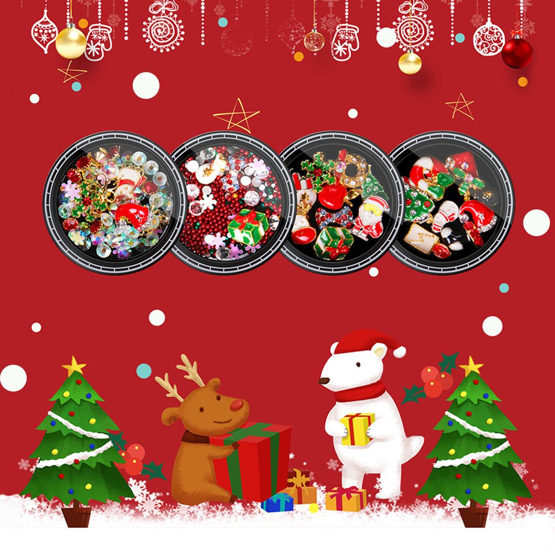 Das 3D-Nageldekorationsset enthält 4 Schachteln mit weihnachtlichen Strasssteinen.