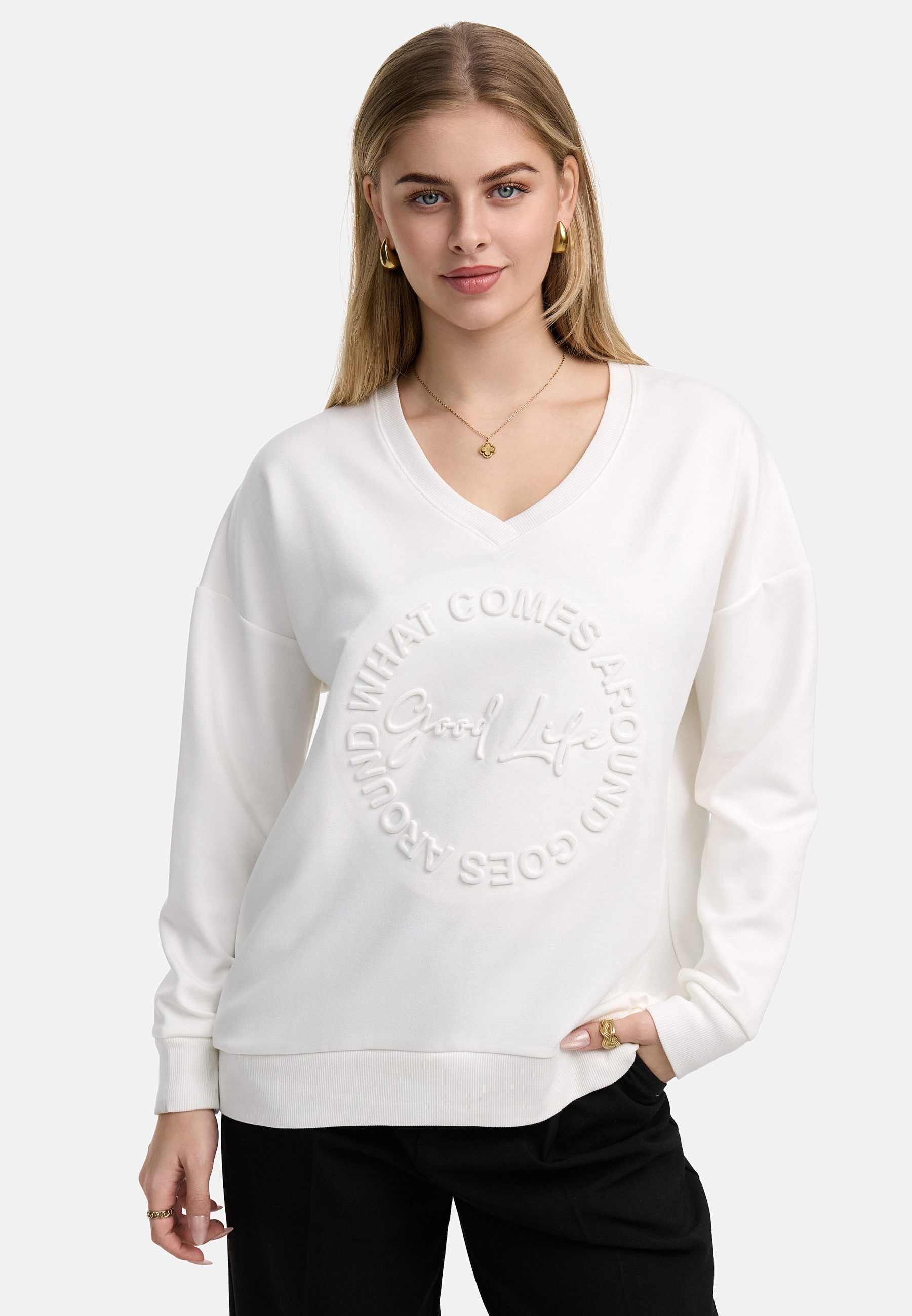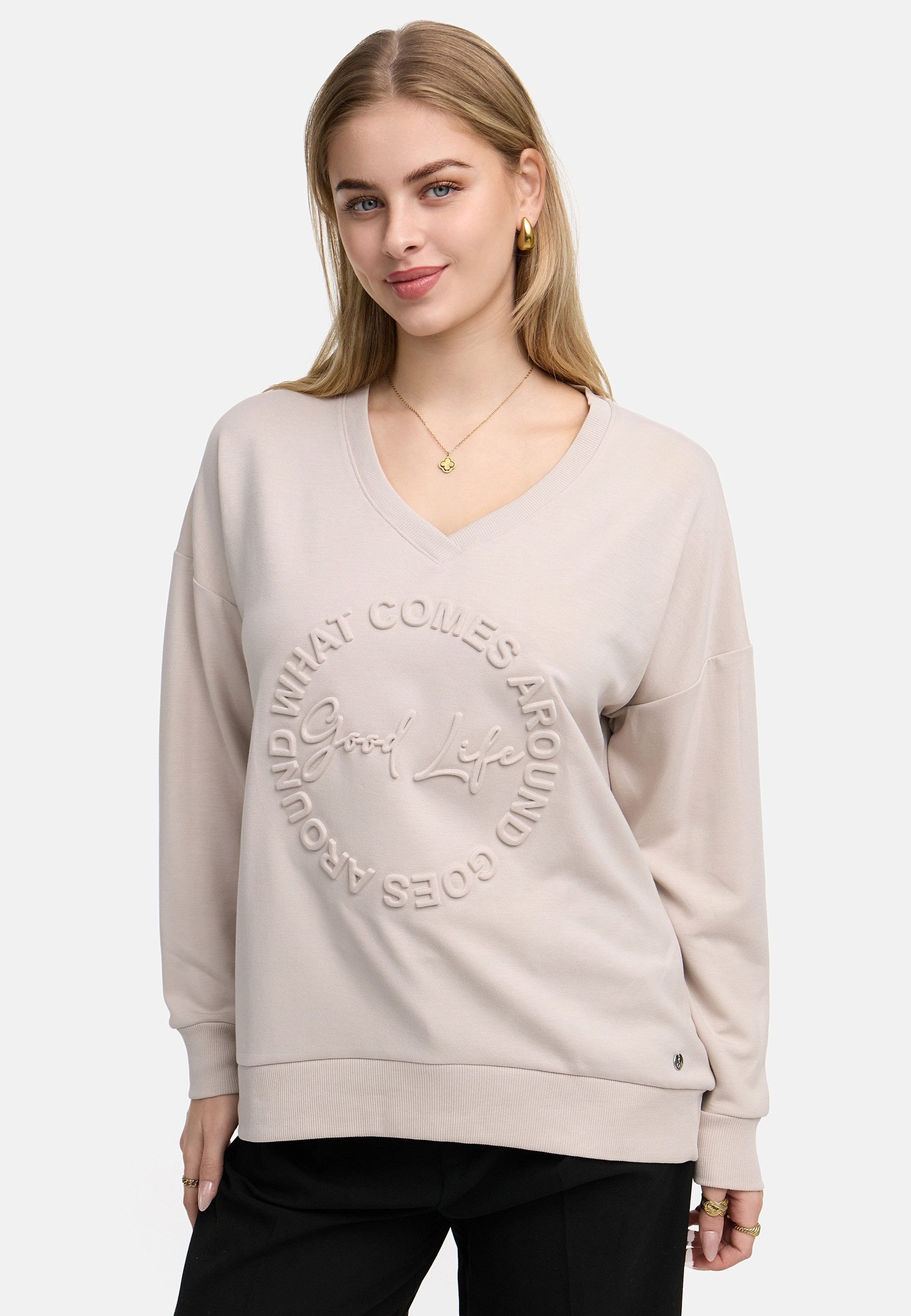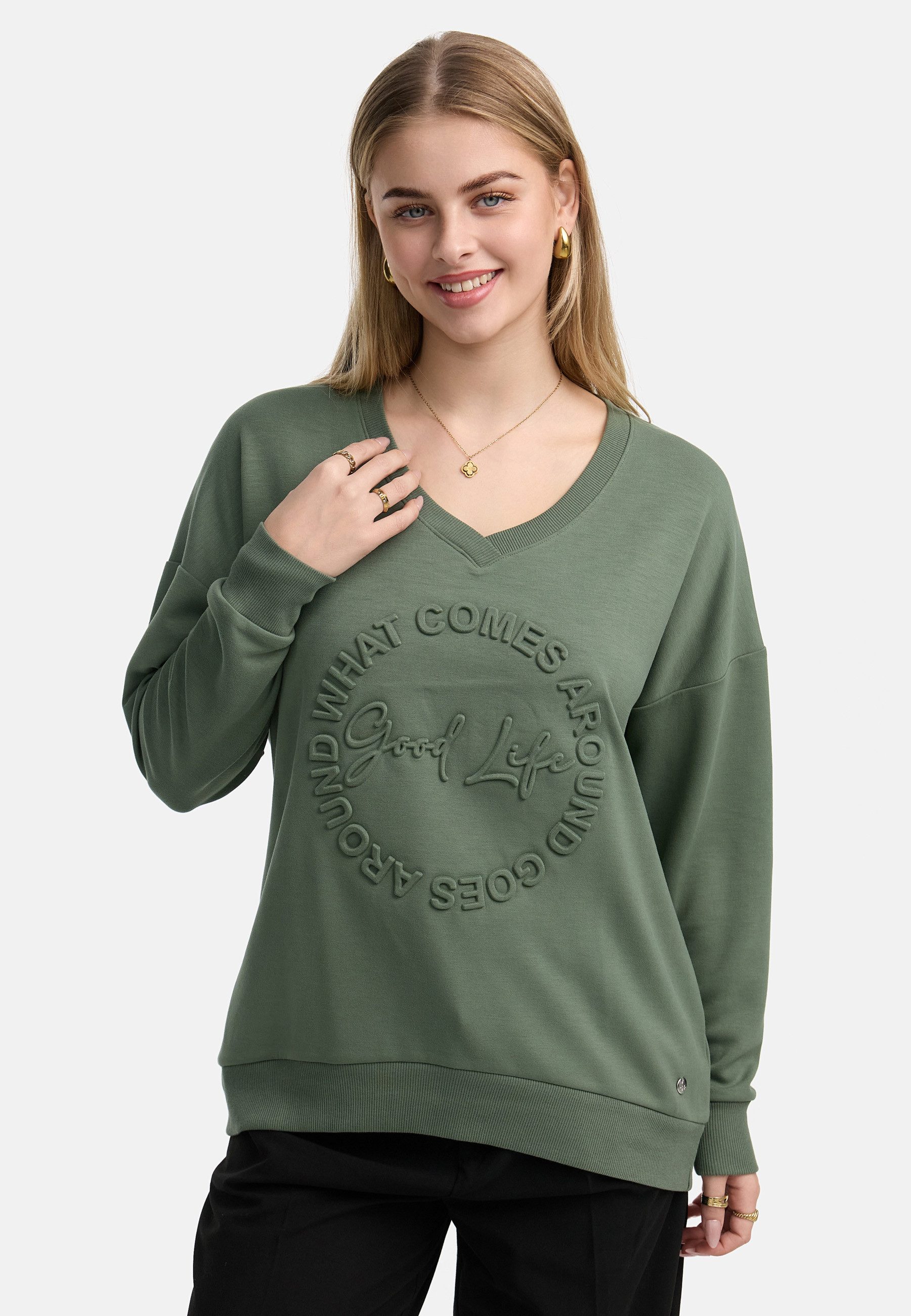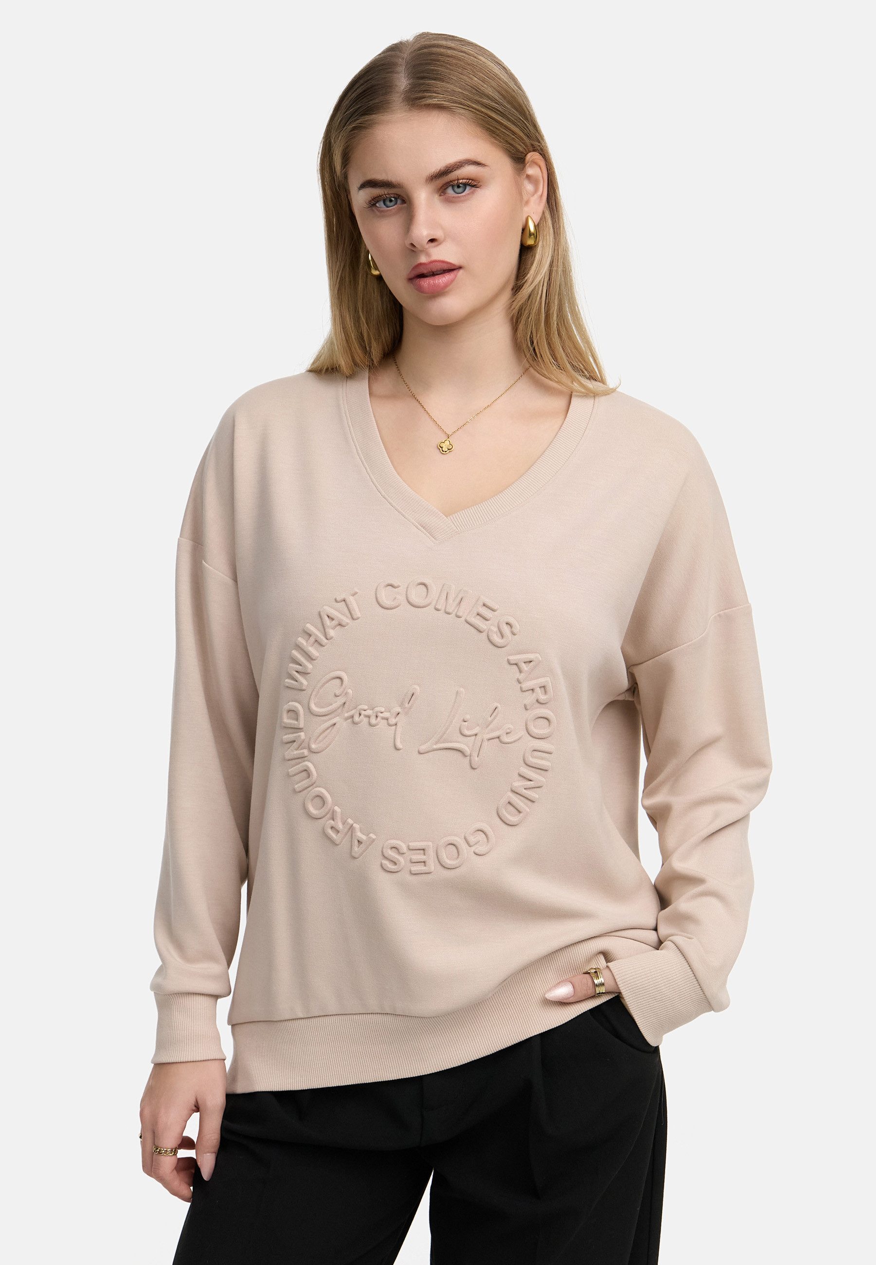 Ob für den Alltag, im Büro oder für besondere Anlässe – dieses Longsleeve passt sich jeder Situation an. Kombiniere es mit einer Jeans für einen lässigen Look, mit einer Stoffhose für ein elegantes Outfit oder mit einem Rock für einen femininen Touch. Dank seines klassischen Schnitts und der dezenten Farbtöne lässt es sich vielseitig stylen.