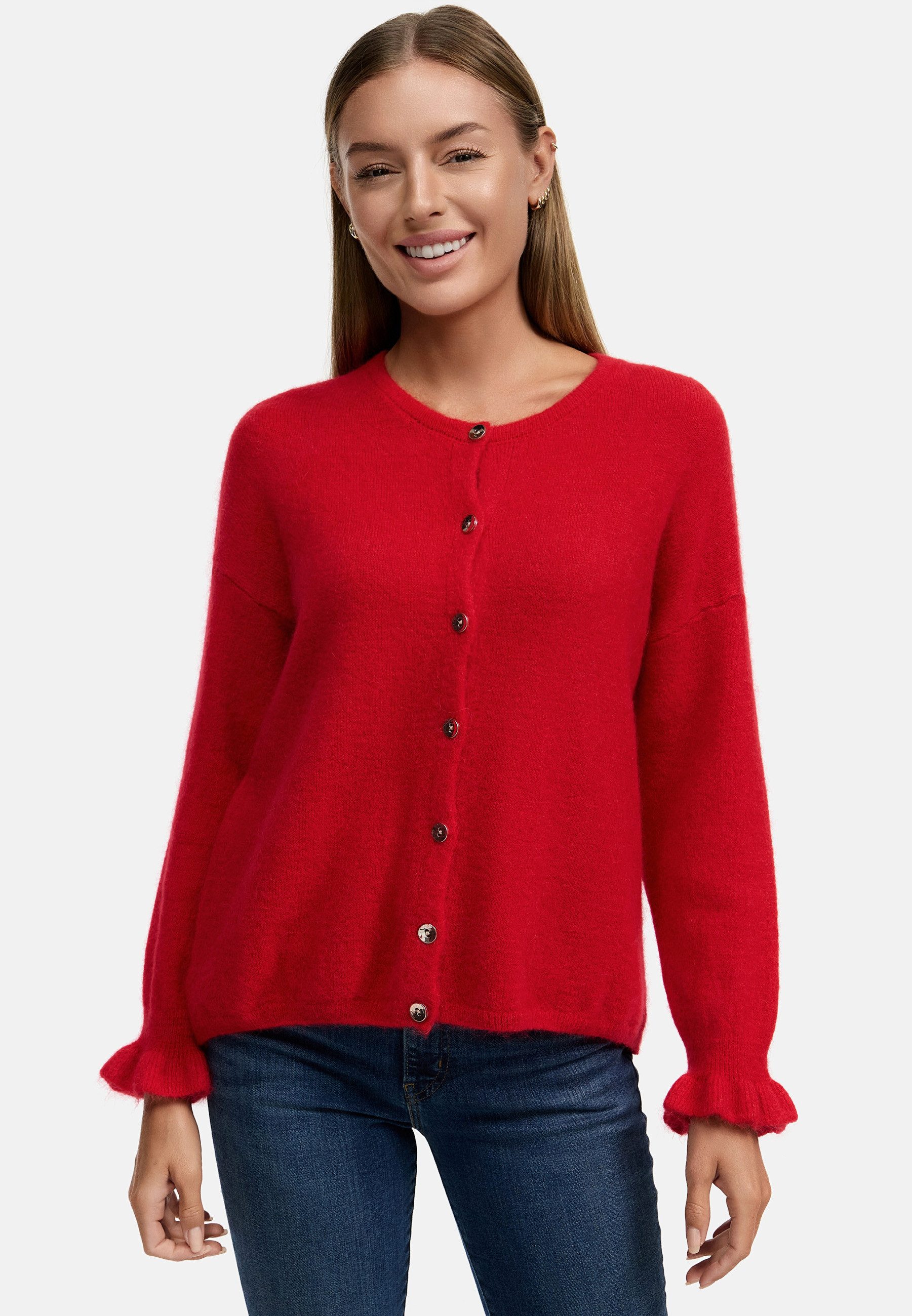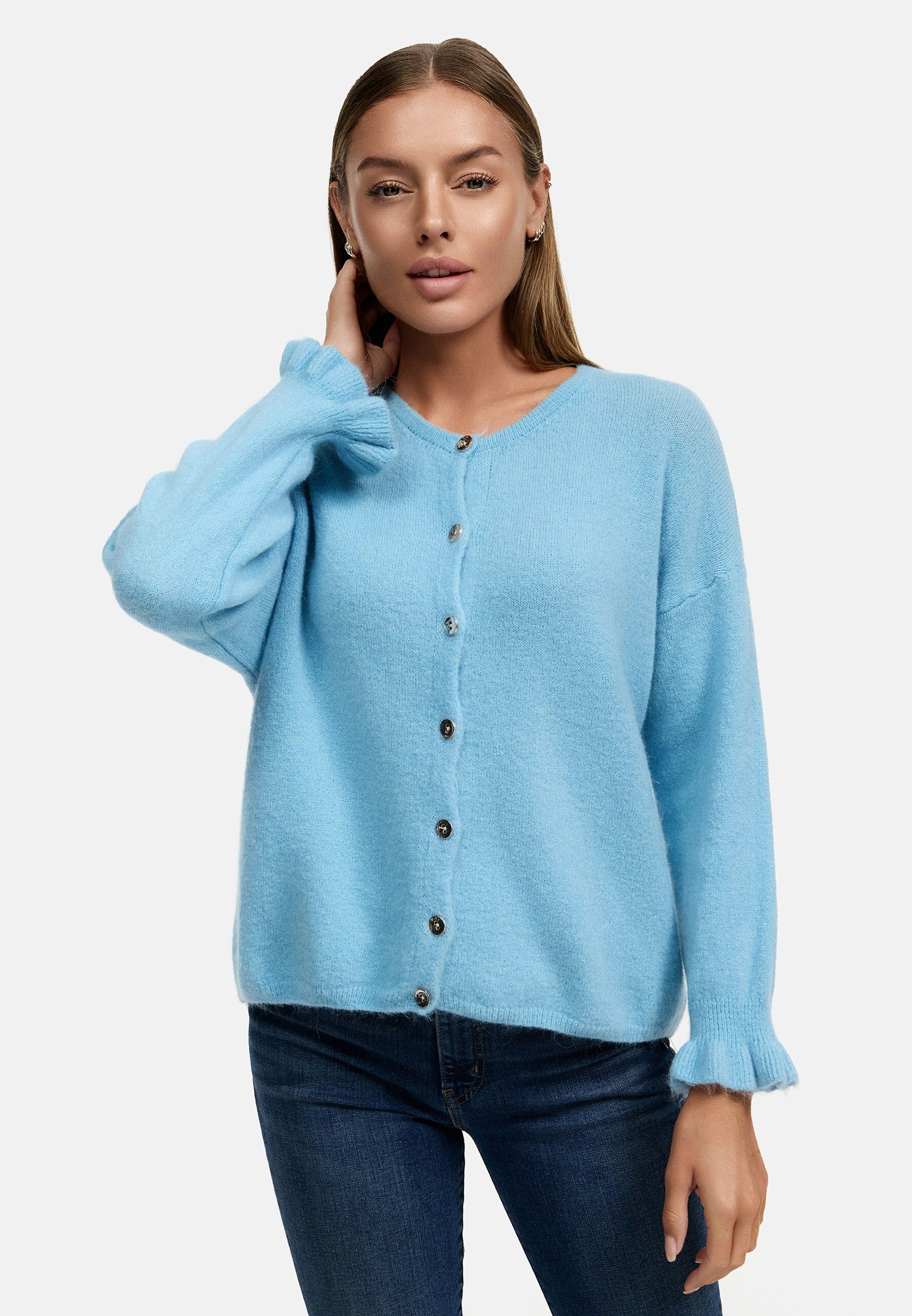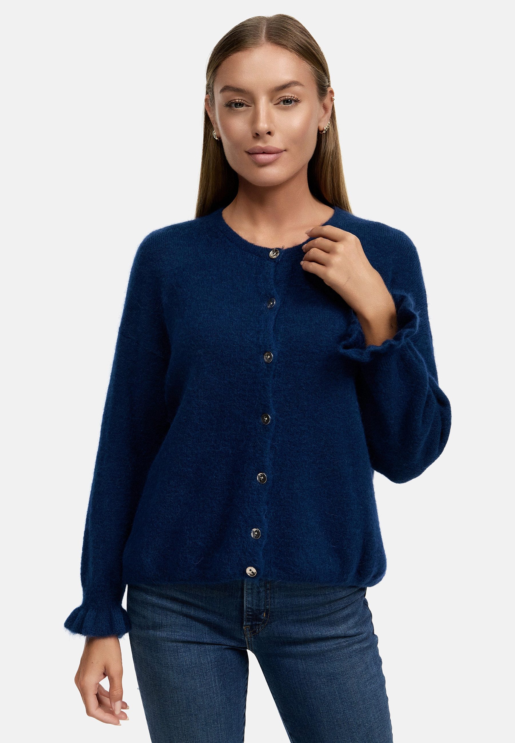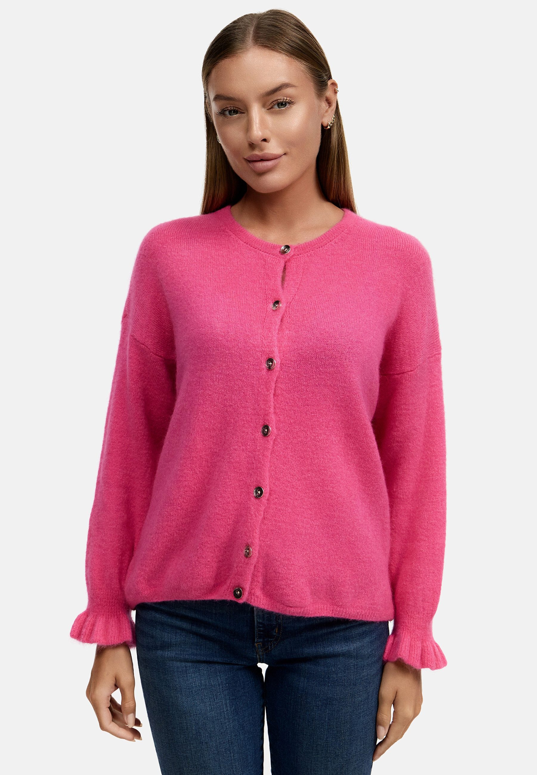 Diese edle Strickjacke von Decay verbindet luxuriösen Tragekomfort mit zeitloser Eleganz. Hergestellt aus einem hochwertigen Garnmix mit 30% Baby Alpaka, 32% Polyamid und 38% Acryl, bietet sie nicht nur außergewöhnliche Weichheit, sondern auch eine hervorragende Wärmeisolierung. Die klassische Knopfleiste auf der Vorderseite verleiht der Jacke einen stilvollen Look, während der bequeme Schnitt und die weiche Oberfläche für ein rundum angenehmes Tragegefühl sorgen. Ideal für die kühleren Tage, lässt sich dieses Strickteil vielseitig kombinieren – sei es über einem Kleid, einer Bluse oder einem Shirt.