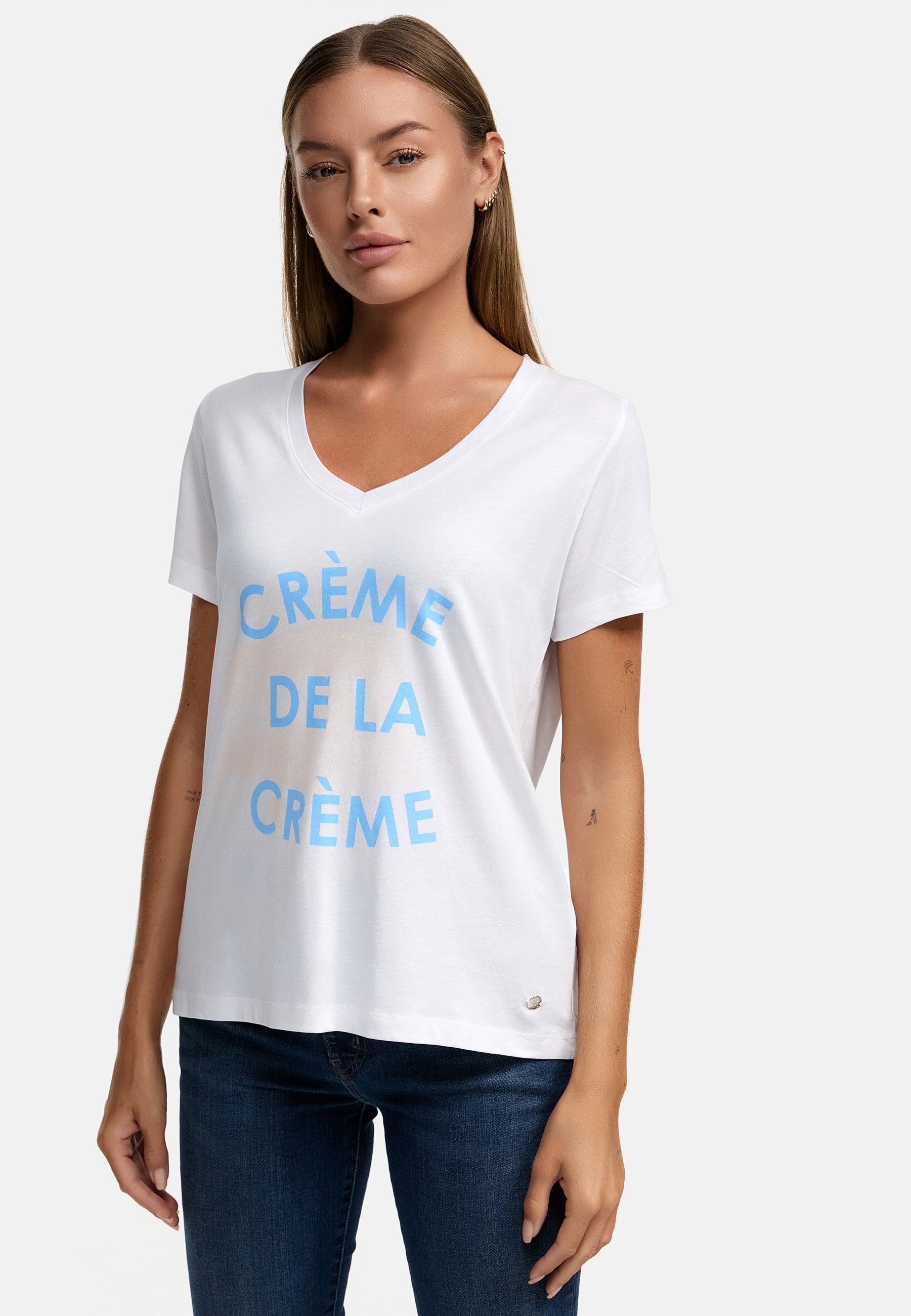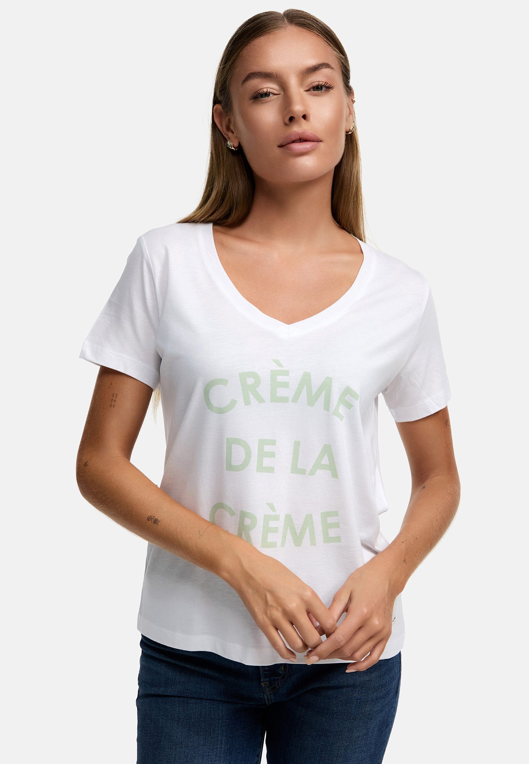 Schlicht, elegant und dennoch ein Statement – das Decay T-Shirt „Crème de la Crème“ überzeugt mit seinem minimalistischen Design und hochwertigen Materialien. Der stilvolle Schriftzug „Crème de la Crème“ auf der Vorderseite verleiht dem Shirt eine dezente, aber edle Note. Der moderne V-Ausschnitt sorgt für eine schmeichelhafte Passform und eine lässige, aber dennoch anspruchsvolle Optik.