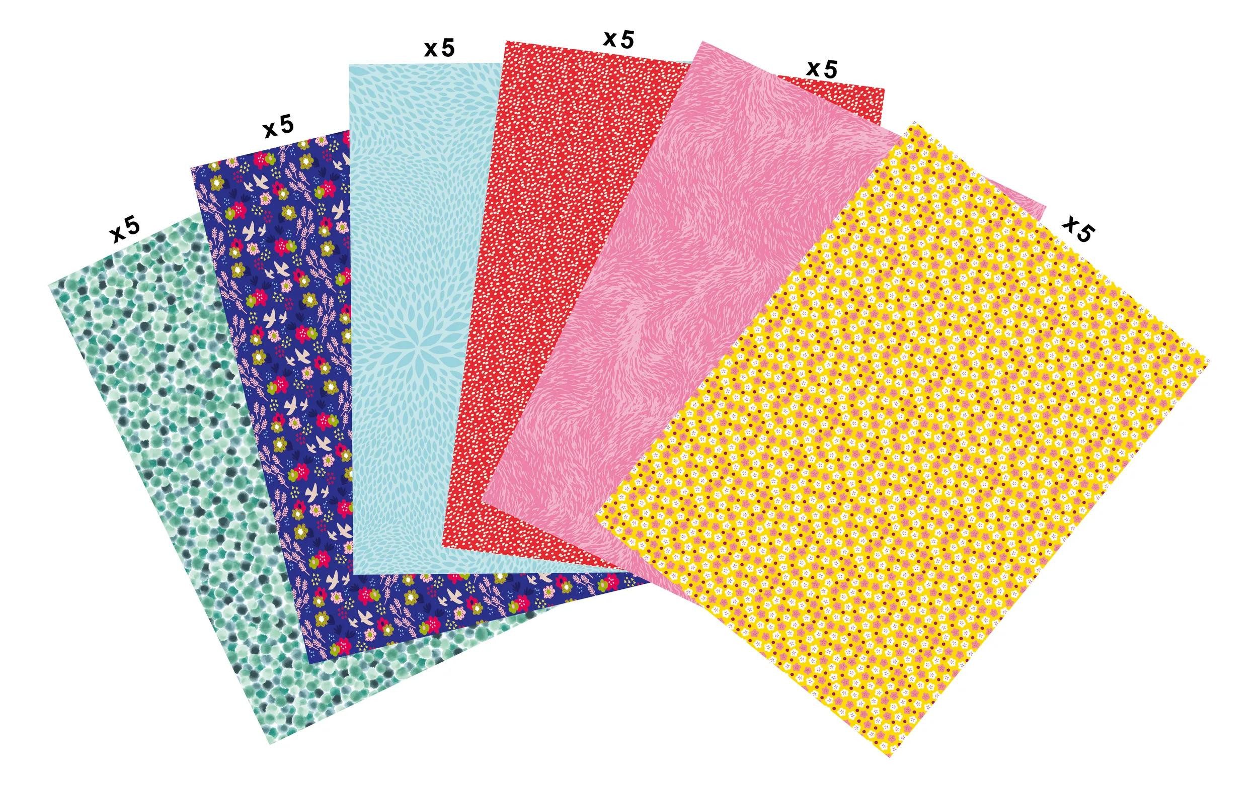 Packung mit 30 Blatt Décopatch-Papier 30x40 cm. 6 Designs x 5. Das Décopatch-Papier passt sich der Form aller Objekte perfekt an (eben oder uneben) und kann auf alle Oberflächen geklebt werden (Pappmaché, Holz, Kunststoff, Eisen, Glas, Styropor, Metall, Terrakotta, Keramik, Kork u.v.m.).