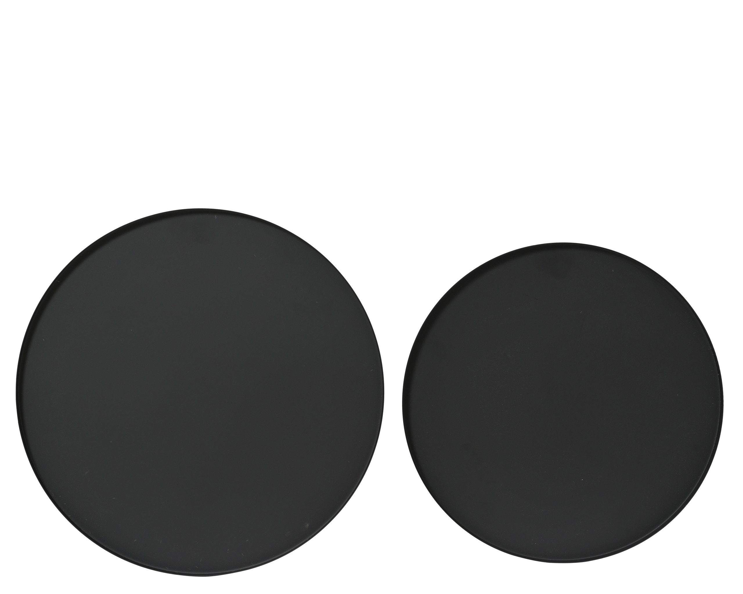 PRODUKT: Deko Tablett / INHALT: 2 Stück / GRÖSSE (DxH): ca. 35 x 1,5 cm / MATERIAL: Metall - Eisen / FARBE: schwarz