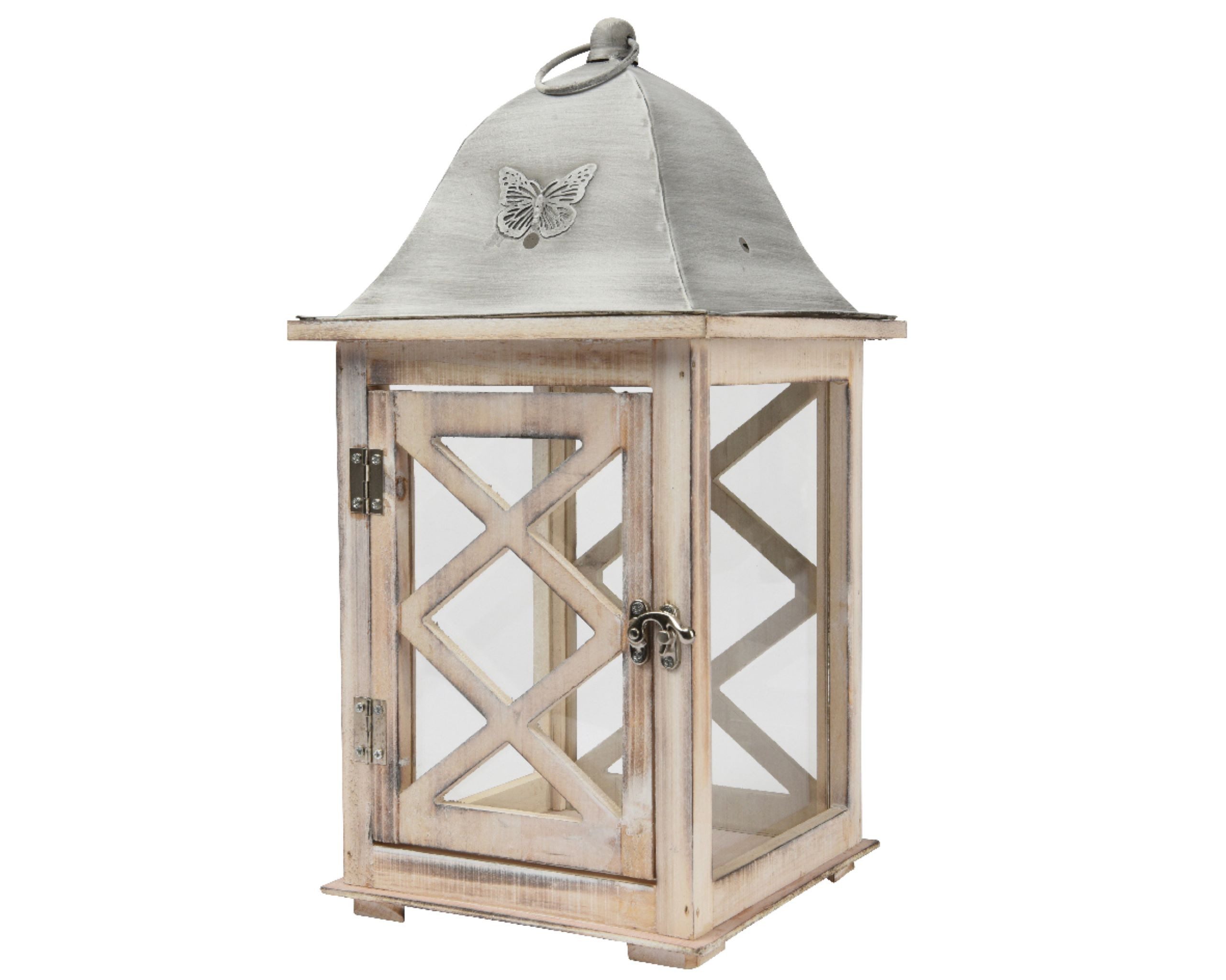 Holzlaterne / Windlicht / Kerzenlaterne Material: Holz - Tannenholz, Metall - Eisen, Glas Размер (LxBxH): ca. 21 x 21 x 41 cm Inhalt: 1 Windlichtlaterne Farbe: transparent - natur - naturbraun - braun - beige - dekorative Laterne für Kerzen - mit Metallbügel und Schmetterling Motiv Mit dieser Deko Laterne verwandeln Sie Ihren Wohnraum in eine wunderschöne Lichter - Oase. Ob Geburtstag, eine Party oder ein gemütlicher Abend zu Hause, warm strahlendes Kerzenlicht aus einer schönen Windlichtlaterne kreiert eine besonders gemütliche Atmosphäre. Auf einem Laternenhalter hängend, setzt der Windlichthalter zauberhafte Akzente. Auf Hochzeiten sind Windlichter ebenfalls beliebt, denn der warme Farbton des Kerzenlichts sorgt für einen besonderen Blickfang. Die Hängelaterne lässt sich bei gutem Wetter oder überdachtem Bereich auch als Gartenlaterne verwenden. Für ein helleres Ambiente können auch mehrere Deko Laternen kombiniert eingesetzt werden. Durch die schlichte Zusammensetzung lässt sich diese Kerzenlaterne wunderbar mit weiterer Kerzendeko, Hängedeko und Hochzeitsdeko kombinieren. Die Laterne ist auch eine gute Geschenkidee. Überraschen Sie Ihre Familie, Freunde oder Kollegen mit diesem dekorativen Kerzenhalter. Stil & Aufmachung: Landhaus, Landhausstil Country, Natur, romantisch, Vintage, rustikal Verwendungsbereich: Wohnraum, Zimmer, Wohnzimmer, Strandhaus, Indoor, Innen, drinnen