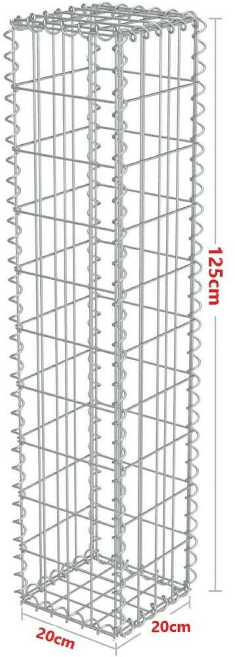 Gabionen Steinkörbe - Säule Größe: 20x20x125cm mit 4 Distanzhalter , 20x20x175cm 6 Distanzhalter , 25x25x120cm 4 Distanzhalter Drahtstärke: 4 mm feuerverzinkt Draht Unsere Gabionen sind in verschiedenen Größen sind und optimal für Ihre Landschaftsarchitektur - sowohl im privaten als auch im gewerblichen Bereich! Eine Gabione (Steinmauer, Steinkorb, Schüttkorb, Mauersteinkorb) ist ein Drahtkorb, welcher mit Steinen gefüllt wird. Somit entsteht ein äußerst stabiles und dekoratives Element, welches als Mauer (Sichtschutz und Lärmschutz), Stützmauer, Schutzwall, moderne Mülltonnenverkleidung, Böschungsbefestigung oder auch zur Landschaftsgestaltung eingesetzt werden kann. Die Gabione ist sehr einfach zu montieren, zu platzieren und zu befüllen. Der Metallkorb ist ideal für grobkörnige Steine, wie z.B. Schotter, Granit, Basalt, Quarzit, Dolomit, Kalkstein o.ä.. Es können problemlos auch mehrere Steinkörbe, welche mittels stabilen Spiralen verbunden werden, neben- oder aufeinander gestellt werden. Eine Kombination der verschiedenen Maße ist möglich und ist ein Designelement in Ihrem Garten. Somit sind Ihnen in der Landschaftsgestaltung kaum Grenzen gesetzt. Um mögliche Verformungen beim Befüllen zu vermeiden, liegen unseren Gabionen passende Distanzhalter bei. Diese Distanzhalter werden gleichmäßig (vor dem Befüllen mit Steinen) im Metallkorb verteilt eingehängt. Lieferung erfolgt ohne Steine! Der Artikel wird zerlegt geliefert. Aufstellung der Metallkörbe ist hoch- und querkamt möglich. Abmessungen: 20 x 20 x 125 cm, 20 x 20 x 175 cm, 25 x 25 x 120 cm (L x B x H) - Maschenweite: 10 x 5 cm (L x B)
