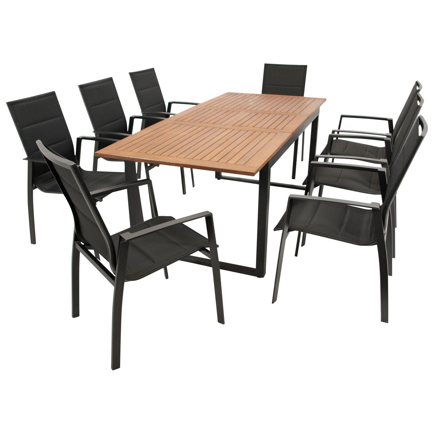 Set beinhaltet | 8x Stapelsessel, 1x Ausziehtisch |