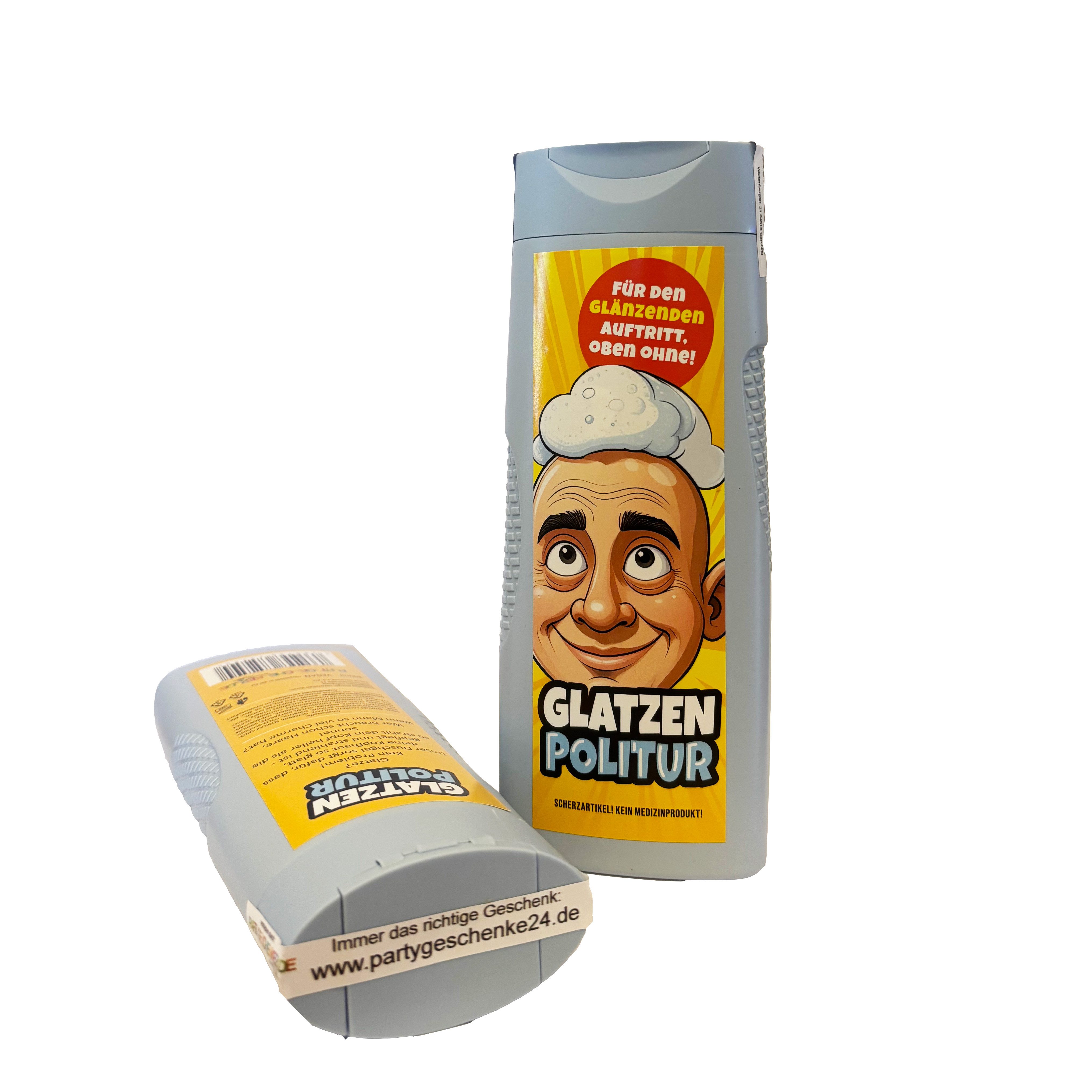 Anwendung | GlatzenPolitur Duschgel – Für den glanzvollen Auftritt! Anwendung: 1. Vorbereitung: Befeuchte deine Kopfhaut gründlich mit warmem Wasser. 2. Auftragen: Gib eine kleine Menge des "GlatzenPolitur" Duschgels in deine Handflächen. 3. Verteilen: Massiere das Gel sanft in die Kopfhaut ein, bis ein angenehmer Schaum entsteht. 4. Genießen: Lass das Duschgel kurz einwirken, um die pflegenden Inhaltsstoffe zu entfalten. 5. Abspülen: Spüle alles gründlich mit Wasser ab – für einen strahlenden, gepflegten Glanz! Tipp: Für den perfekten Glanz, verwende das Duschgel regelmäßig und gönn dir nach der Dusche eine kleine Pflegepause für dein Selbstbewusstsein! Dieses Produkt ist nicht nur praktisch, sondern auch ein cooles Geschenk für jeden Mann, der Wert auf einen glänzenden Auftritt steht! |