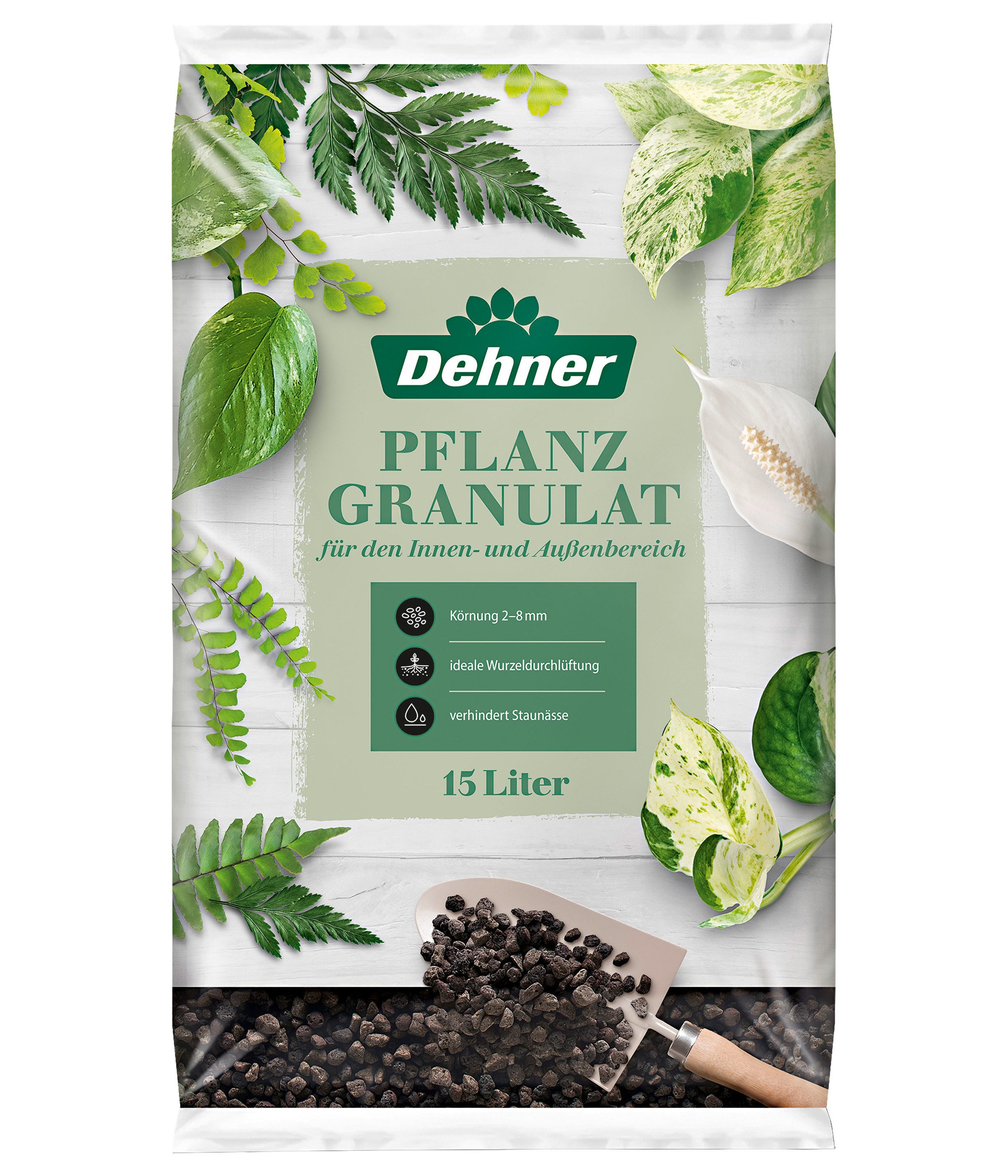 Der Schlüssel für dauerhaft schöne Pflanzen sind gleichbleibend gute Bodenverhältnisse. Das Dehner Pflanz-Granulat bietet dafür die perfekte Grundlage. Es ist ein natürliches Pflanzsubstrat auf mineralischer Basis. Bims, Lava, Zeolith und Blähton bilden darin einen gleichbleibend idealen Lebensraum für alle Topf-Pflanzen im Innen- wie im Outdoor-Bereich. Dadurch stellt das Pflanz-Granulat in Dehner Markenqualität eine echte Alternative zu herkömmlichen Blumenerden dar. Eigentlich übertrifft es diese sogar noch an guten Eigenschaften. Das Granulat bietet den Pflanzen einen besonders guten Halt im Topf und hat zusätzlich den Vorteil, dass es durch seine stabile Struktur auch langfristig eine optimale Wurzeldurchlüftung garantiert.