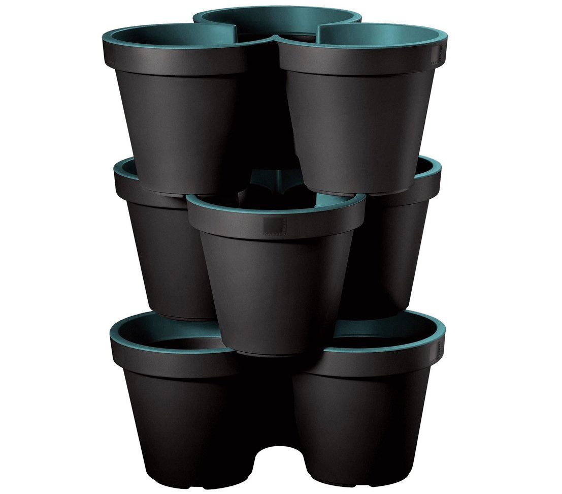 Diesen Kunststoff-Säulentopf Portland erhalten Sie im praktischen 3er-Set für mehr Bepflanzung. Er hat drei Etagen mit jeweils drei Töpfen, die Sie bestücken können, und eignet sich für die Platzierung im Innen- und Außenbereich. Das gibt Ihnen die Möglichkeit, sich im Garten oder auf Ihrem Balkon an bis zu neun Blumensorten oder -farben zu erfreuen und damit einen interessanten und abwechslungsreichen Akzent zu setzen, der sicher jedem Besucher sofort auffallen wird. Besonders hübsch wirkt der Kunststoff-Säulentopf Portland außerdem mit aromatischen, leckeren Küchenkräutern. Ein weiterer Vorteil ist, dass Sie die neun Pflanztöpfe individuell mit verschiedener Erde befüllen, gießen und düngen können, um so den unterschiedlichsten Pflanzen, Blumen oder Kräutern gerecht zu werden.