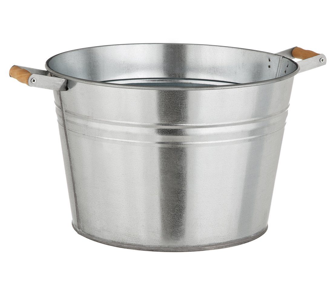 Der Zink-Pflanzkübel im nostalgischen Stil ist eine Bereicherung für Ihr Heim. Das praktische und moderne Pflanzgefäß ist aus verzinktem Stahlblech und somit sowohl für den Innenbereich als auch für den Balkon geeignet. Der Behälter ist frostbeständig bei Vermeidung von Staunässe und eignet sich somit hervorragend für winterharte Pflanzen. So können Sie den Zink-Pflanzkübel ganzjährig im Außenbereich stehen lassen. Konisch geformt erscheint der Blumentopf im zeitlos schönen Design, das sich perfekt in die Umgebung einfügt. Damit Sie den Pflanzkübel bequem tragen können, ist außerdem Holz an den Griffen angebracht. Die Holzgriffe sind nicht nur eine Erleichterung für den Transport, sondern heben sich zudem von dem verzinkten Stahl des Kübels ab und setzen hübsche Akzente.