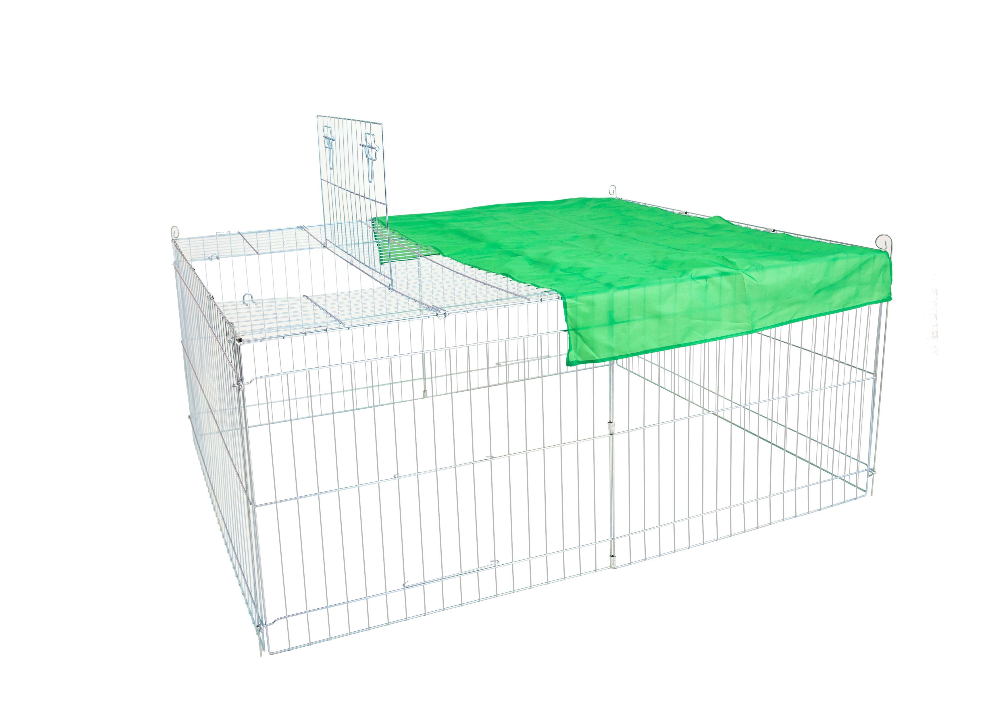 An der frischen Luft viel Bewegungsfreiheit genießen und dabei auch noch leckeres Gras mümmeln? Mit dem Dehner Lieblinge Freilaufgehege Björn geht dieser Traum für Ihre Kaninchen und Meerschweinchen in Erfüllung. Stellen Sie das Kaninchen Freigehege aus verzinktem Metall einfach zu Hause im Garten auf eine Rasenfläche, befestigen Sie den Freilauf mit den mitgelieferten Heringen im Untergrund und lassen Sie Ihre Kleintiere einziehen. In diesem Kaninchen Freigehege erleben Kaninchen und Meerschweinchen unbeschwerte Tage an der frischen Luft und sind dabei bestens vor Fressfeinden wie Katzen und Greifvögeln geschützt. Praktischerweise verfügt das Dehner Lieblinge Freilaufgehege Björn auch über eine Abdeckung aus Stoff, die einen Teil des Freigeheges vor der Sonne schützt. Genau unter dieser Abdeckung befindet sich auch eine Öffnung im Dach, über die Sie Kaninchen und Co. aus dem Freilaufgehege herausholen oder Futter und Wasser hineinstellen können.