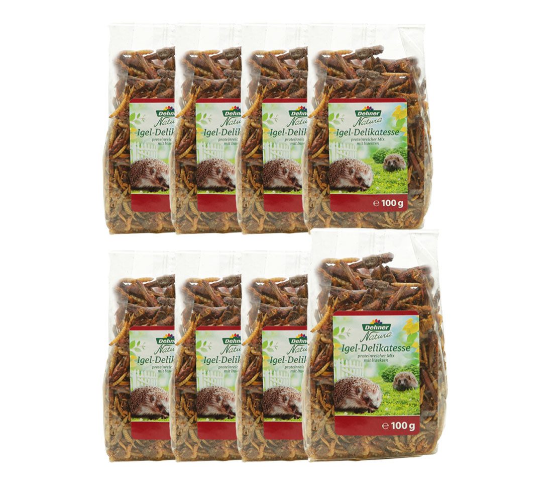 Nicht nur die Wildvogelfütterung ist immer mehr ein Trend sondern auch die Fütterung von kleinen Igeln. Mit der Dehner Natura Igel-Delikatesse können Sie Ihren Gartenbewohner ganz bewusst verwöhnen. Die Delikatesse besteht aus einer vielseitigen Mischung köstlicher Insekten und versorgt den Igel so mit allen wichtigen Nährstoffen, Proteinen und Vitaminen. Enthaltene Heuschrecken, Mehlwürmer und Seidenraupen sorgen für ein unverwechselbares Geschmackserlebnis. Da Igel in der Natur reine Fleischfresser sind und sich hauptsächlich von Insekten ernähren, können Sie mit der Dehner Natura Igel-Delikatesse bestimmt nichts falsch machen. Der proteinreiche Mix mit gesunden Insekten wird sicherlich die neue Lieblingsspeise Ihres Gartenbewohners.