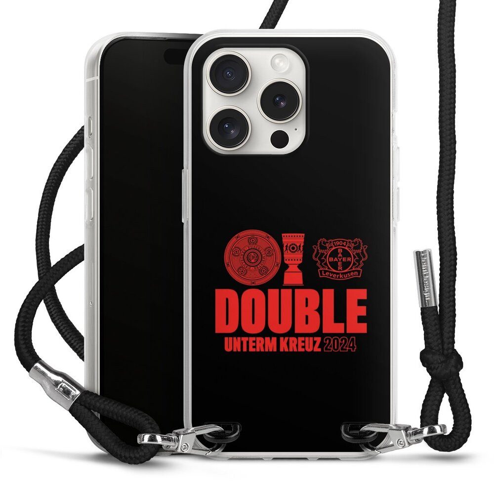 DeinDesign Handyhülle Bayer 04 Leverkusen Meister Pokal Double Sieg 2024, Apple iPhone 15 Pro Handykette Hülle mit Band Case zum Umhängen