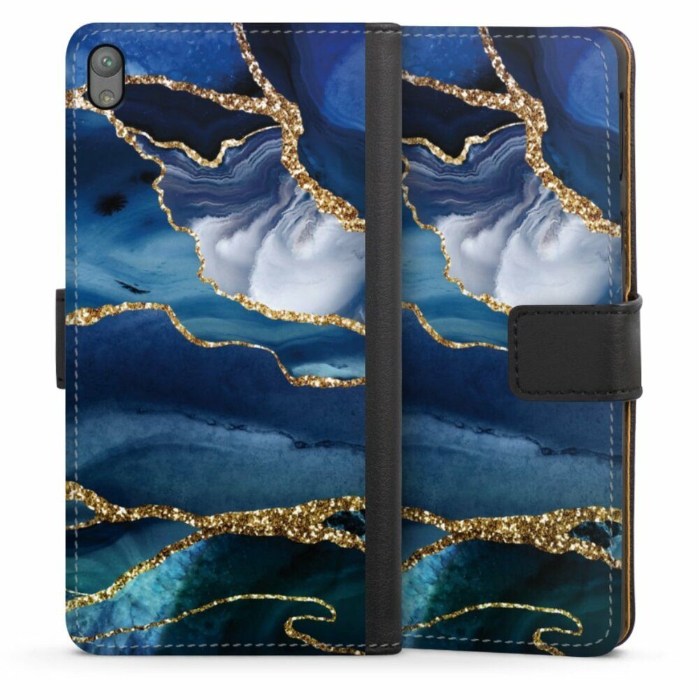 Besondere Merkmale | Hülle, Handy Flip Case, Wallet Cover, Handytasche Leder Marmor Blau Gold & Kupfer |