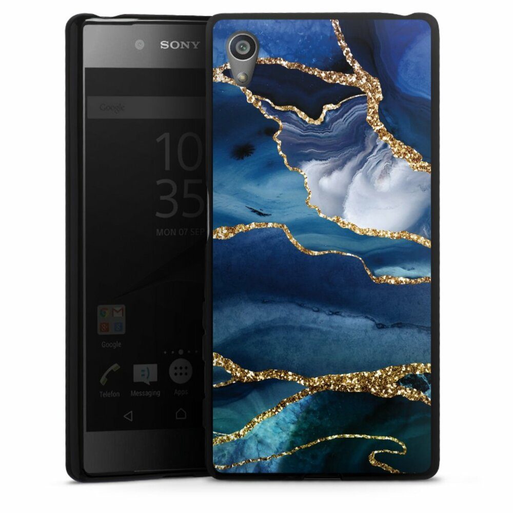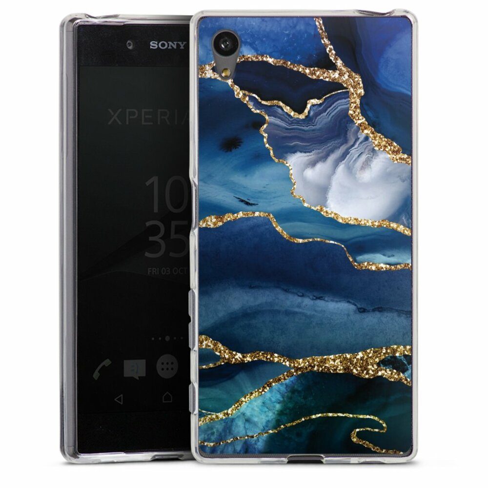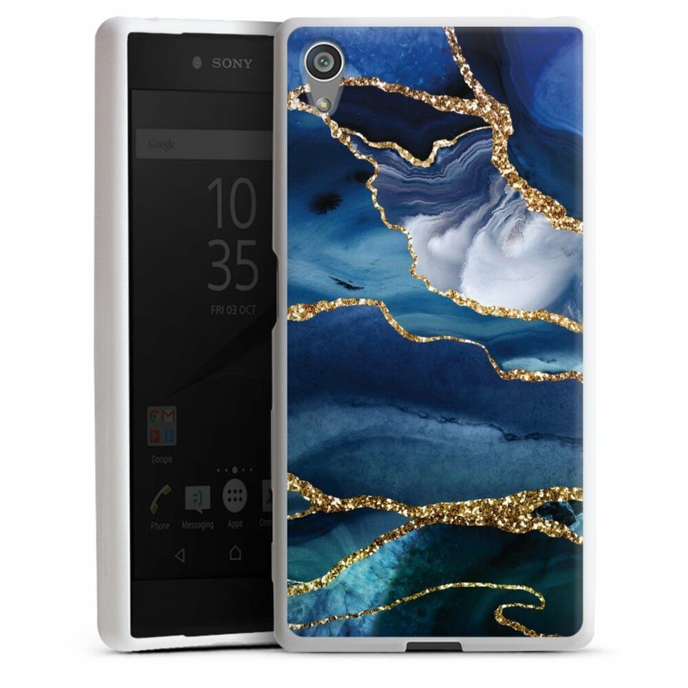 Besondere Merkmale | Silikon Hülle, Bumper Case, Handy Schutzhülle, Smartphone Cover Marmor Blau Gold & Kupfer |