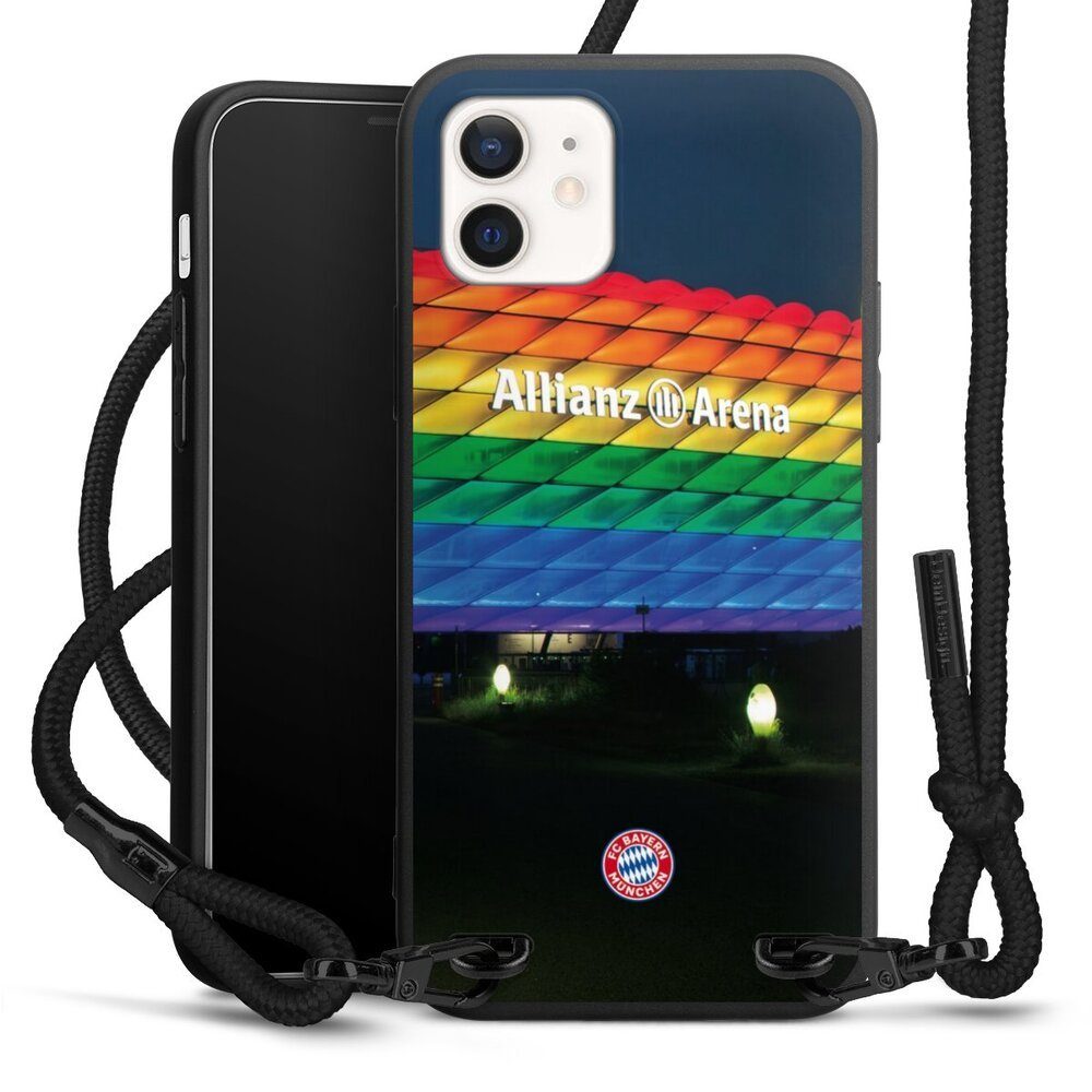 DeinDesign Handyhülle FC Bayern München Regenbogen Stadion Allianz Arena Rainbow, Apple iPhone 12 Premium Handykette Hülle mit Band Case zum Umhängen