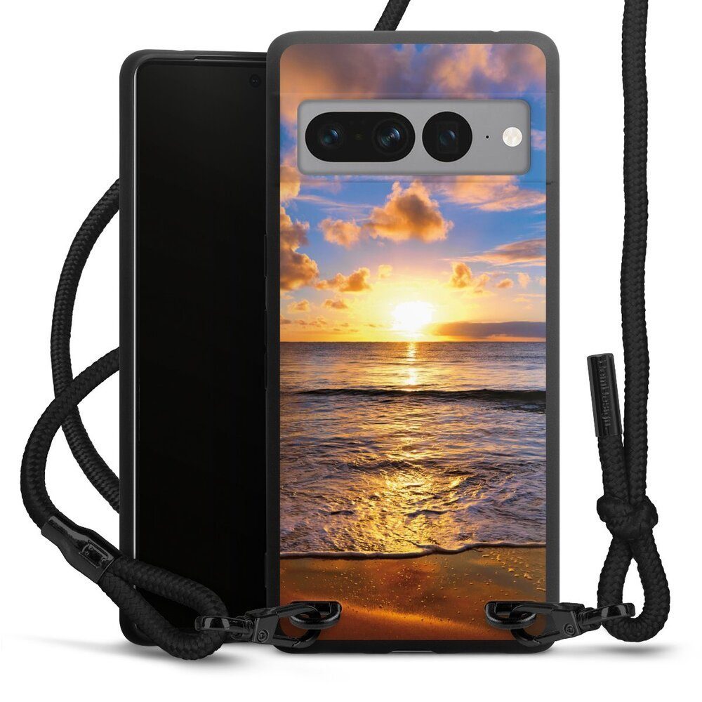 DeinDesign Handyhülle Meer Sonnenuntergang Strand Strand, Google Pixel 7 Pro Premium Handykette Hülle mit Band Case zum Umhängen