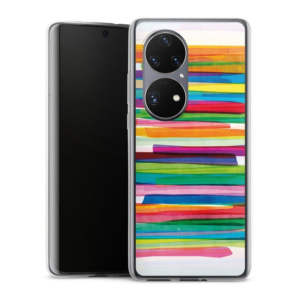 DeinDesign Handyhülle Streifen Wasserfarbe bunt Colorful Stripes1, Huawei P50 Pro Silikon Hülle Bumper Case Handy Schutzhülle