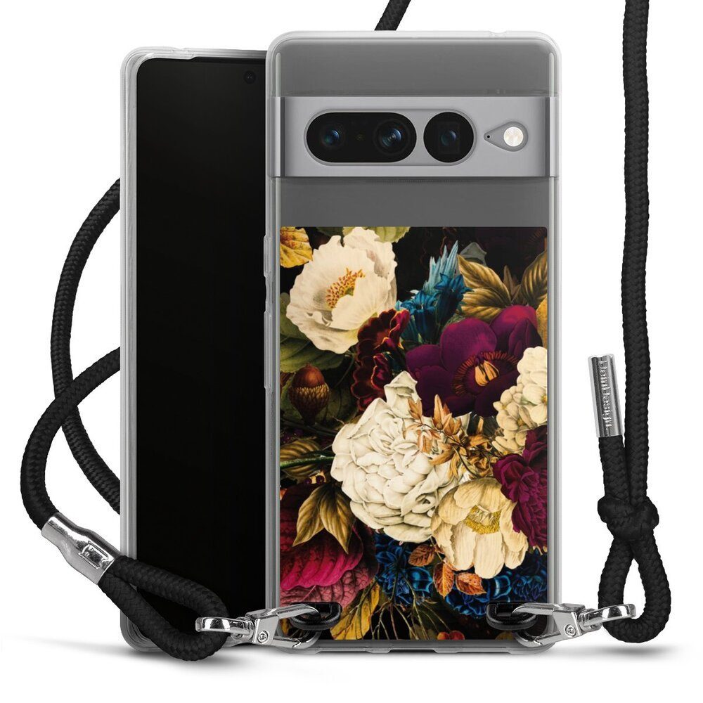 DeinDesign Handyhülle Vintage Blumen Muster Dark Vintage Flowers, Google Pixel 7 Pro Handykette Hülle mit Band Case zum Umhängen