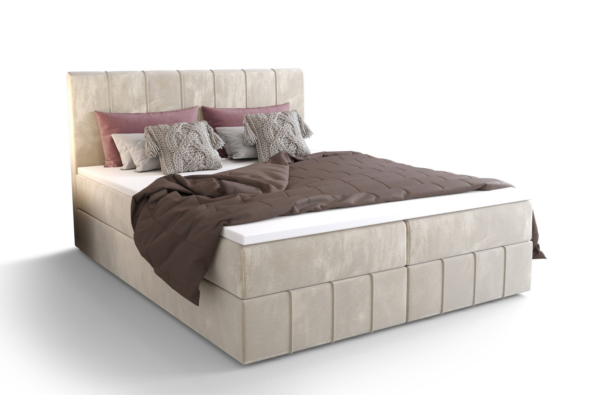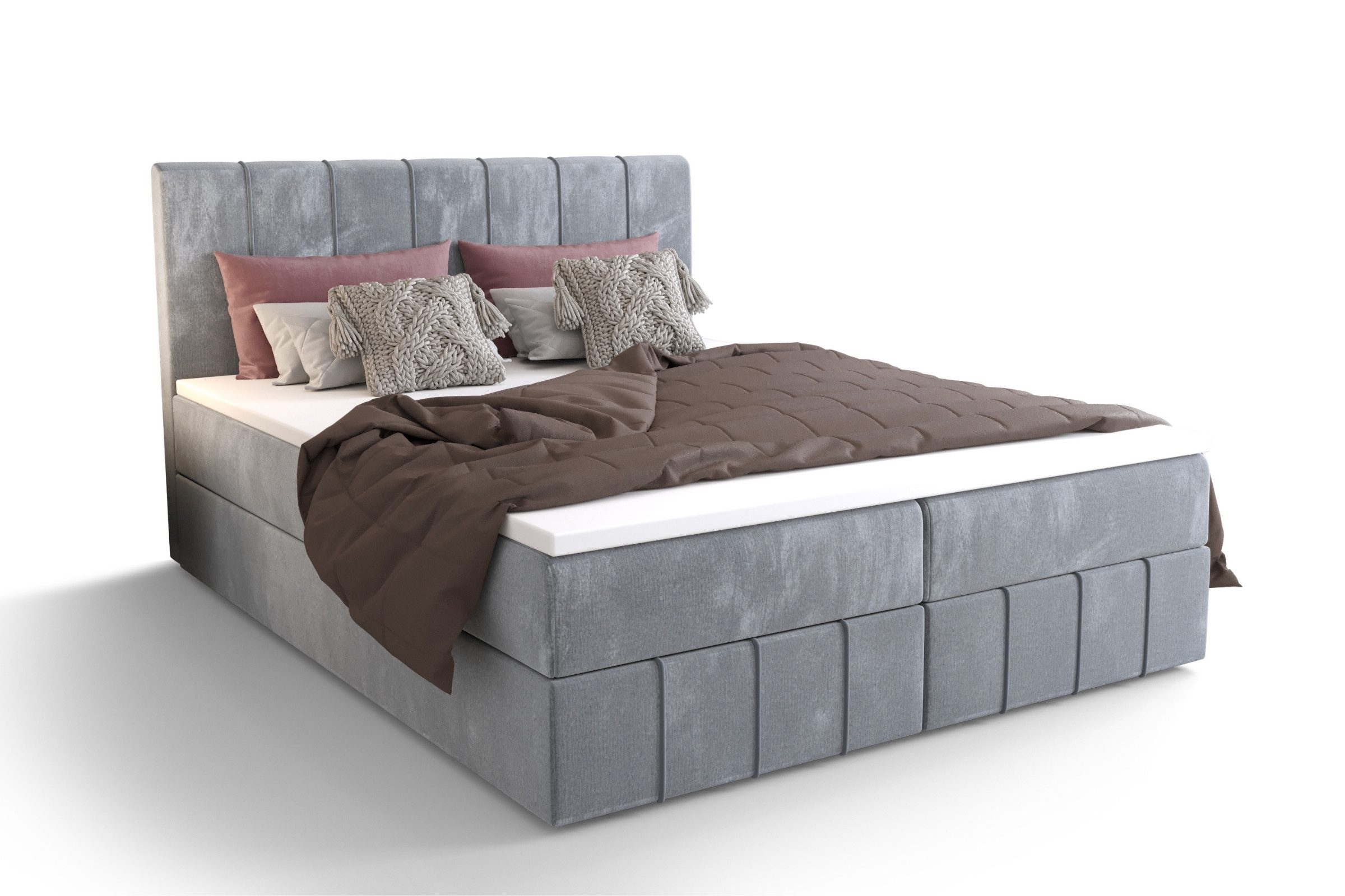 vier Größen, Bonellfederkern, wasserabweisender Veloursstoff MONOLITH, stabiles Gestell, vertikale Steppnähte am Kopfteil & Bettkasten