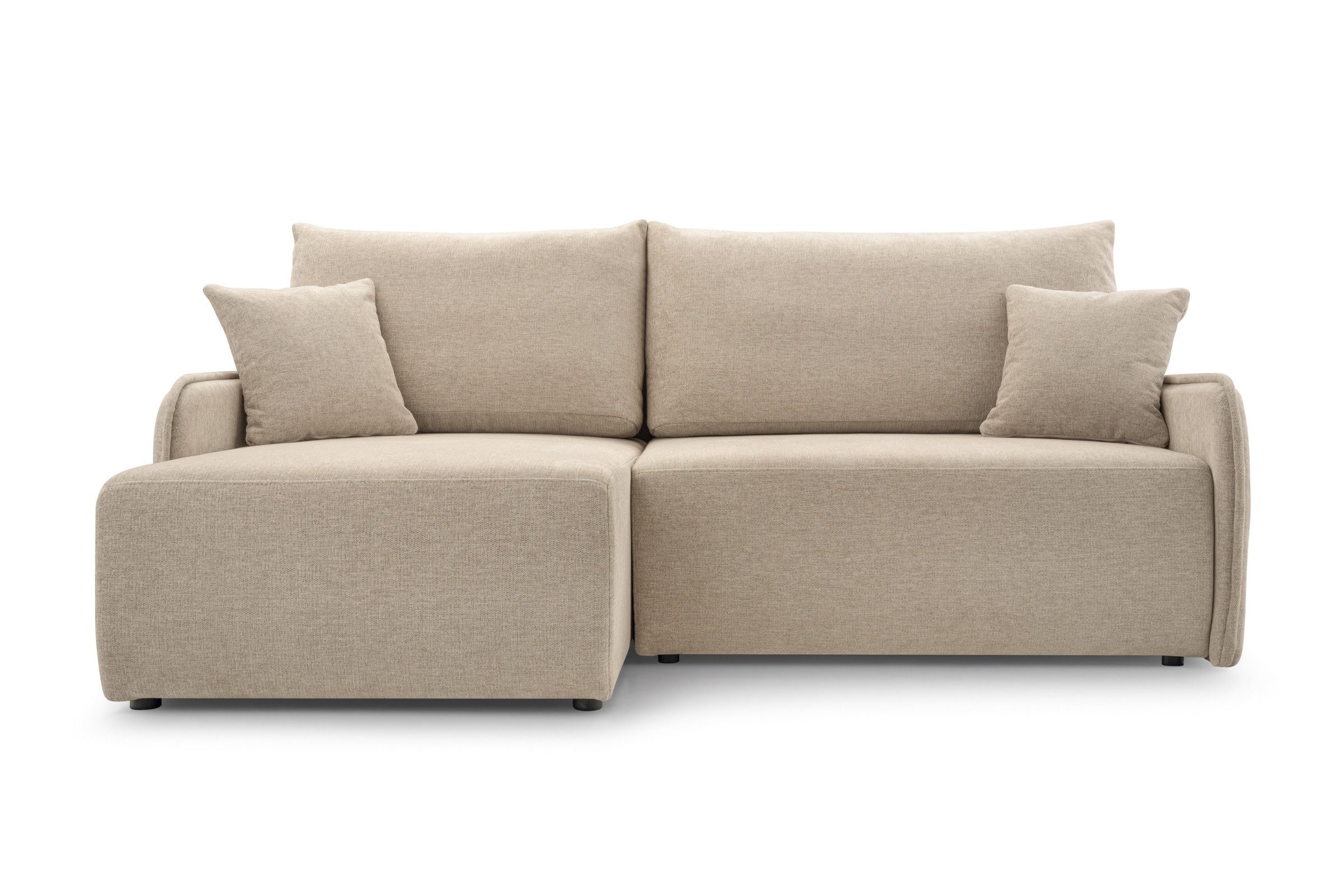 Das Ecksofa MIREA ist die perfekte Lösung für stilvolles Wohnen auf kleinem Raum. Mit praktischer Schlaffunktion, integriertem Bettkasten und modernem Look passt es sich flexibel Ihren Bedürfnissen an – ideal für Wohnzimmer, Gästezimmer oder kleine Apartments.