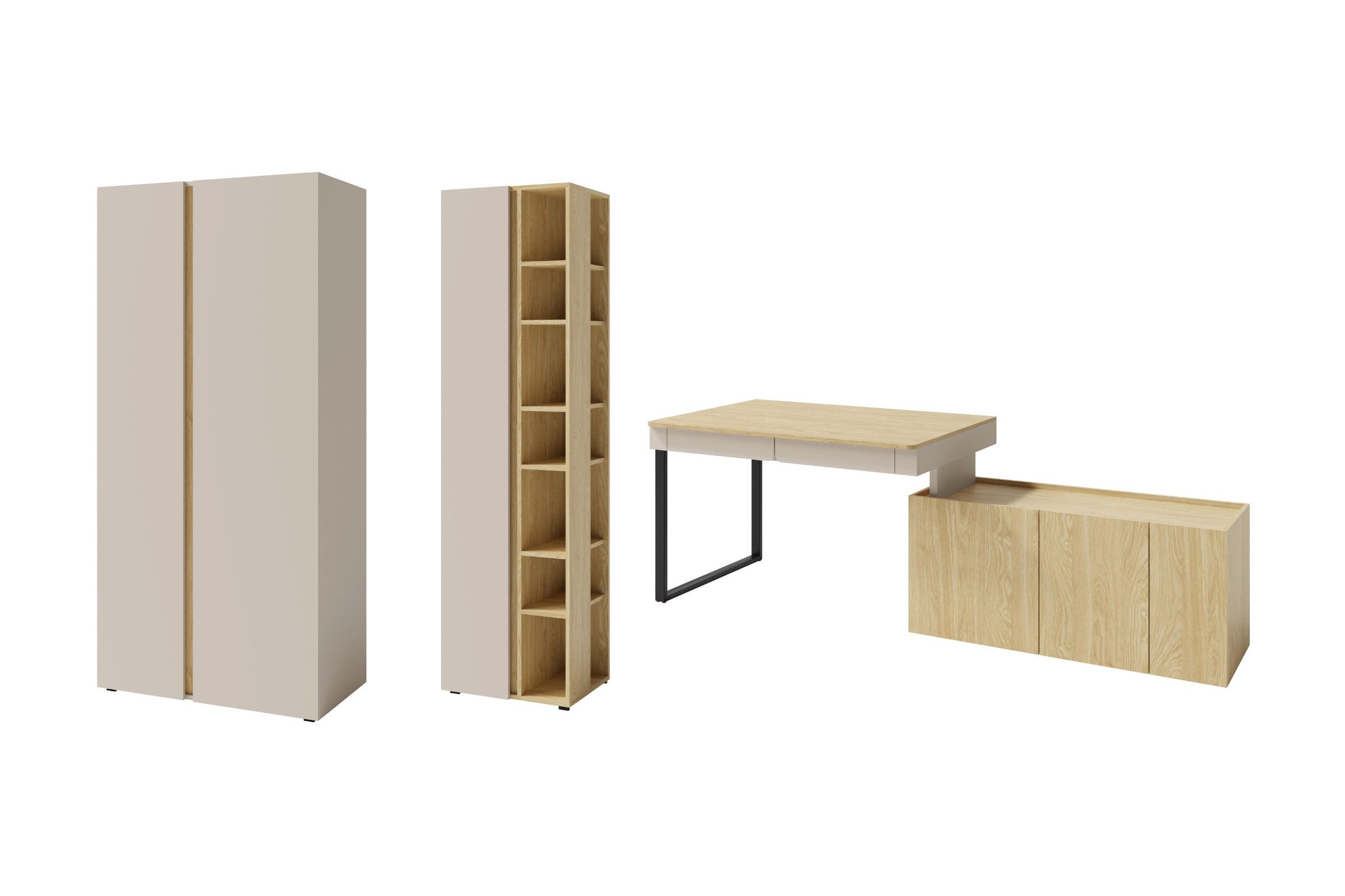 Lieferumfang | Kleiderschrank 03 90 / 195 / 50 cm Regal 04 55 / 195 / 40 cm Schreibtisch 10 131 / 74,5 / 140 cm |