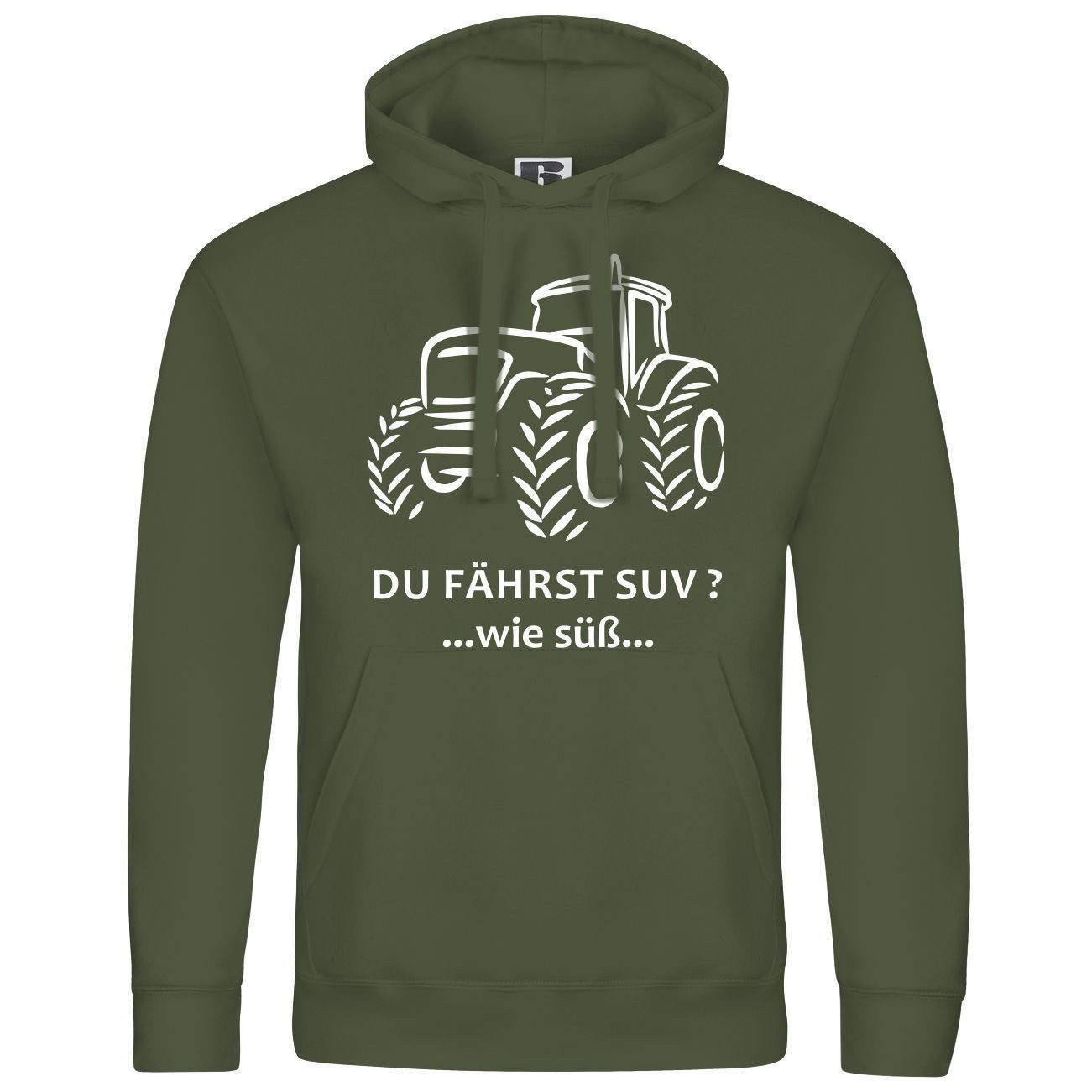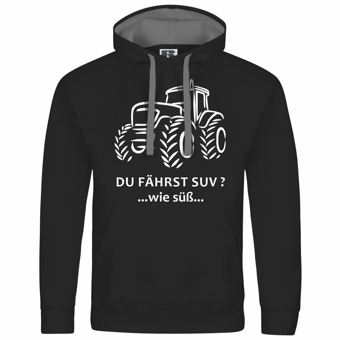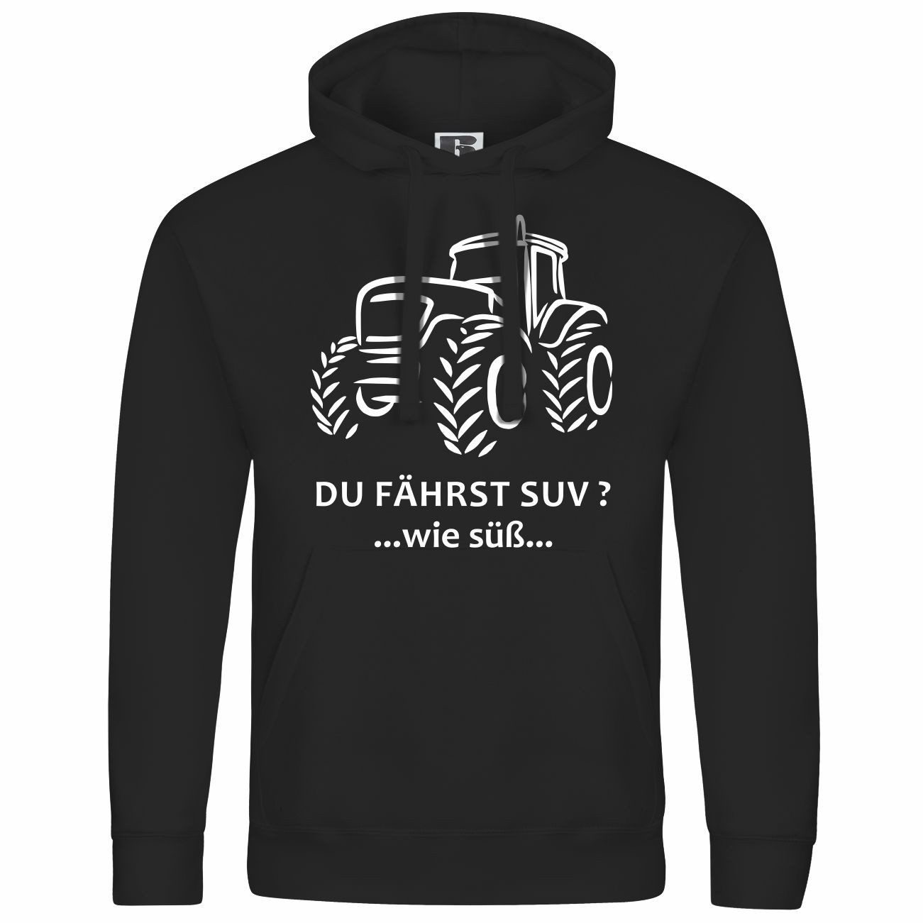 Dein "Landwirt" Shirt Lustiger Traktor Hoodie für Landwirte! Schwarzer Hoodie mit weißem Traktor-Motiv und Spruch „Du fährst SUV? …wie süß…“. Perfekter Trecker Pullover für alle, die echte Power auf dem Feld lieben!