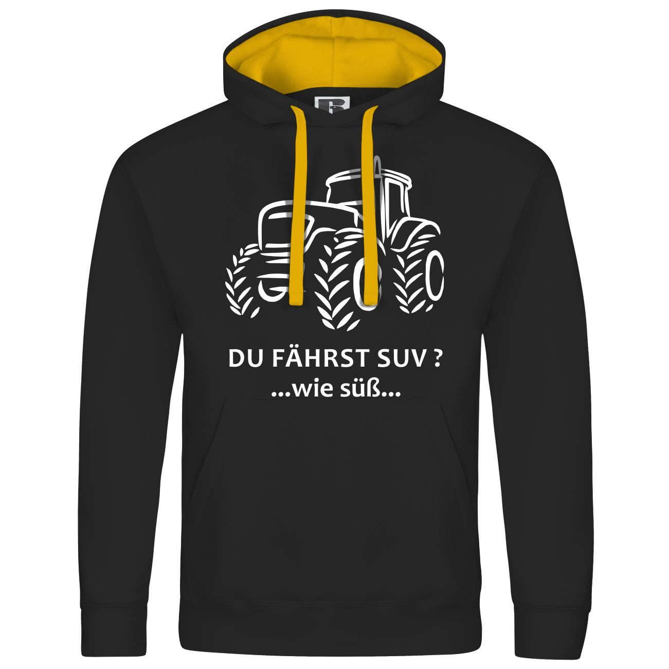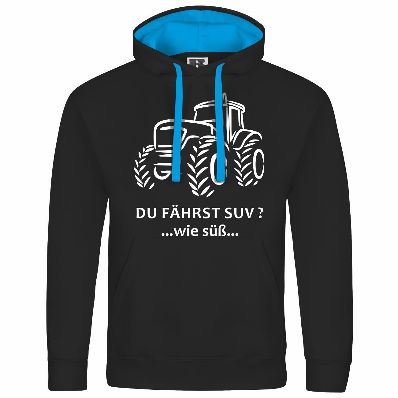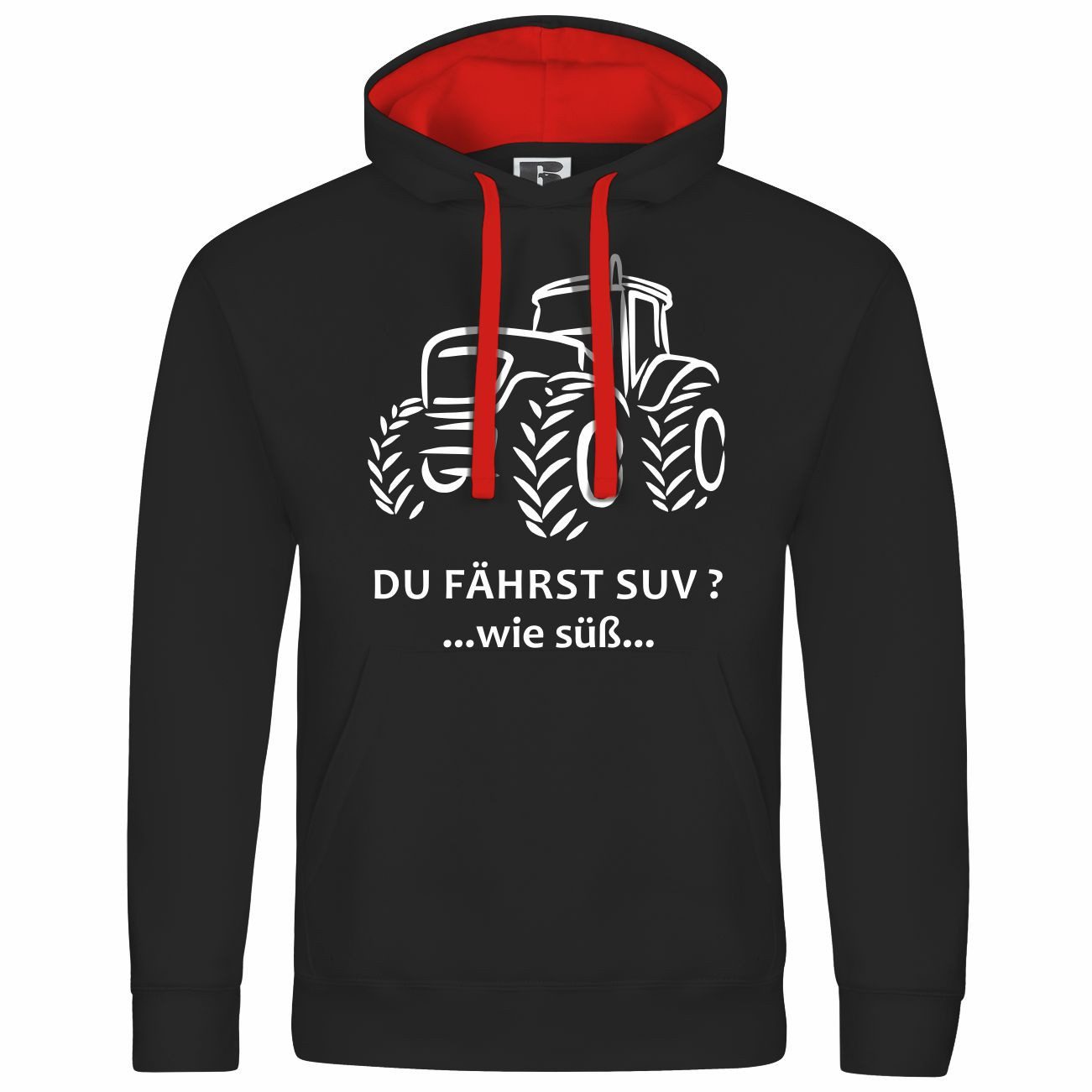 Dein "Landwirt" Shirt Lustiger Traktor Hoodie für Landwirte! Schwarzer Hoodie mit weißem Traktor-Motiv und Spruch „Du fährst SUV? …wie süß…“. Perfekter Trecker Pullover für alle, die echte Power auf dem Feld lieben!