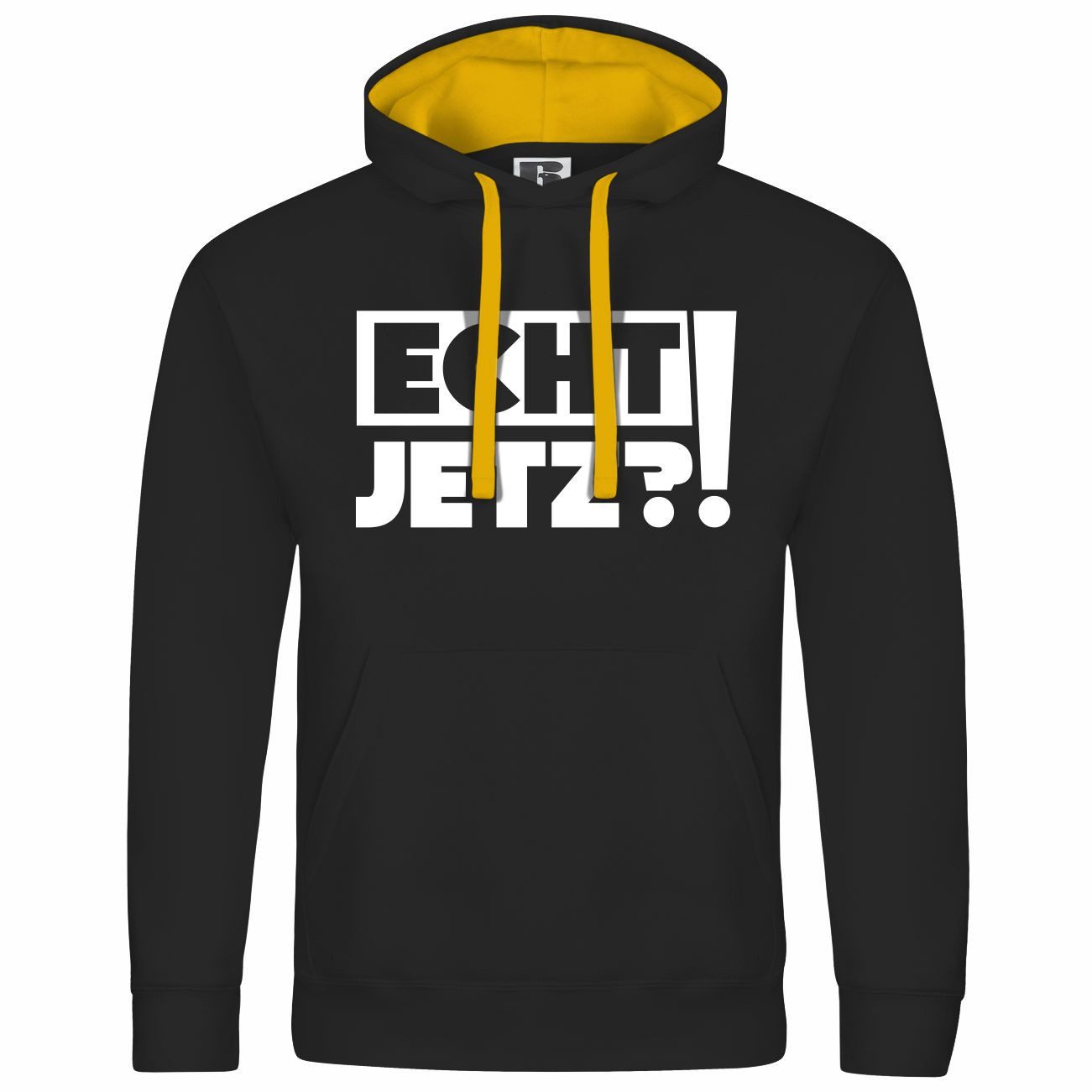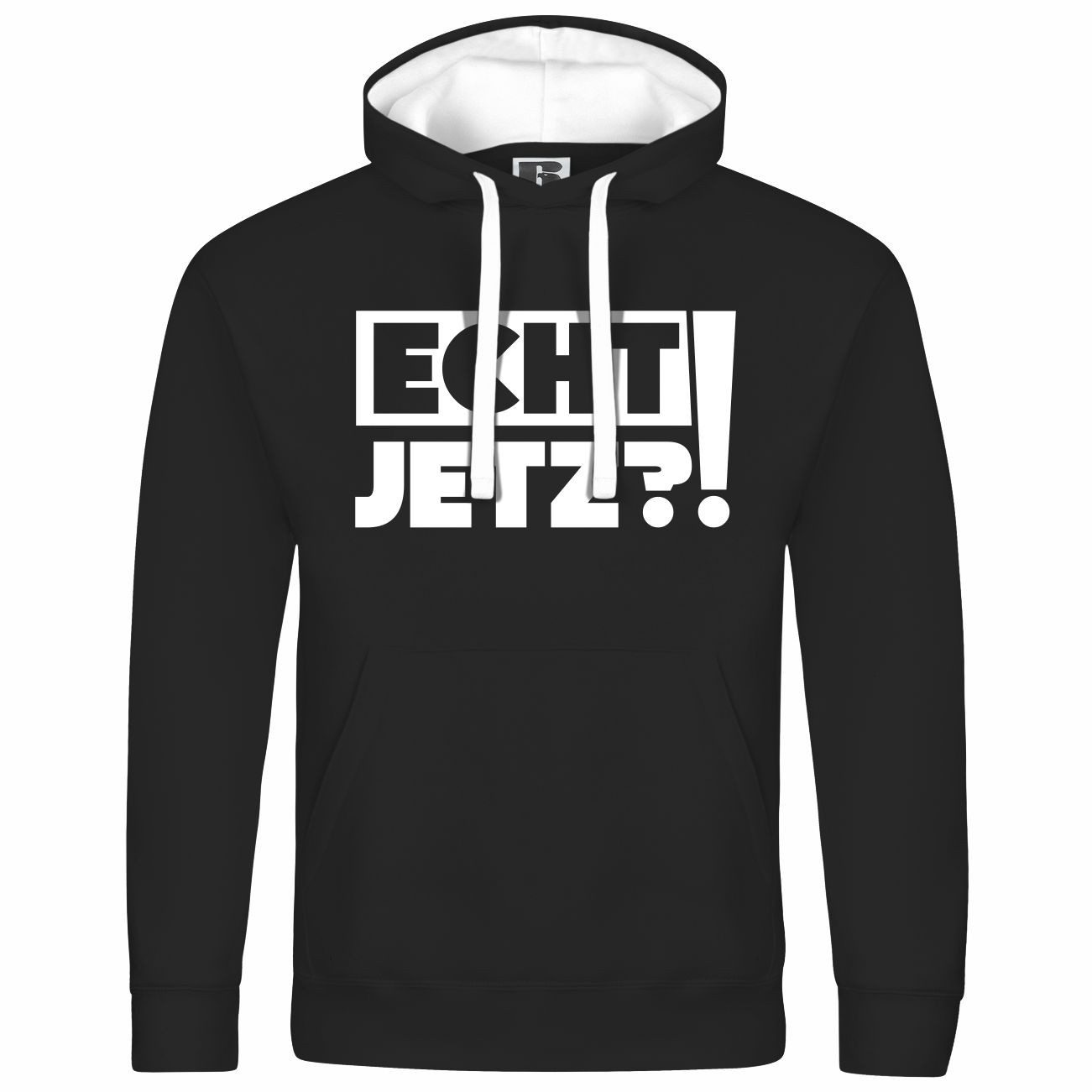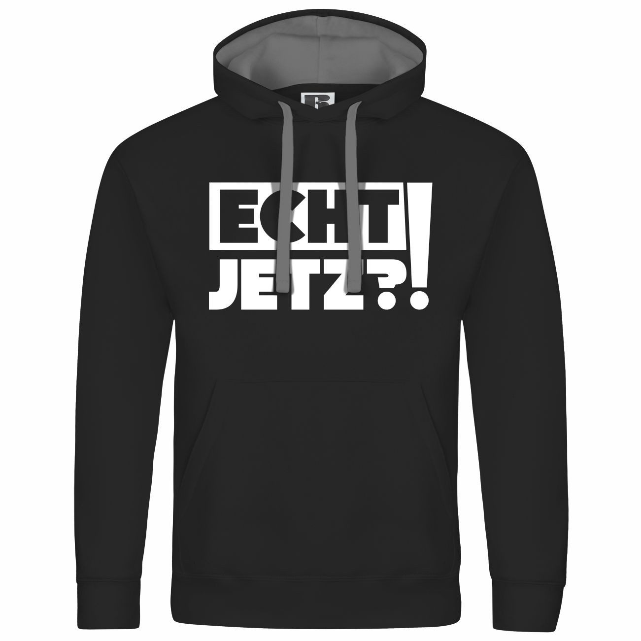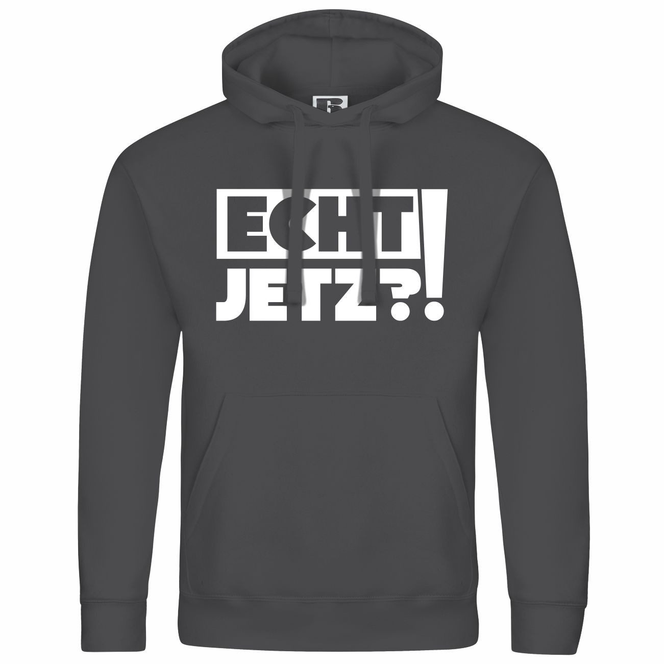 Das Motiv des Kapuzenpullovers zeigt den auffälligen Schriftzug „ECHT JETZT?!“ . Ein humorvolles Statement, ideal für alle, die Aufmerksamkeit lieben und gerne ein Lächeln zaubern.