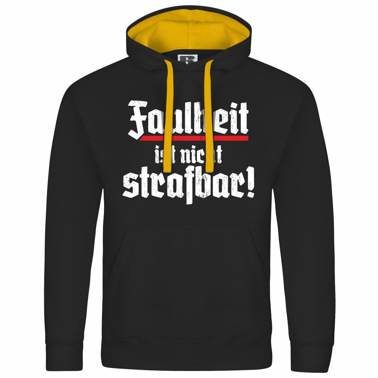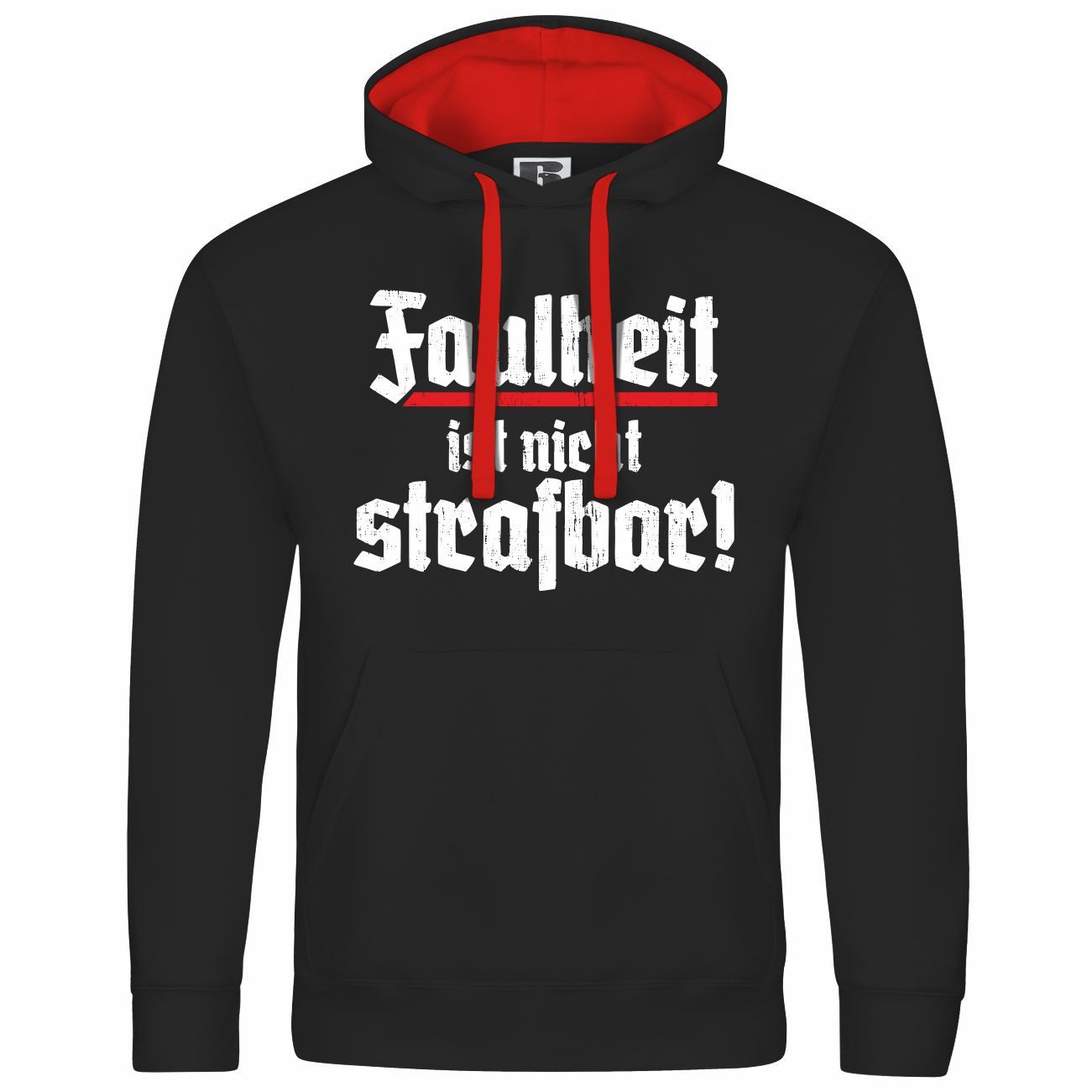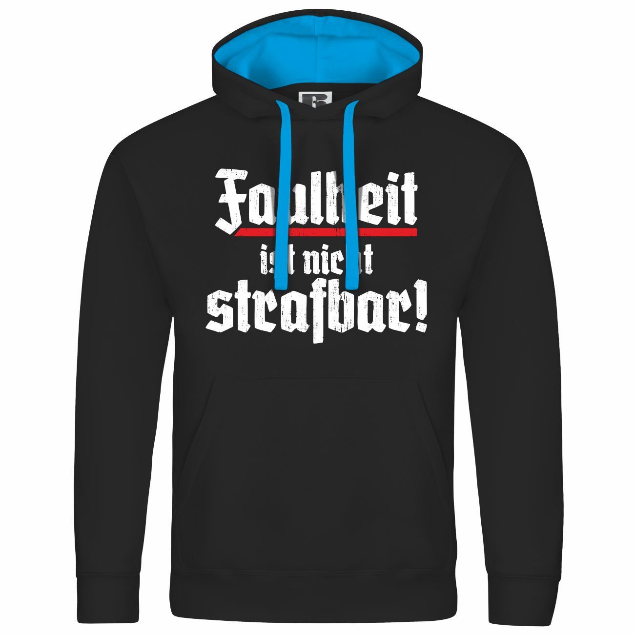 Das Motiv auf diesem Kapuzenpullover zeigt den provokanten Schriftzug "Faulheit ist nicht strafbar!" in einer auffälligen, kontrastreichen Typografie. Perfekt für humorvolle Statements im Alltag.