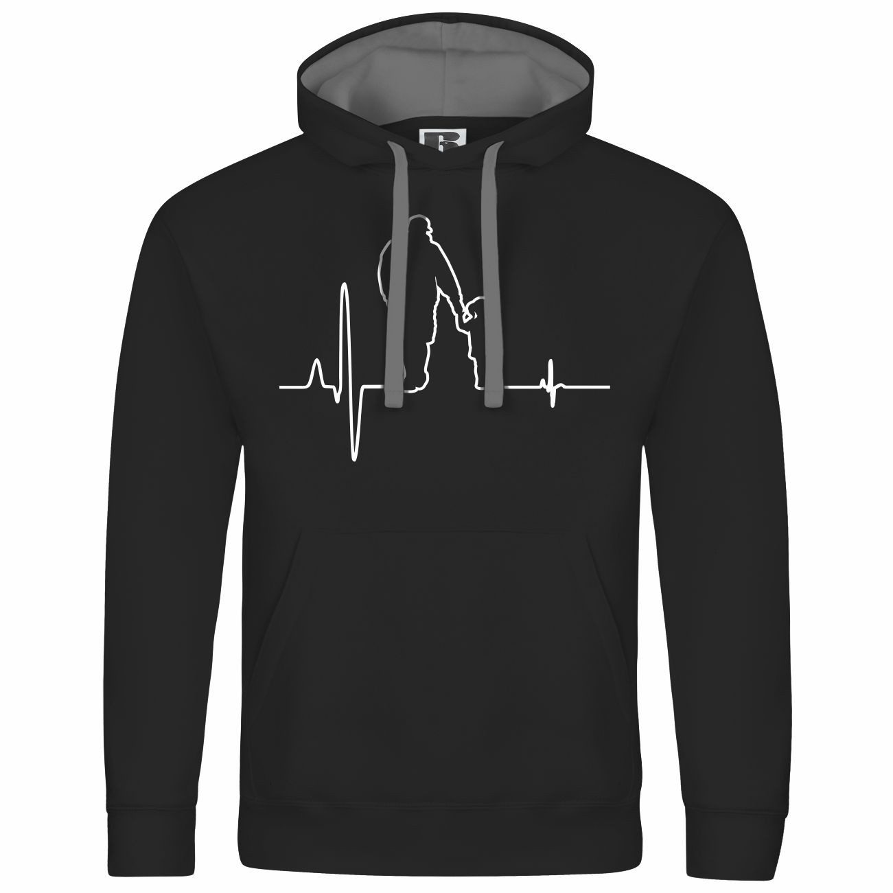 Das Motiv auf diesem Kapuzenpullover zeigt eine Herzlinie, die in die Silhouette eines Vaters und seiner Tochter übergeht. Ein perfektes Design für Familienmenschen!