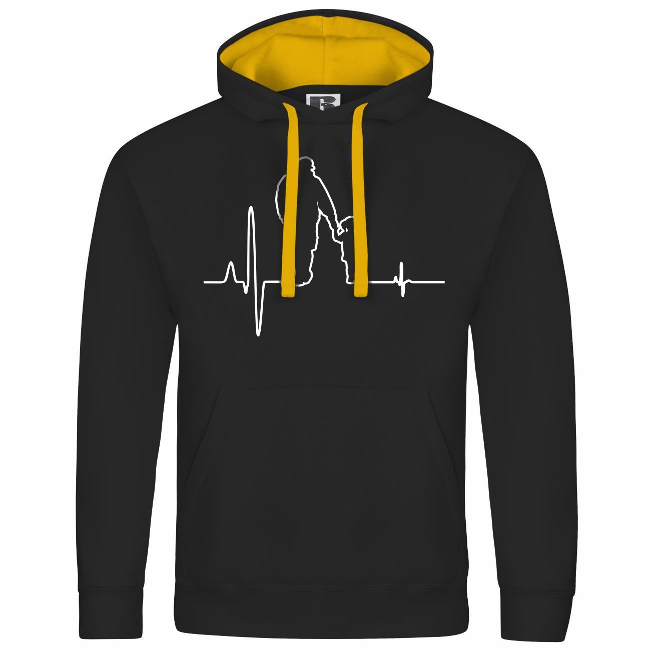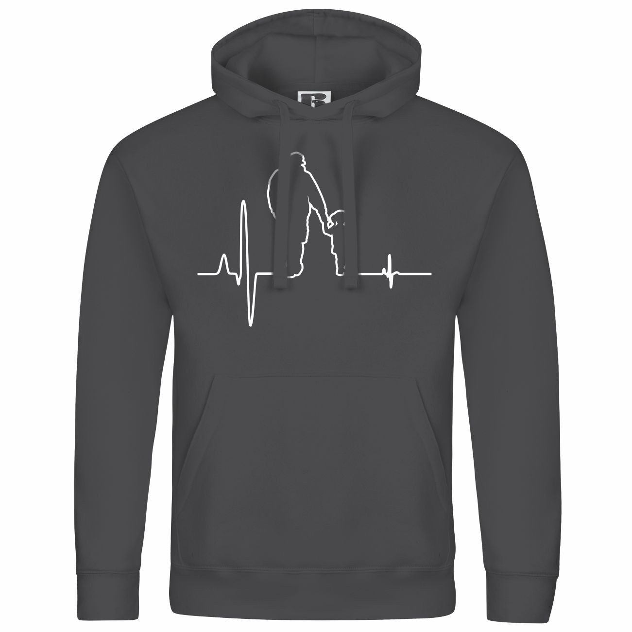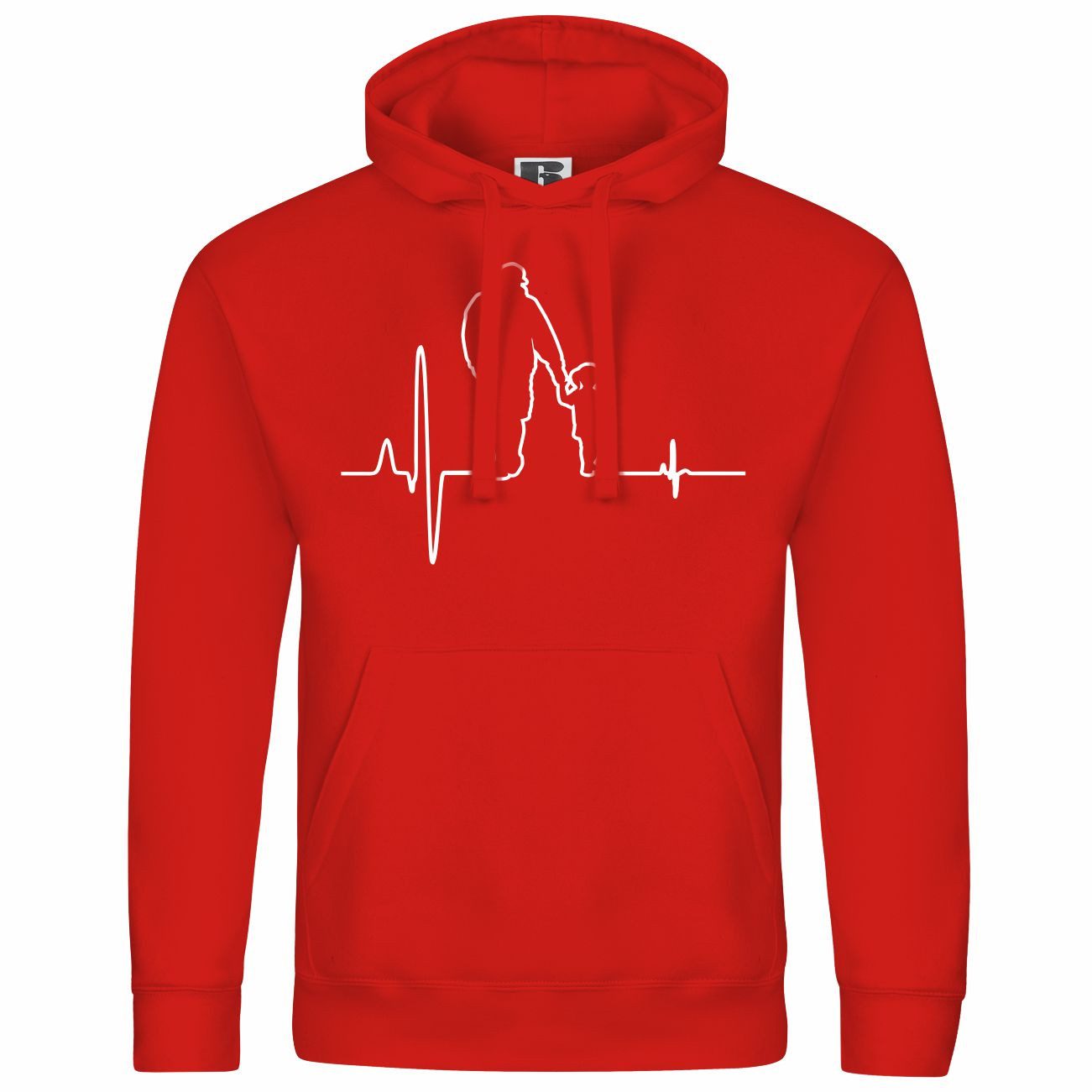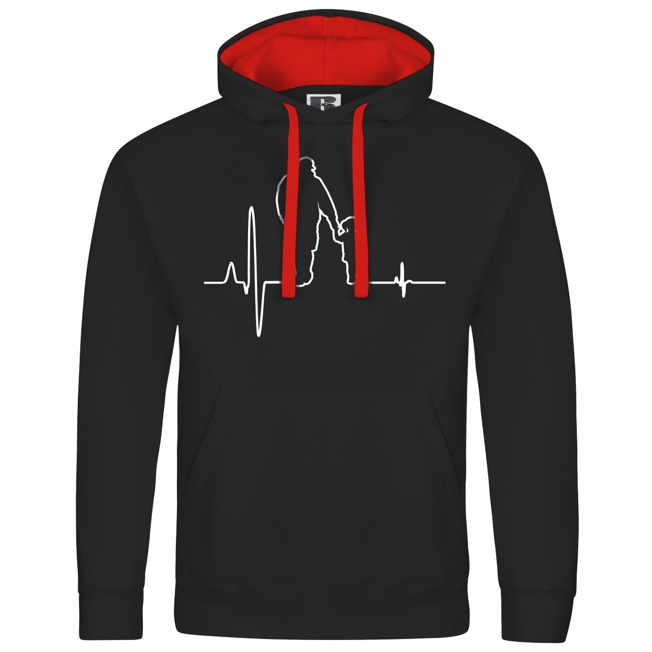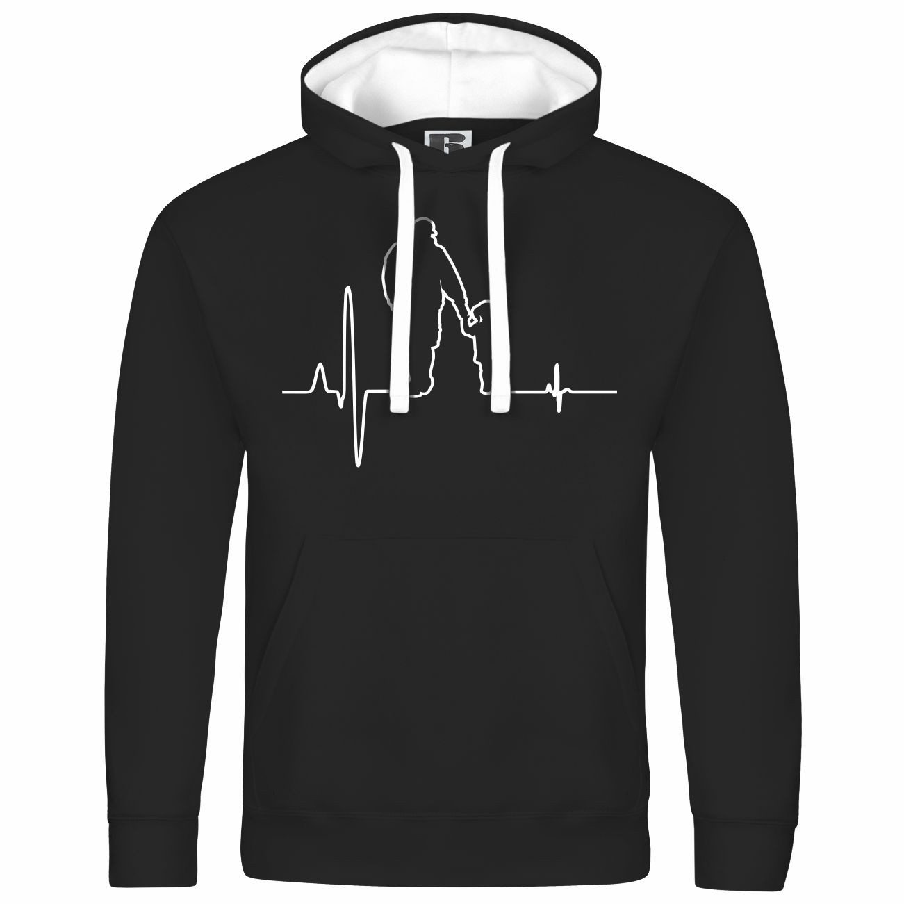 Das Motiv auf diesem Kapuzenpullover zeigt eine Herzlinie, die in die Silhouette eines Vaters und seiner Tochter übergeht. Ein perfektes Design für Familienmenschen!