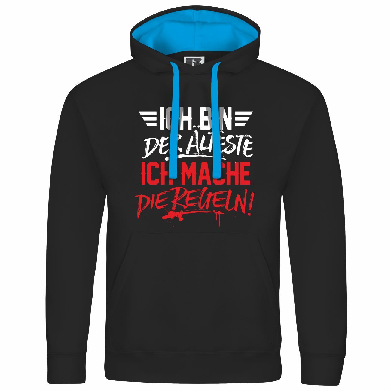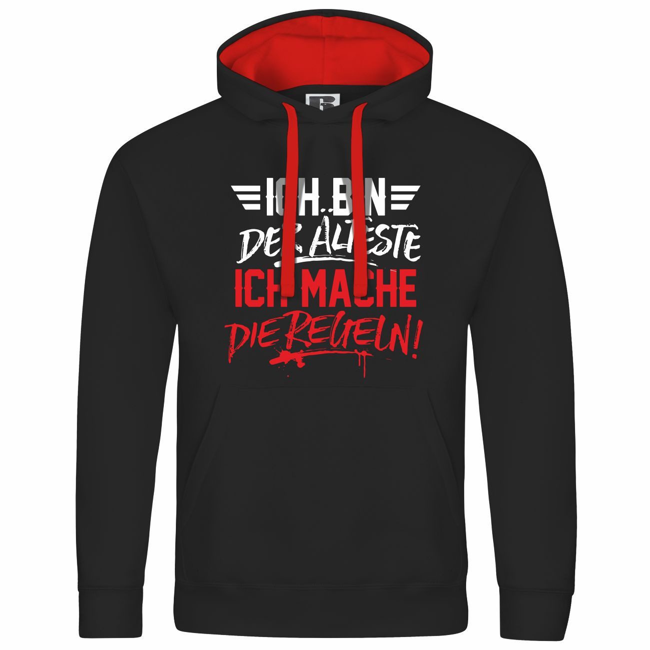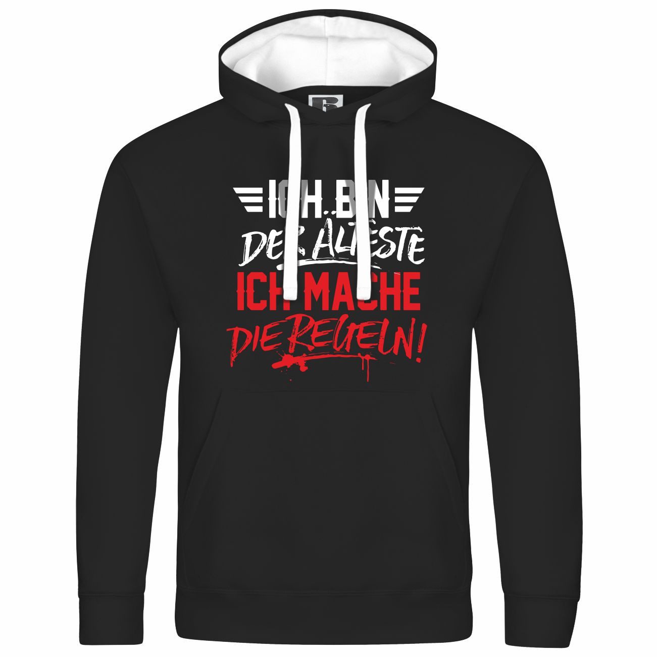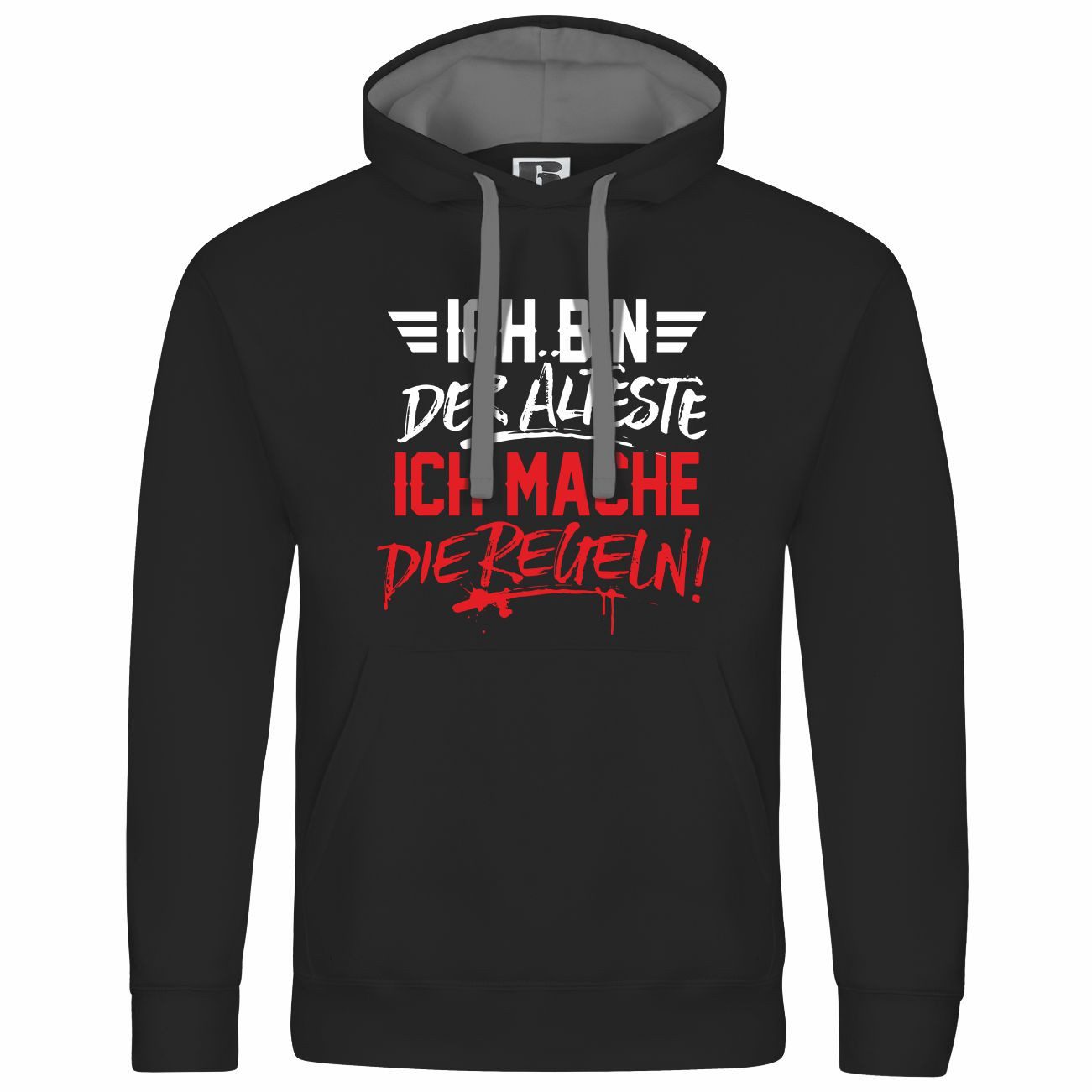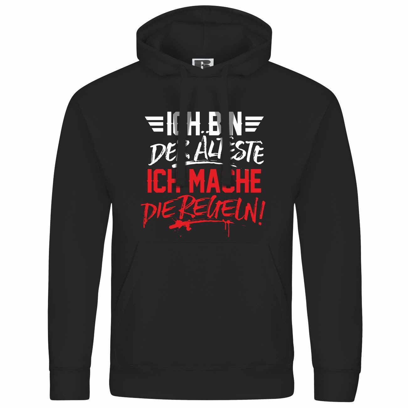 Der Kapuzenpullover zeigt ein selbstbewusstes Statement: „Ich bin der Älteste – Ich mache die Regeln!“ in auffälligen Buchstaben. Ideal für alle, die gerne das Sagen haben!