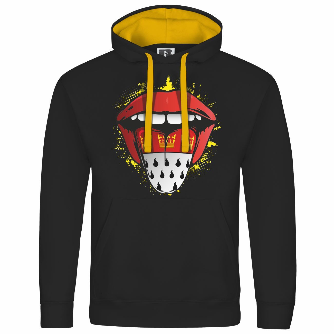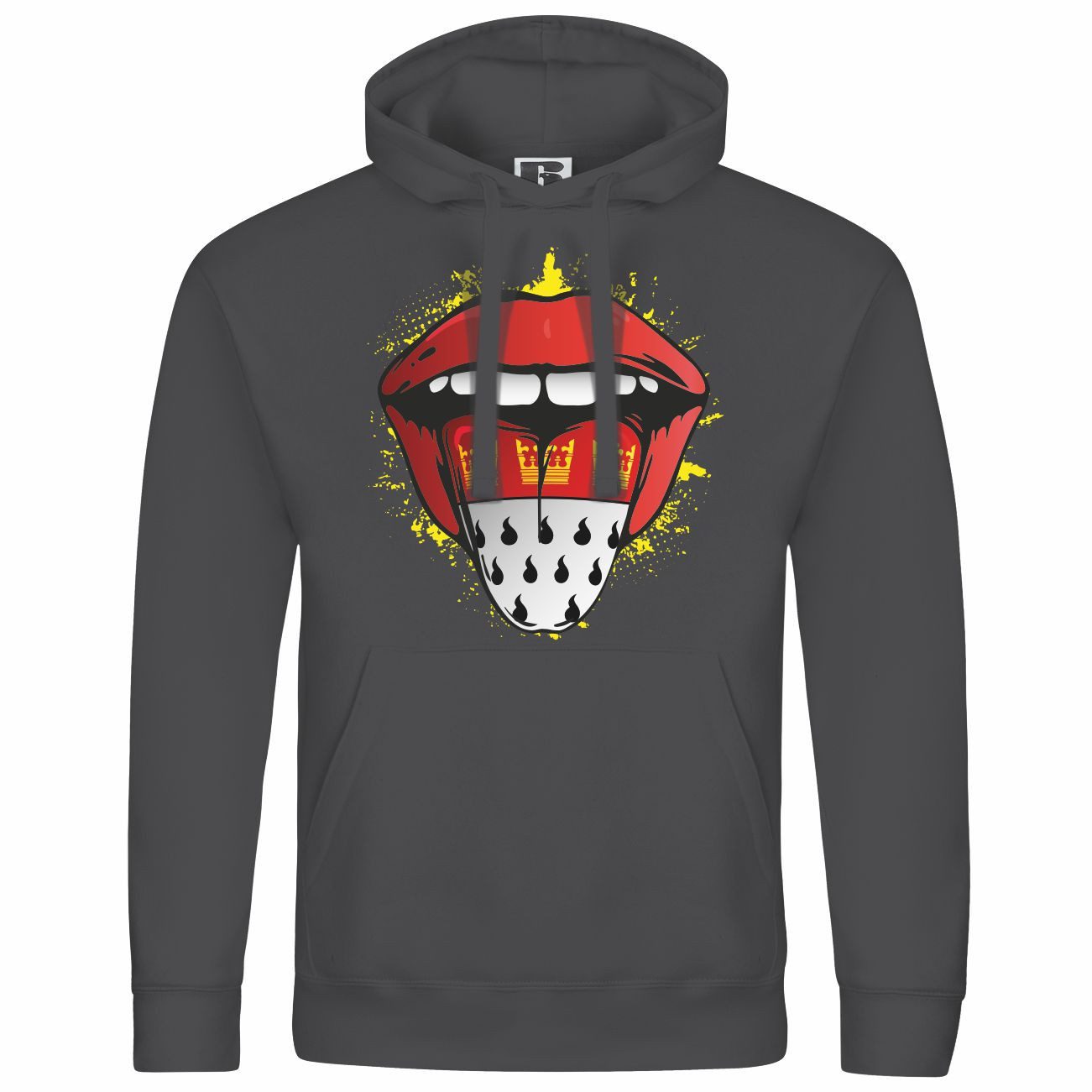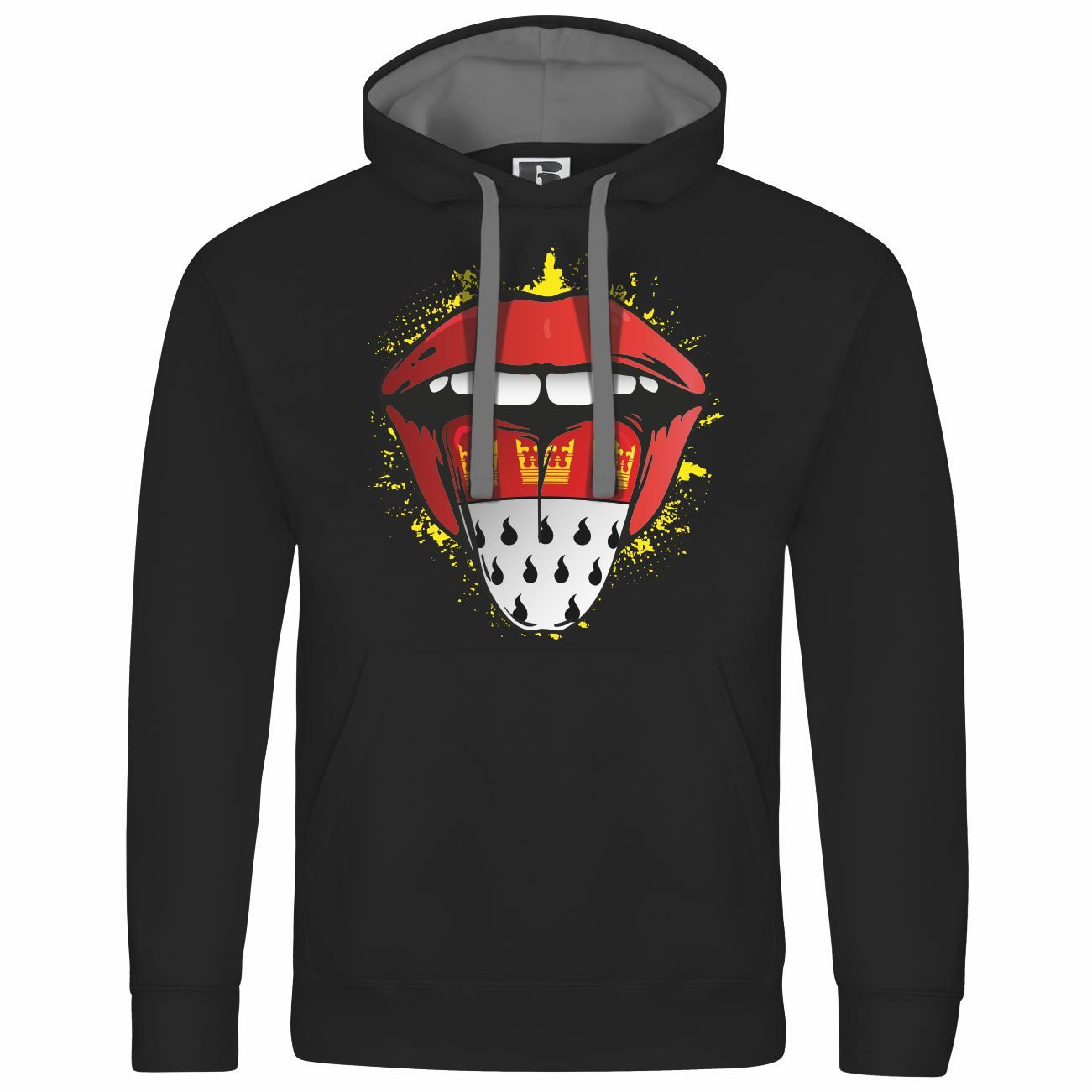 Besonderes Motiv für Kölsche Herzen Das Design zeigt das ikonische Köln Wappen auf den Lippen, das sich durch einen einzigartigen Druck auszeichnet. Diese Köln Zunge symbolisiert die Leidenschaft und Identifikation mit der Rheinmetropole und verleiht dem Pullover eine kreative Note.