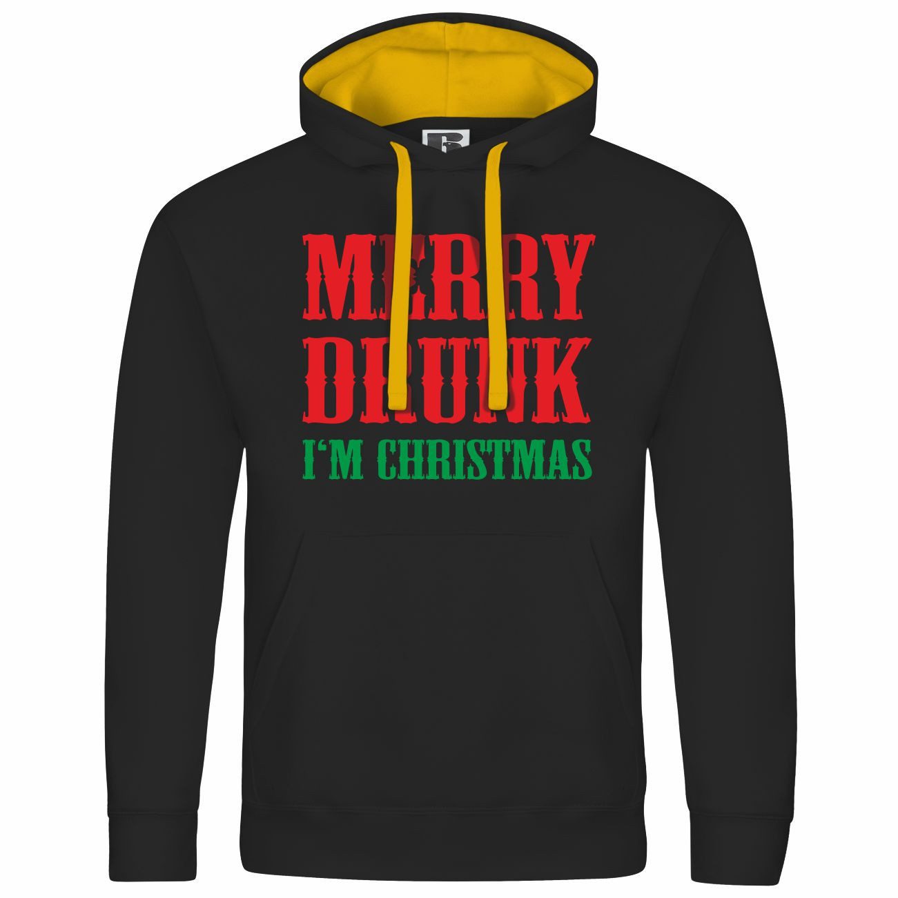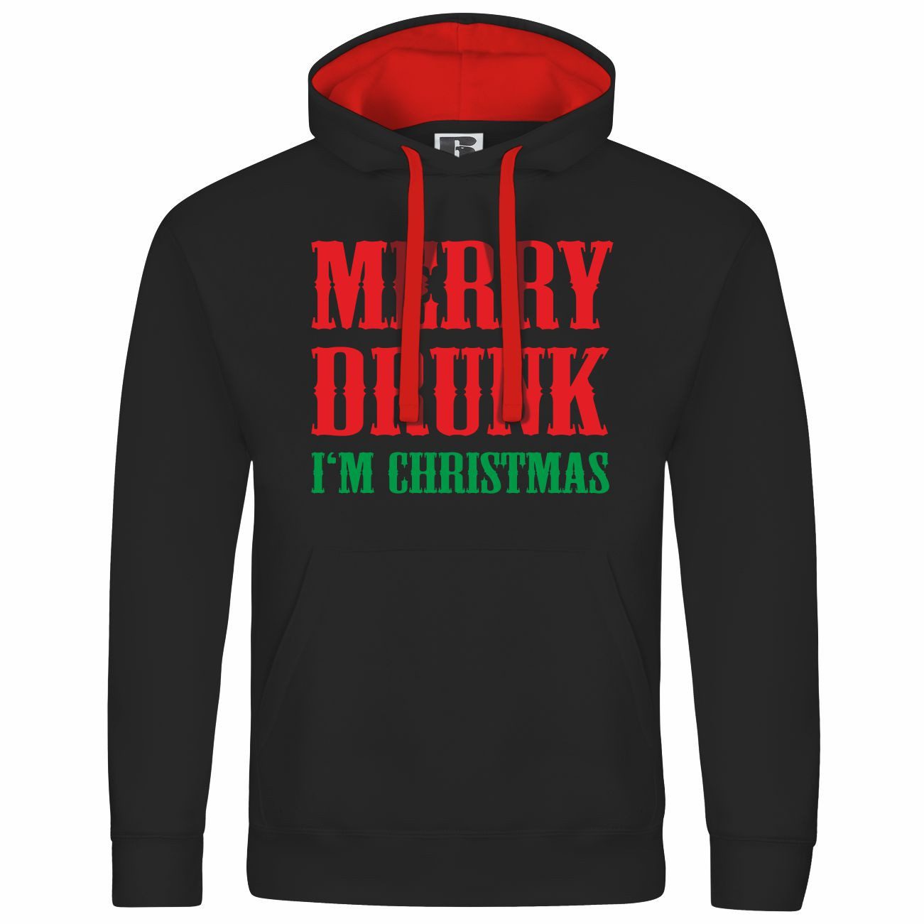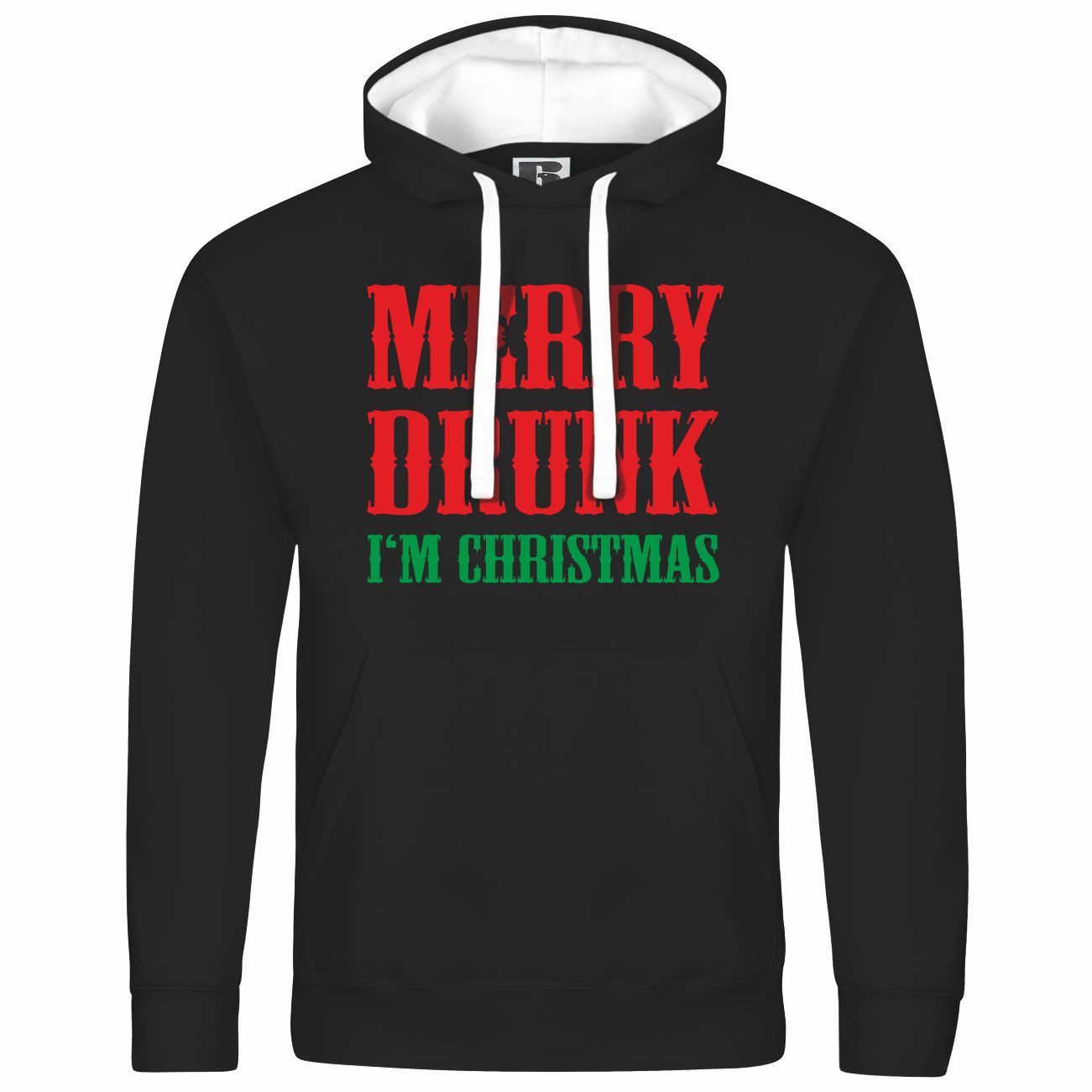 Dieser Kapuzenpullover zeigt den humorvollen Spruch „Merry Drunk, I’m Christmas“ in festlichem Rot und Grün. Perfekt für alle, die die Weihnachtszeit mit einer Portion Spaß und Ironie genießen möchten!