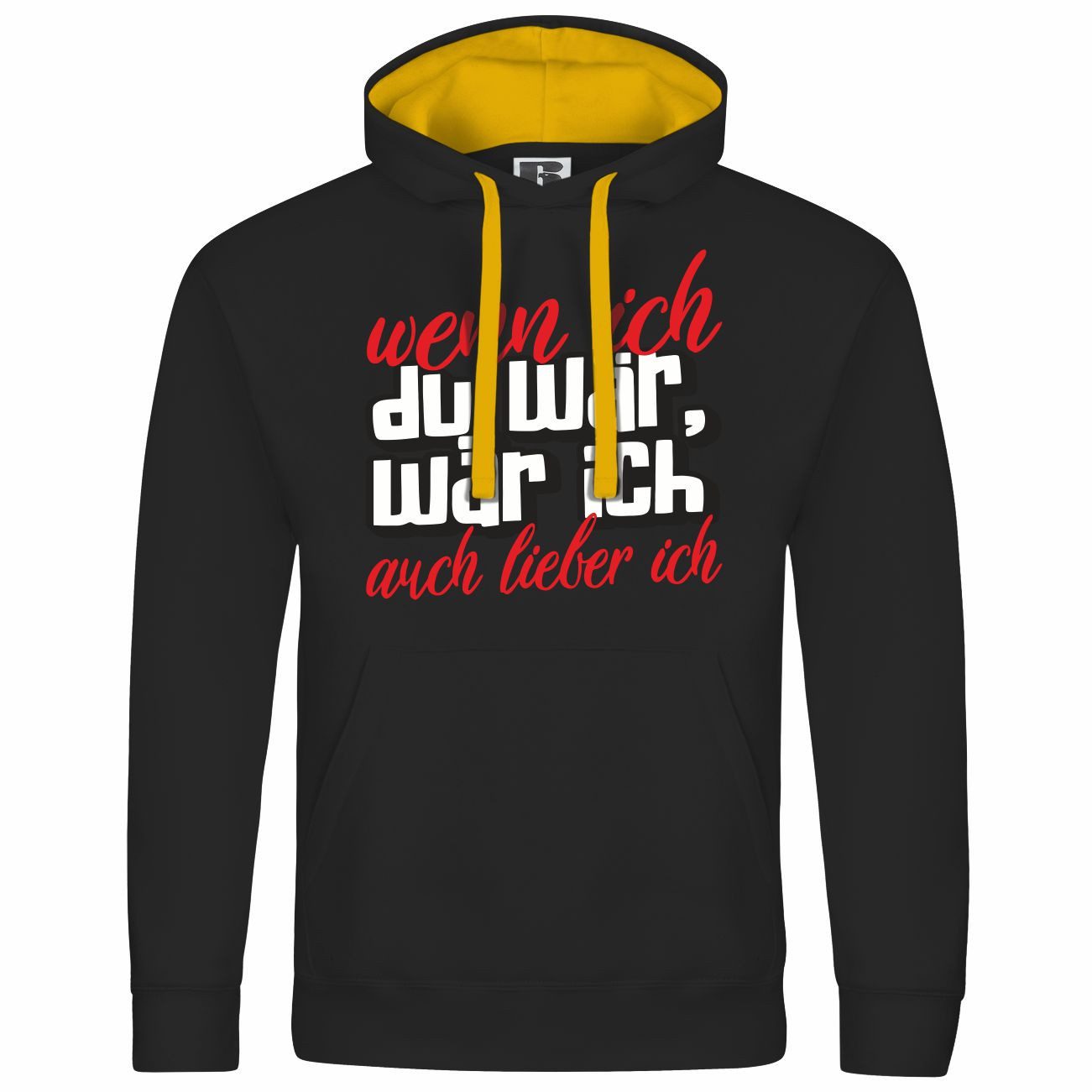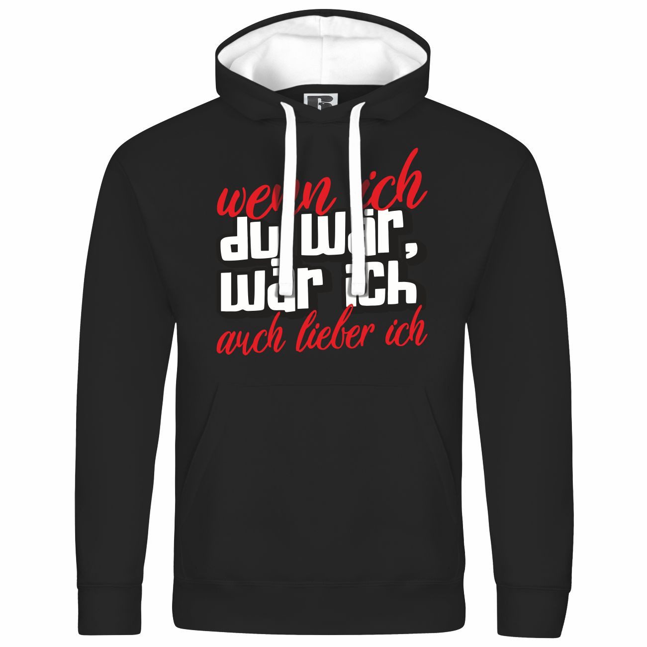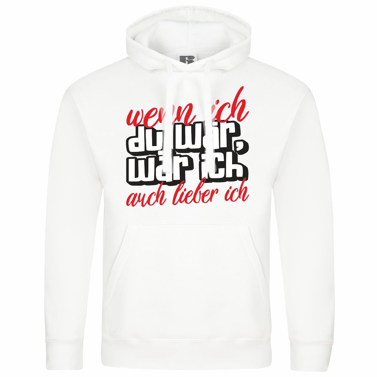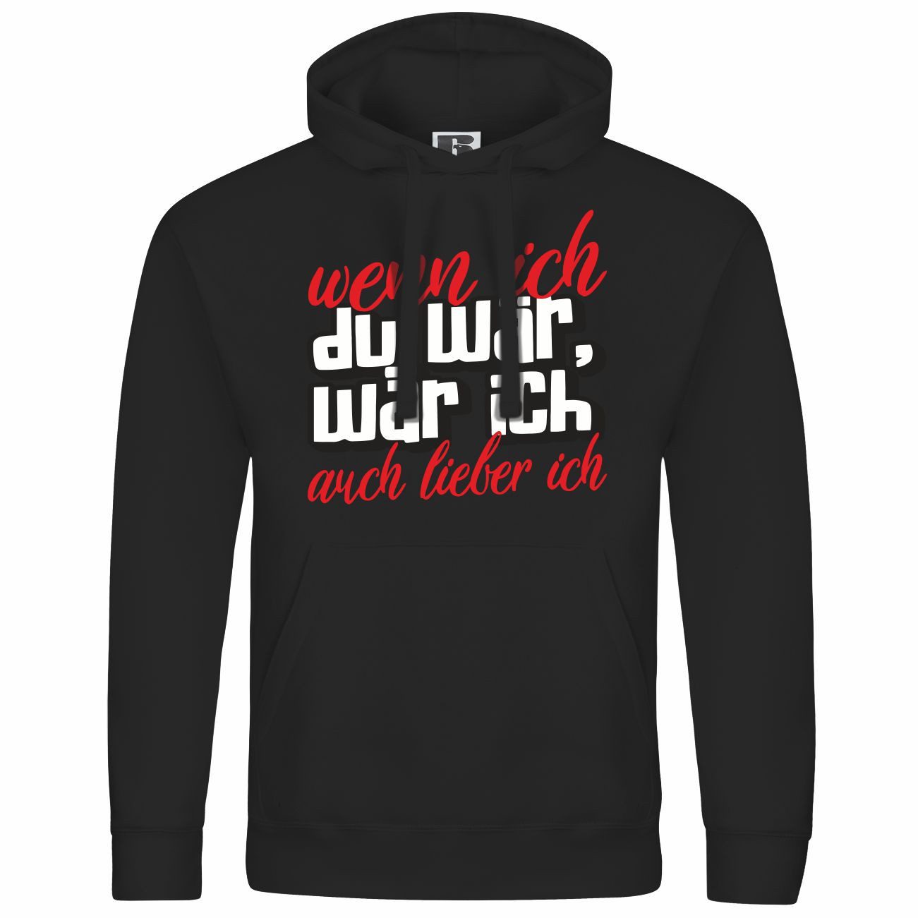 Das Motiv auf dem Kapuzenpullover zeigt den humorvollen Spruch: „Wenn ich du wär, wär ich auch lieber ich.“ Perfekt für selbstbewusste Träger mit Sinn für Humor!