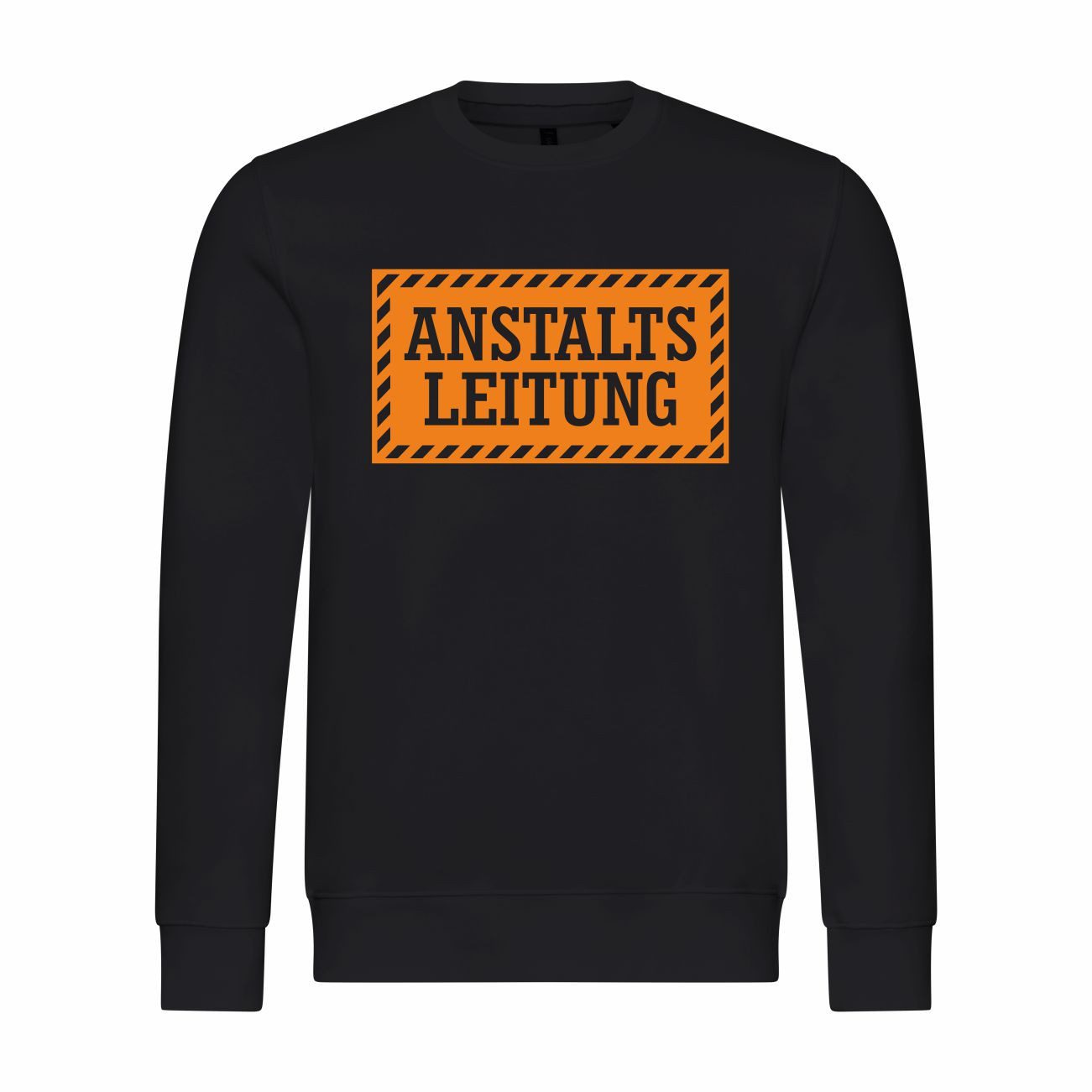 Das Motiv zeigt den Schriftzug "Anstaltsleitung" , eingerahmt von einem stilisierten Warnschild-Design. Ein humorvolles Statement für alle, die ihre Rolle mit Augenzwinkern tragen!