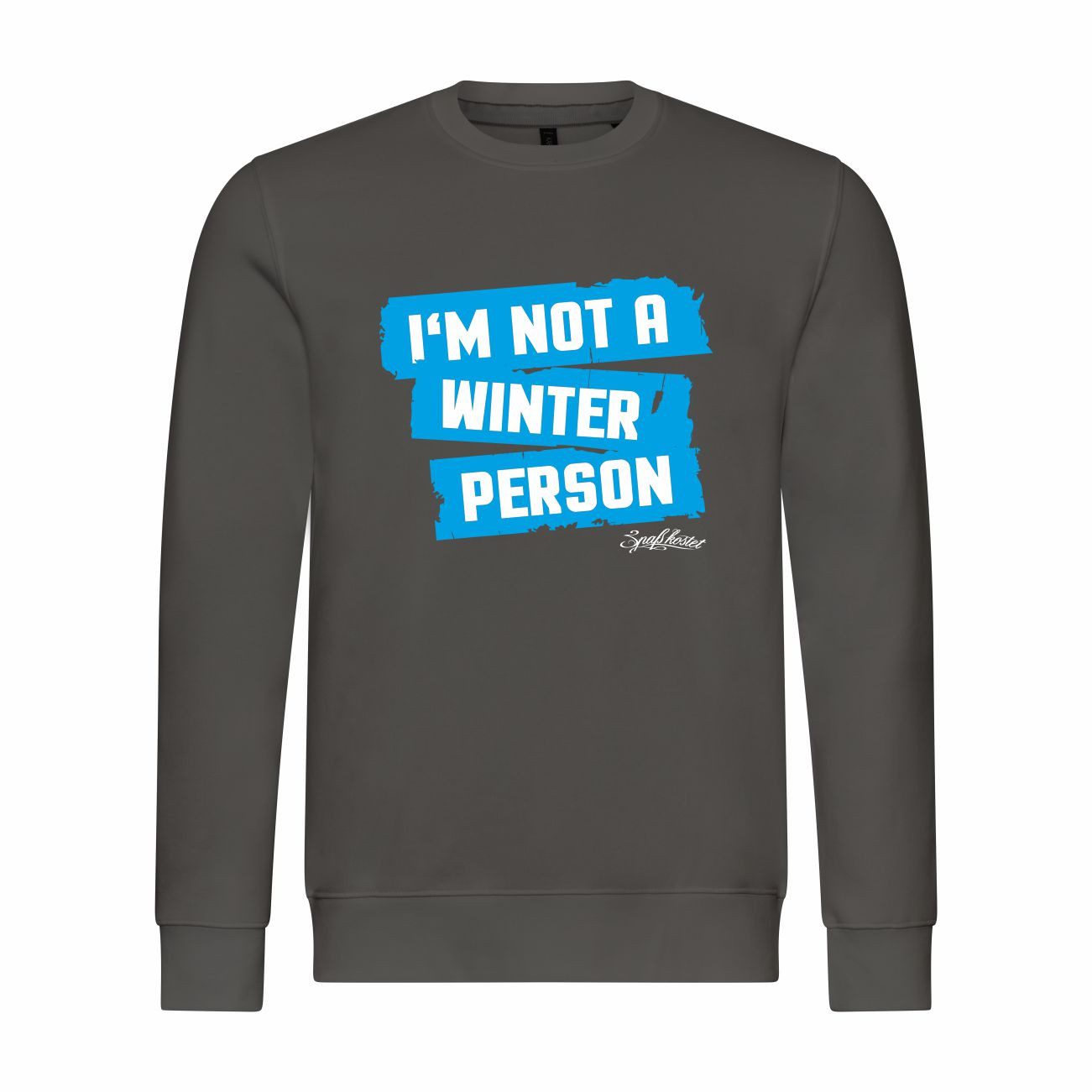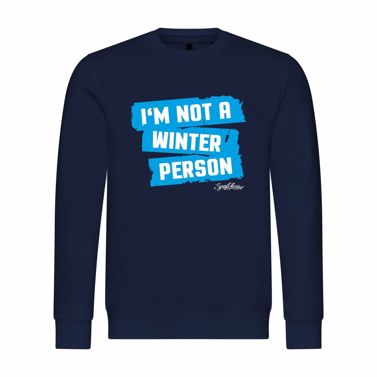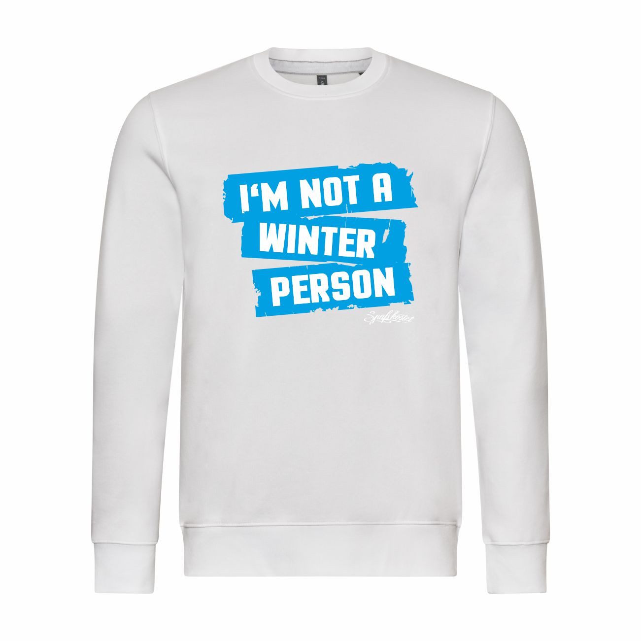 Das Sweatshirt zeigt den humorvollen Schriftzug „I'm Not A Winter Person“ in auffälligen blauen Lettern. Perfekt für Sommerfans und Sonnenanbeter, die ihre Abneigung gegen kalte Tage stylisch ausdrücken möchten.