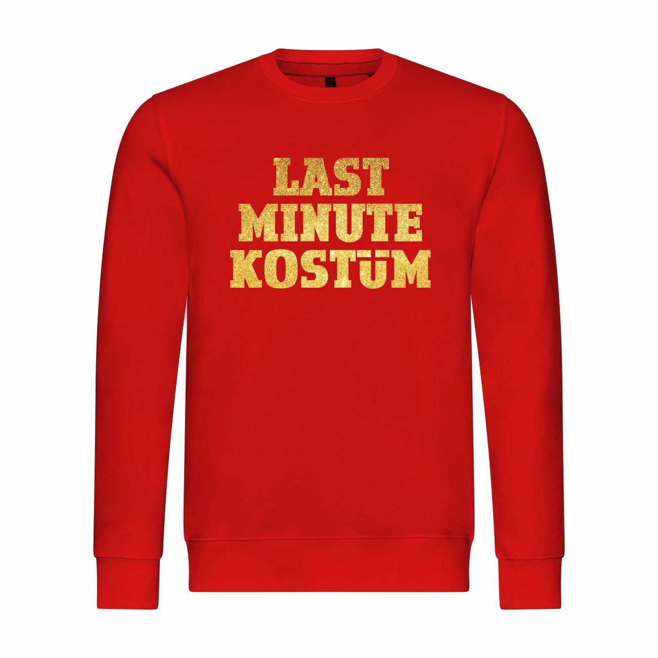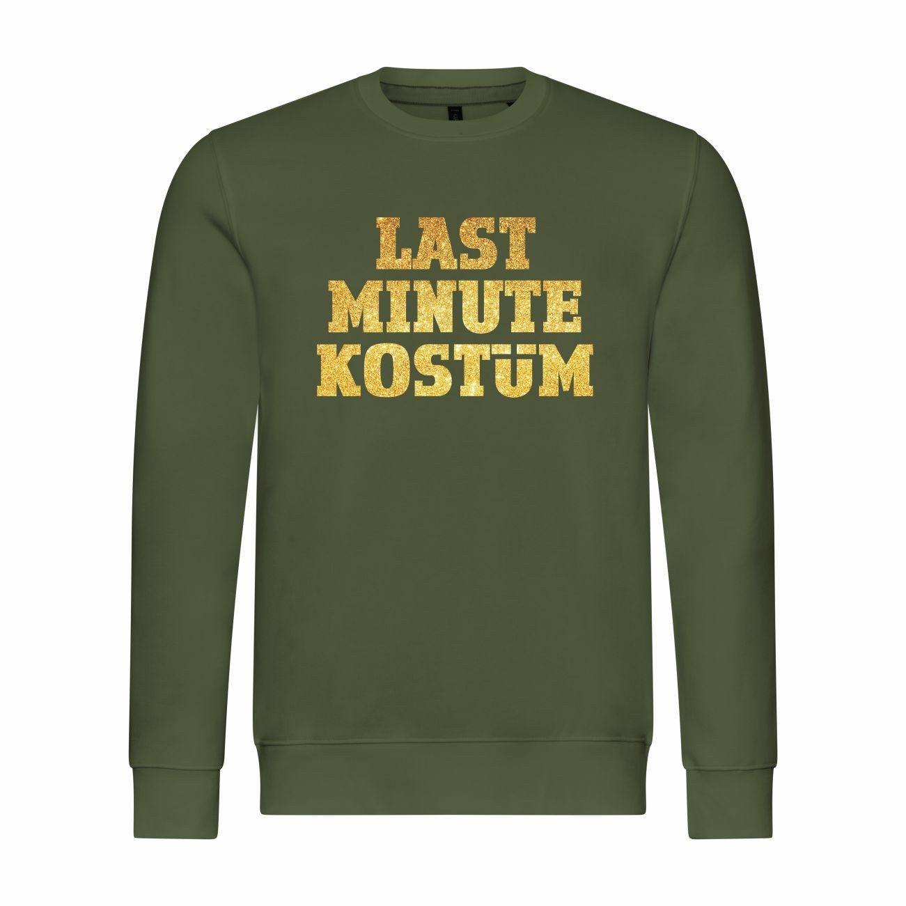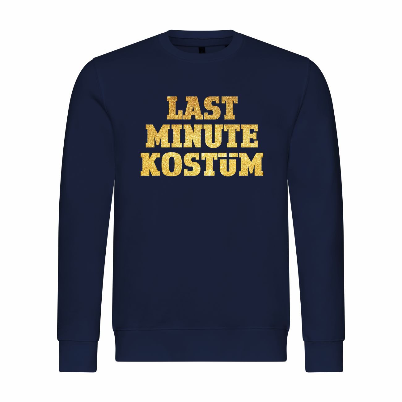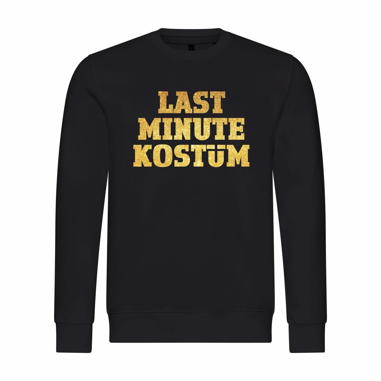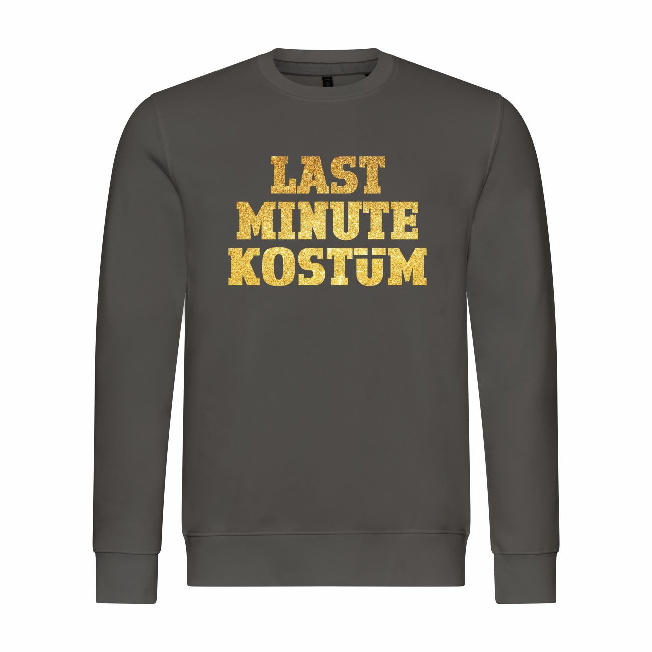 Das Sweatshirt zeigt den humorvollen Spruch „Last Minute Kostüm“ in auffälliger Glitzer-Optik. Perfekt für spontane Fasching- oder Karneval-Events und ein echtes Statement für alle, die gerne improvisieren!