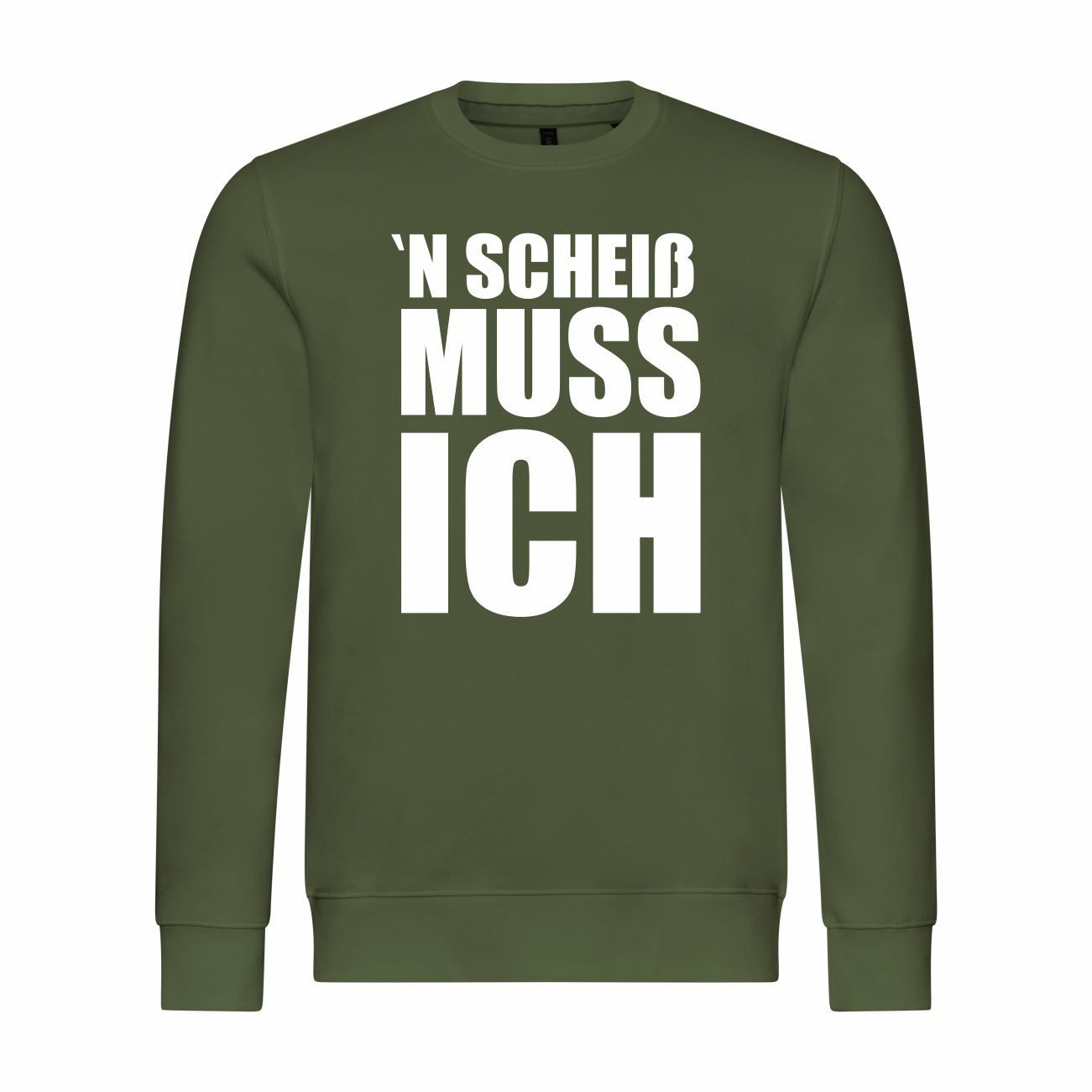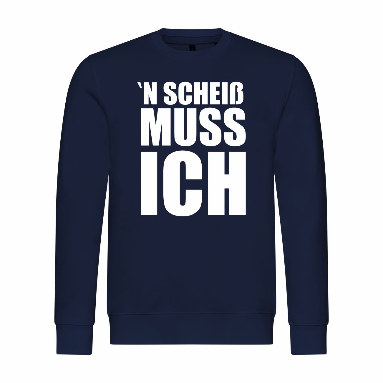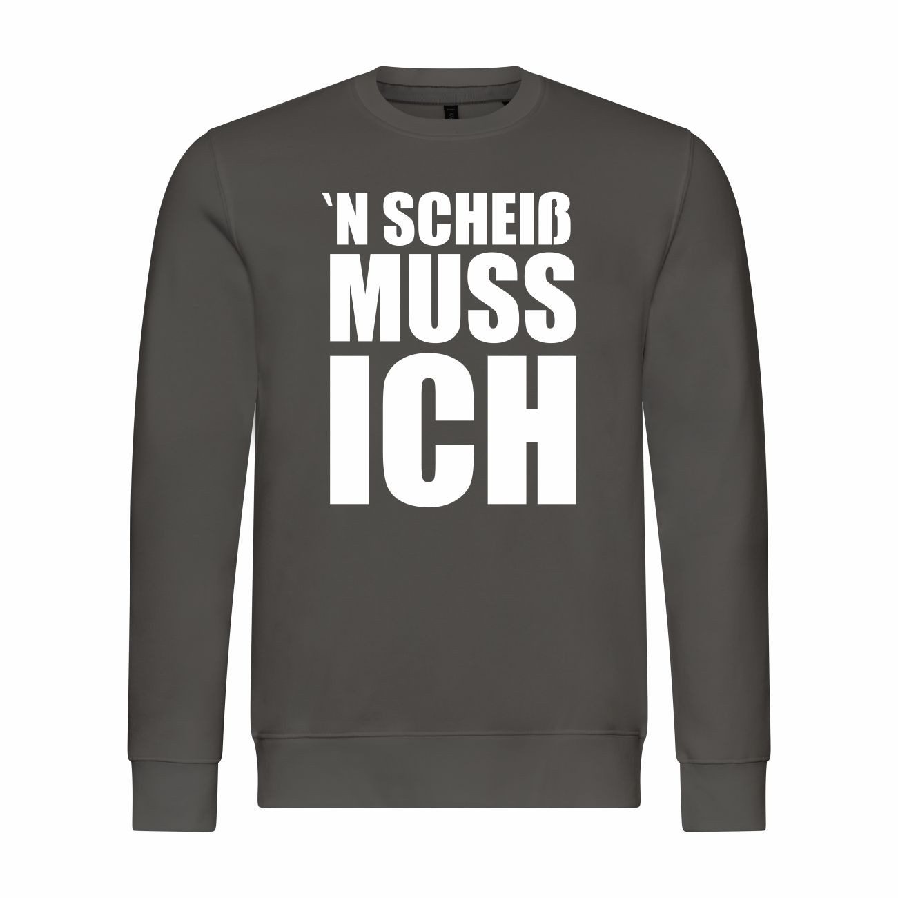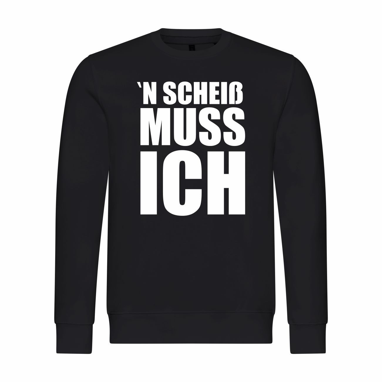 Das Sweatshirt zeigt ein markantes Statement: „'N Scheiß muss ich“ in großer Schrift. Ein humorvoller Eyecatcher, ideal für alle, die Selbstbewusstsein mit Stil tragen möchten.