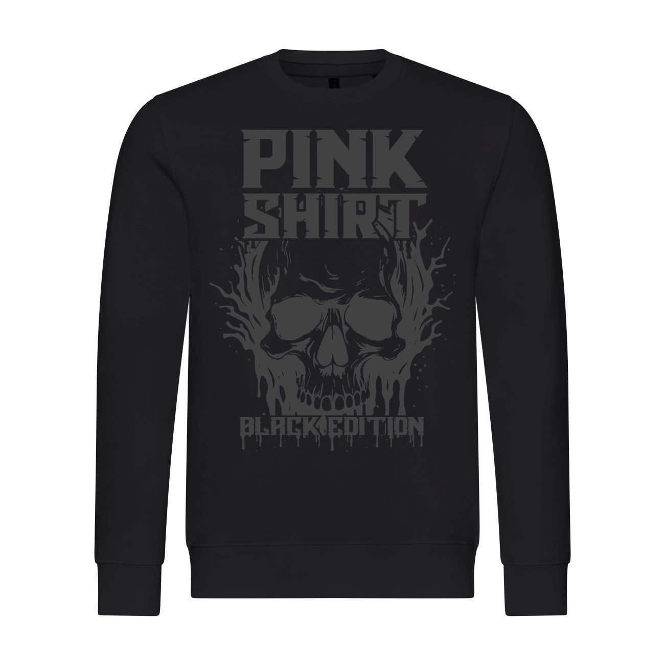 Das Motiv des Sweatshirts zeigt einen düsteren Totenkopf in rauchigen Konturen, kombiniert mit dem Schriftzug „Pink Shirt – Black Edition“. Ein starkes Statement für Fans von mystischem Design und Kontrasten!
