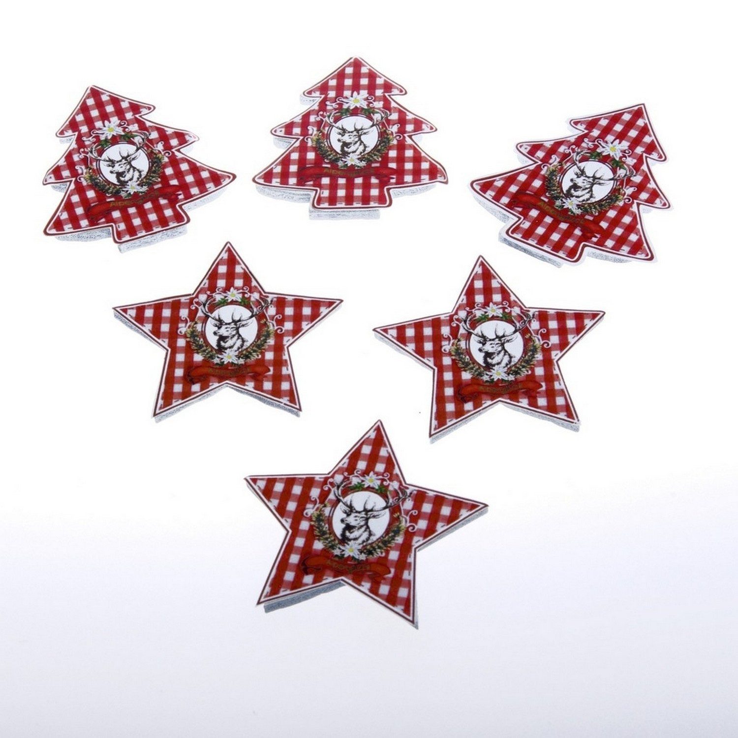 Deko AS Bastelnaturmaterial Holz-Tanne /-Stern "Alpenglück" mit Klebepunkt - rot-weiß - ca. 4cm