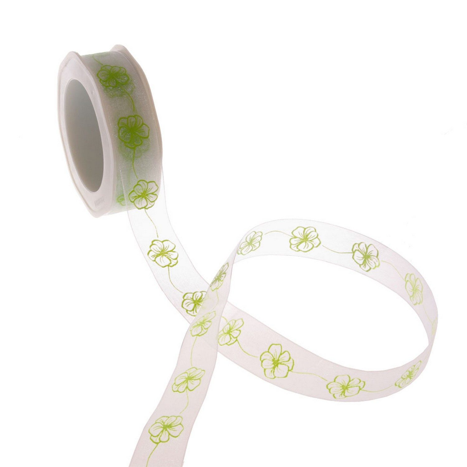 Dieses schöne Organzaband in der Farbe Weiß ist mit grünen Butterblumen verziert. Es ist leicht transparent und schimmernd, wodurch die Blumen besonders stark zur Geltung kommen, es jedoch trotzdem noch sehr dezent und edel wirkt. Das Band lässt sich wunderbar mit der Farbe Maigrün und Silber kombinieren und setzt eine tolle frühlingshafte Note. Es eignet sich sowohl für hübsche Karten, für Blumengestecke, Kränze oder sommerliche Tischdekorationen. Aufgrund der Lichtverhältnisse bei der Produktfotografie und unterschiedlichen Bildschirmeinstellungen kann es dazu kommen, dass die Farben des Produktes nicht authentisch wiedergegeben werden.