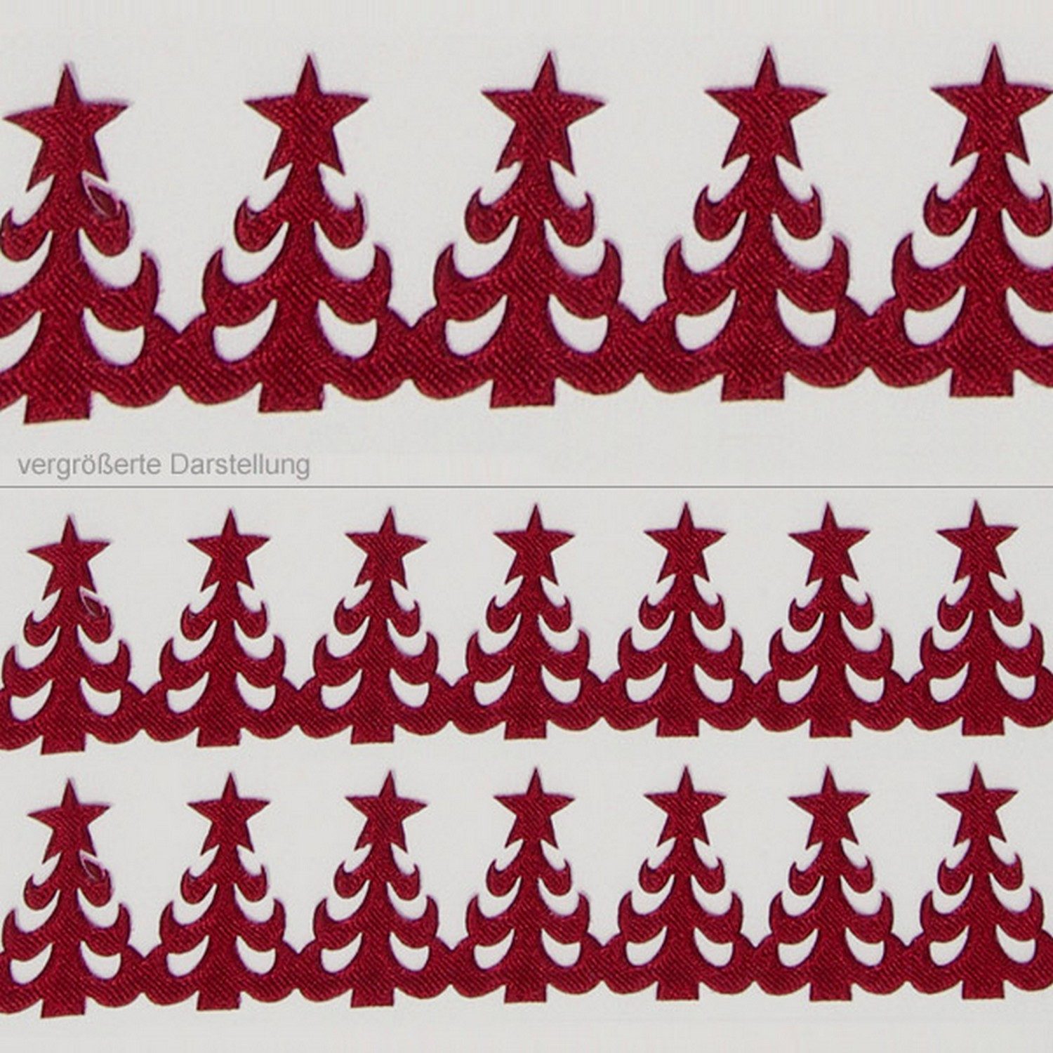 Mit dieser selbstklebenden Bordüre aus Tannenbäumen in Bordeaux gestalten Sie ganz einfach geschmackvolle, individuelle Weihnachtskarten oder Tischkarten für die weihnachtliche Festtafel. Auch schlichte Geschenkverpackungen lassen sich mit der Bordüre schön verzieren. Jede Rolle hat 10 Yards, das entspricht ca. 9,3 Metern.